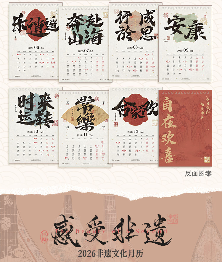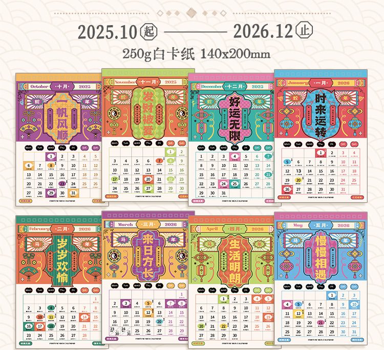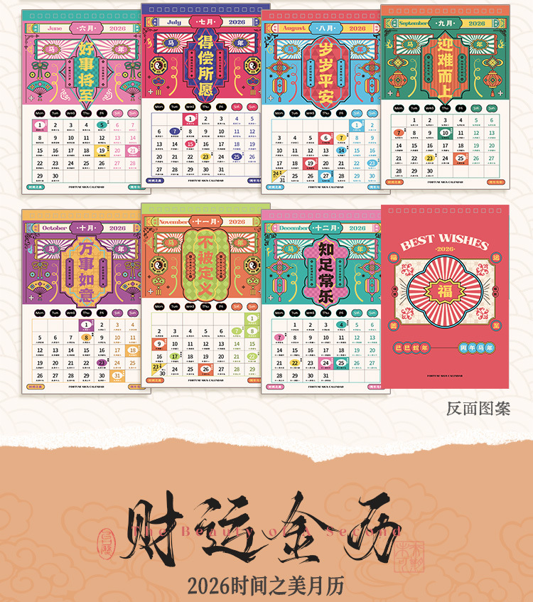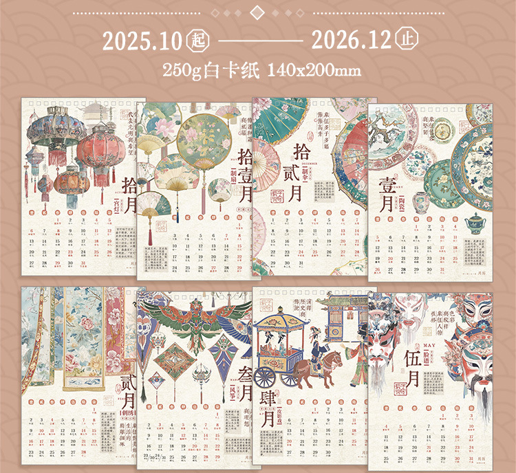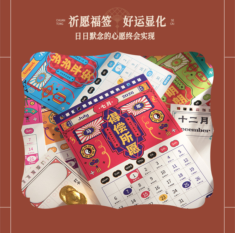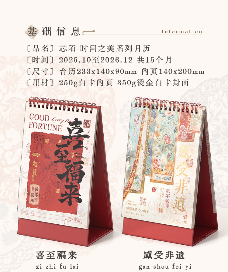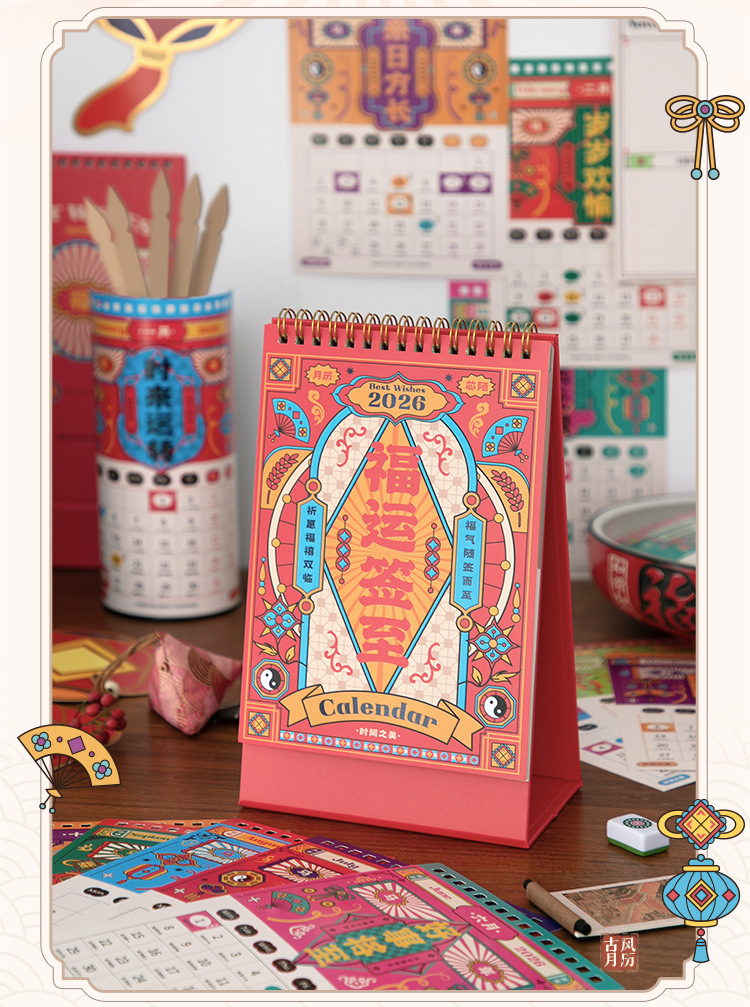Xinmo 2026 calendario mensual, la belleza del tiempo, adornos de escritorio, calendario de oración, calendario de bendición, calendario de estilo simple