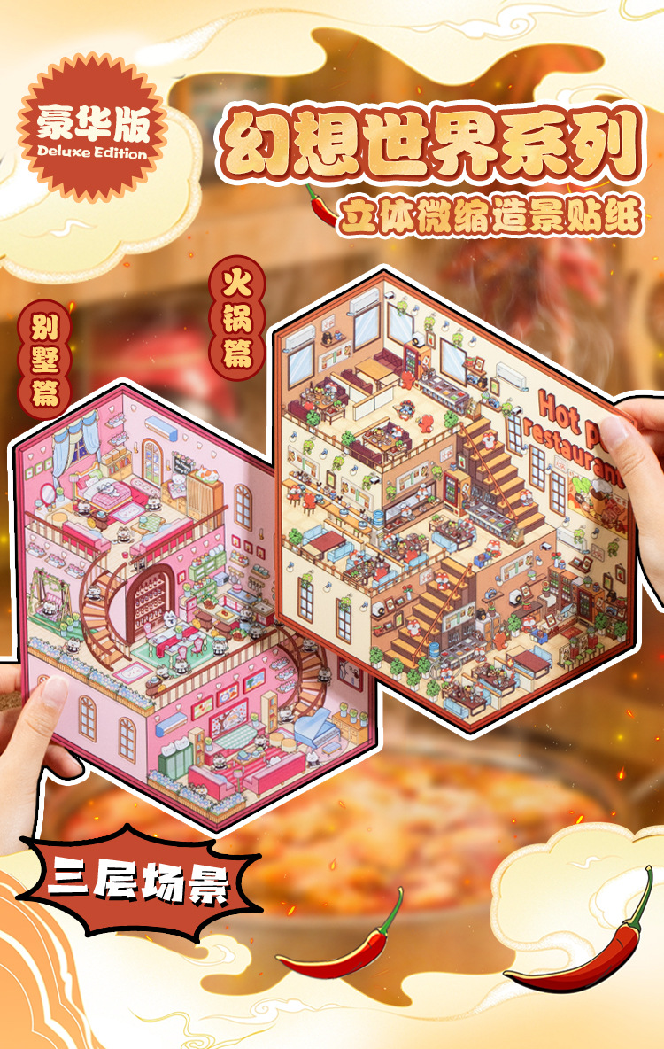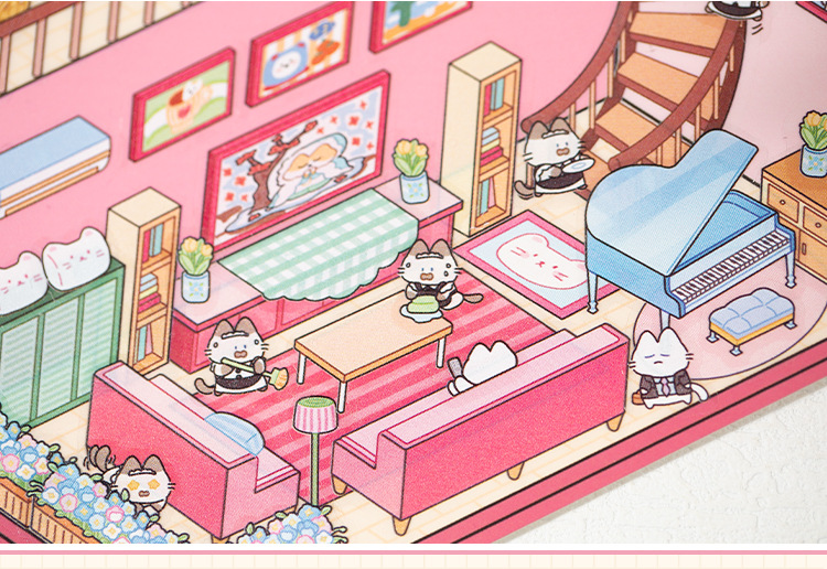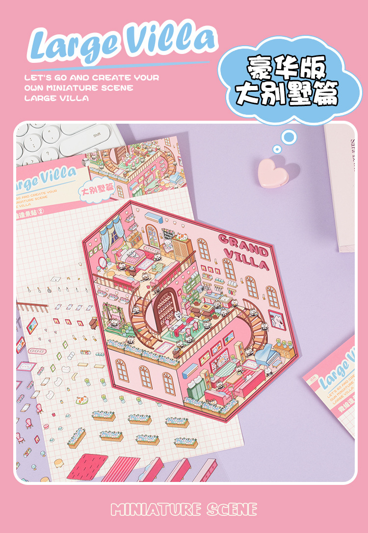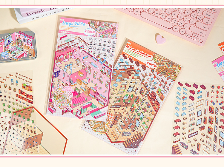 Inglés lenguaje ocio tres capas estereoscópico miniatura paisajismo pegatinas fantasía mundo 3D estereoscópico cabaña estudiantes collage interesante