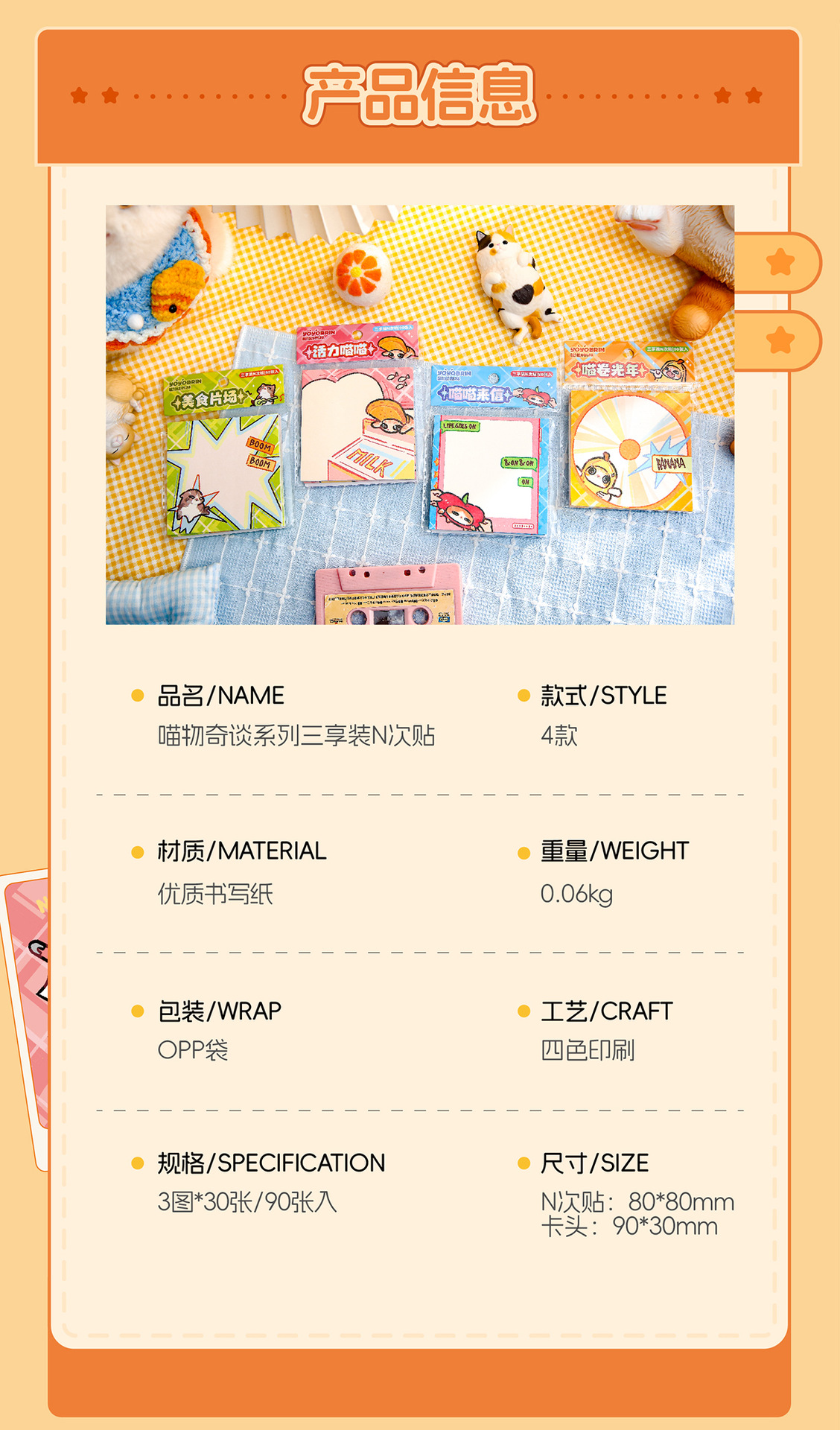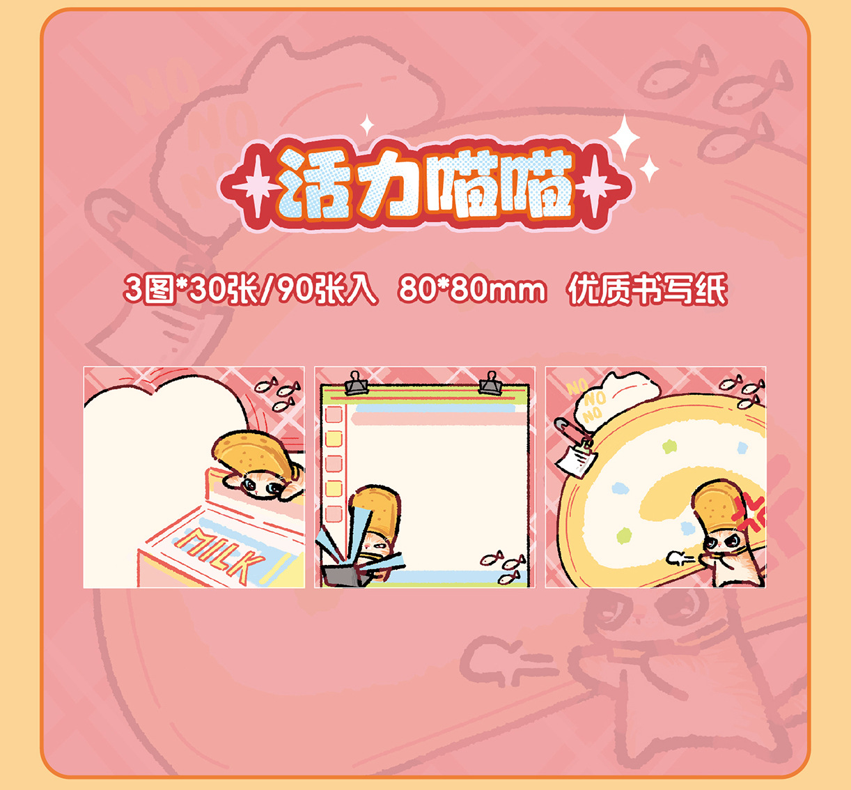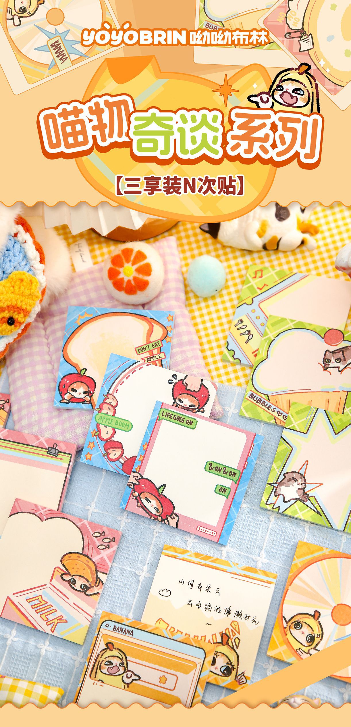 Youyou Brin Three Enjoy Pit N Tips Miau Wo Qi Tan Cartoon Original ins Style Student Post-it Notas de oficina