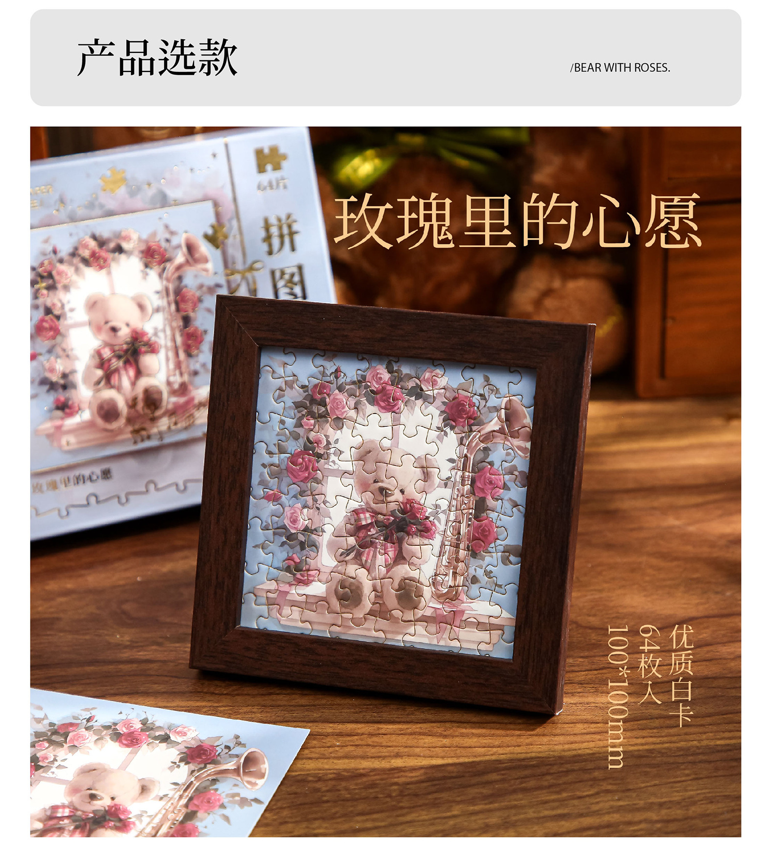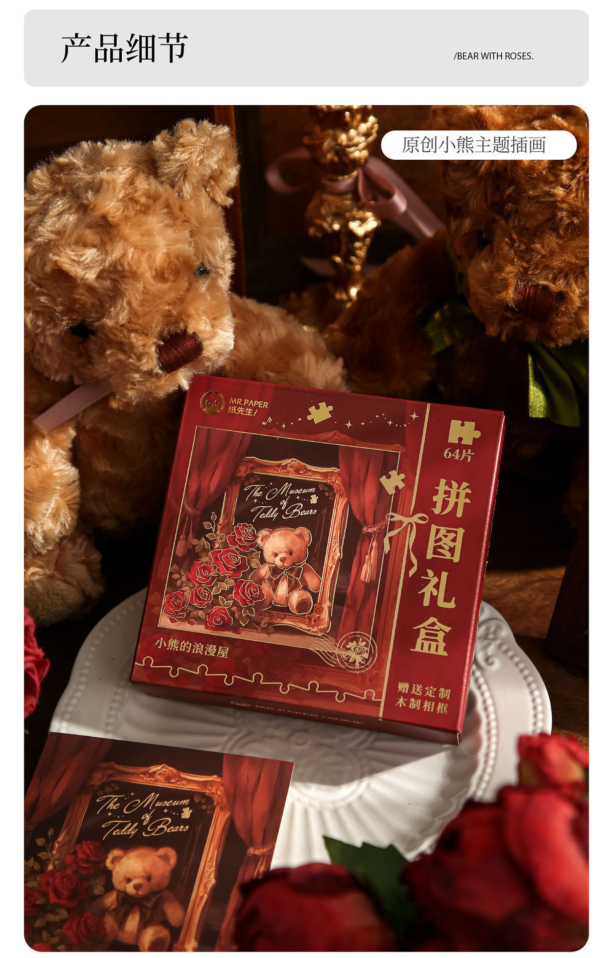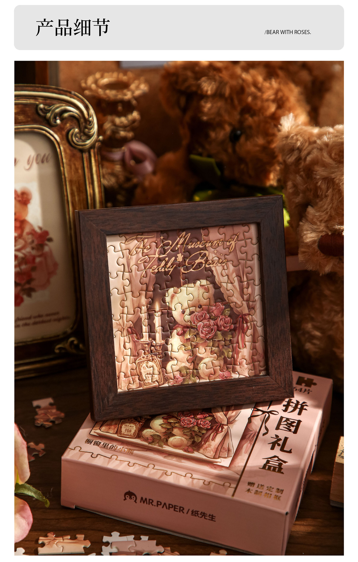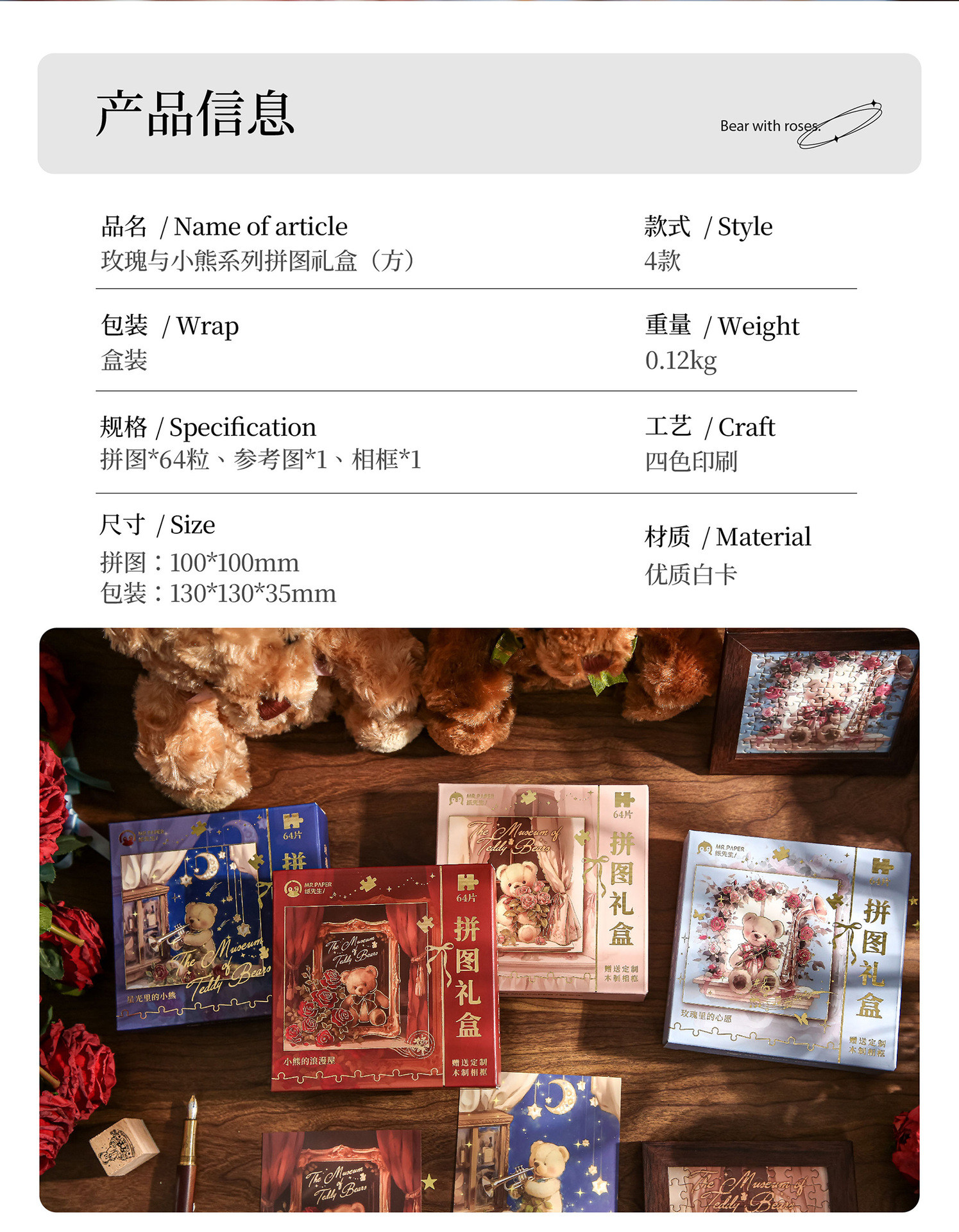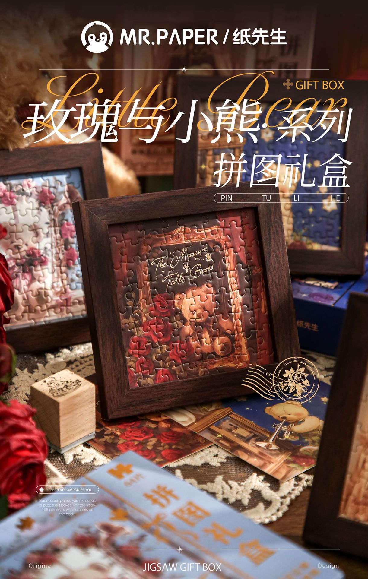 Mr. Paper Jigsaw Gift Box Rose and Bear High Valage Student Toy Puzzle Gift Diy Puzzle Adornos