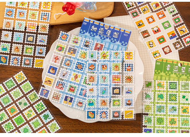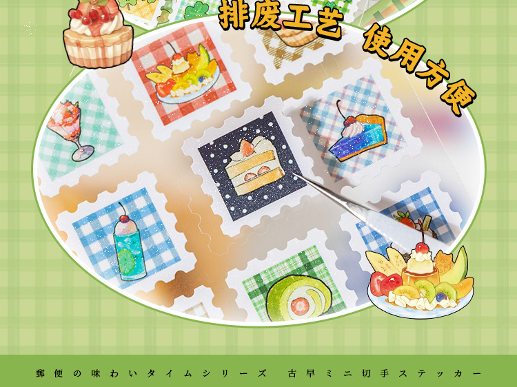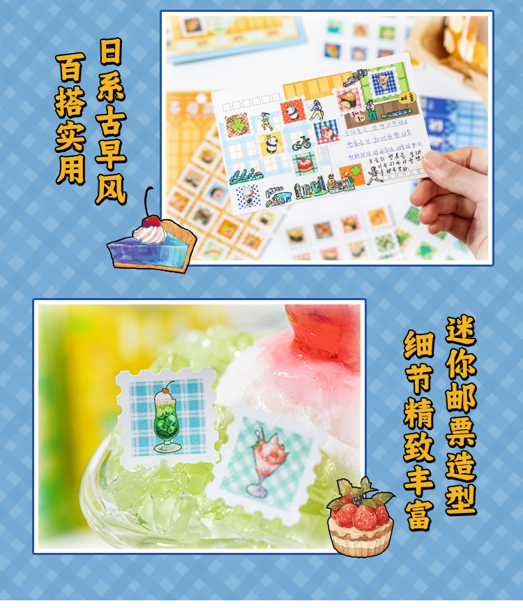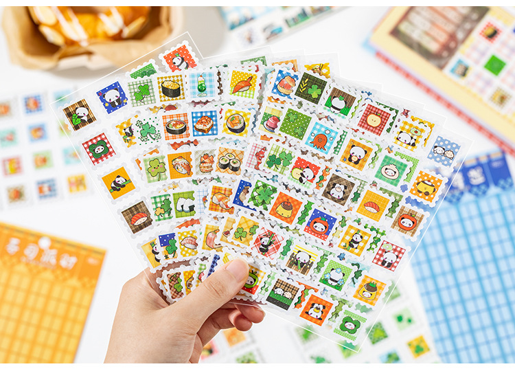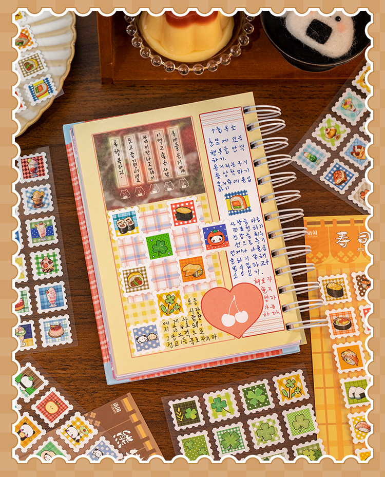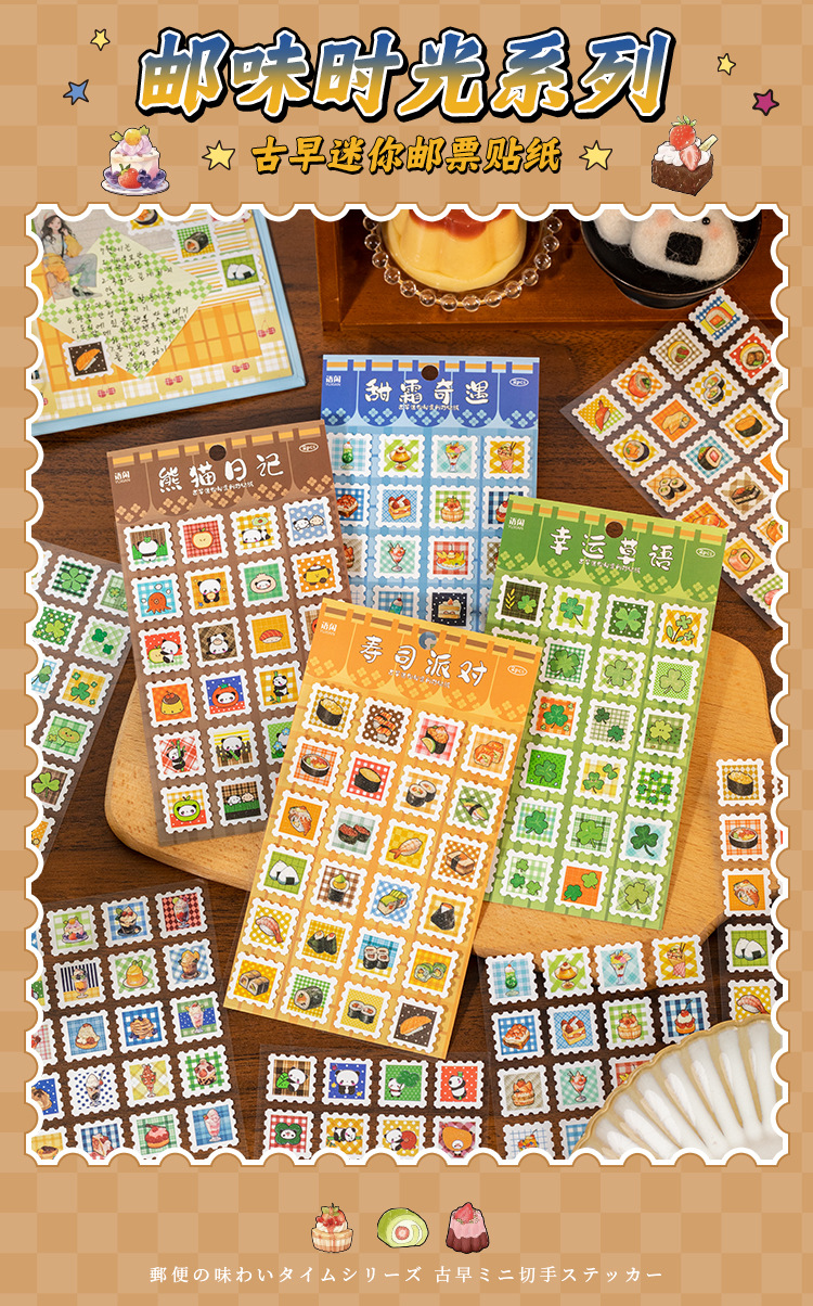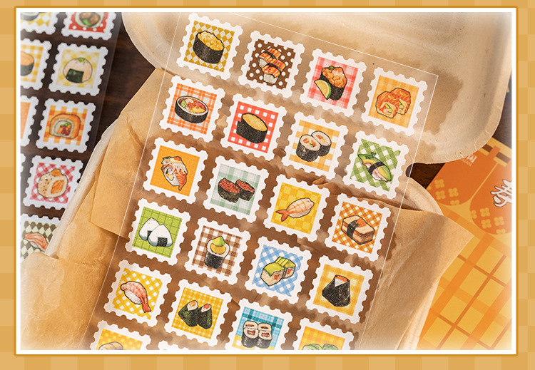 Yuzhou Guzao mini sello pegatinas de tiempo de sabor postal comida japonesa material de cocina de sopa de cocina decoración collage de cuentas