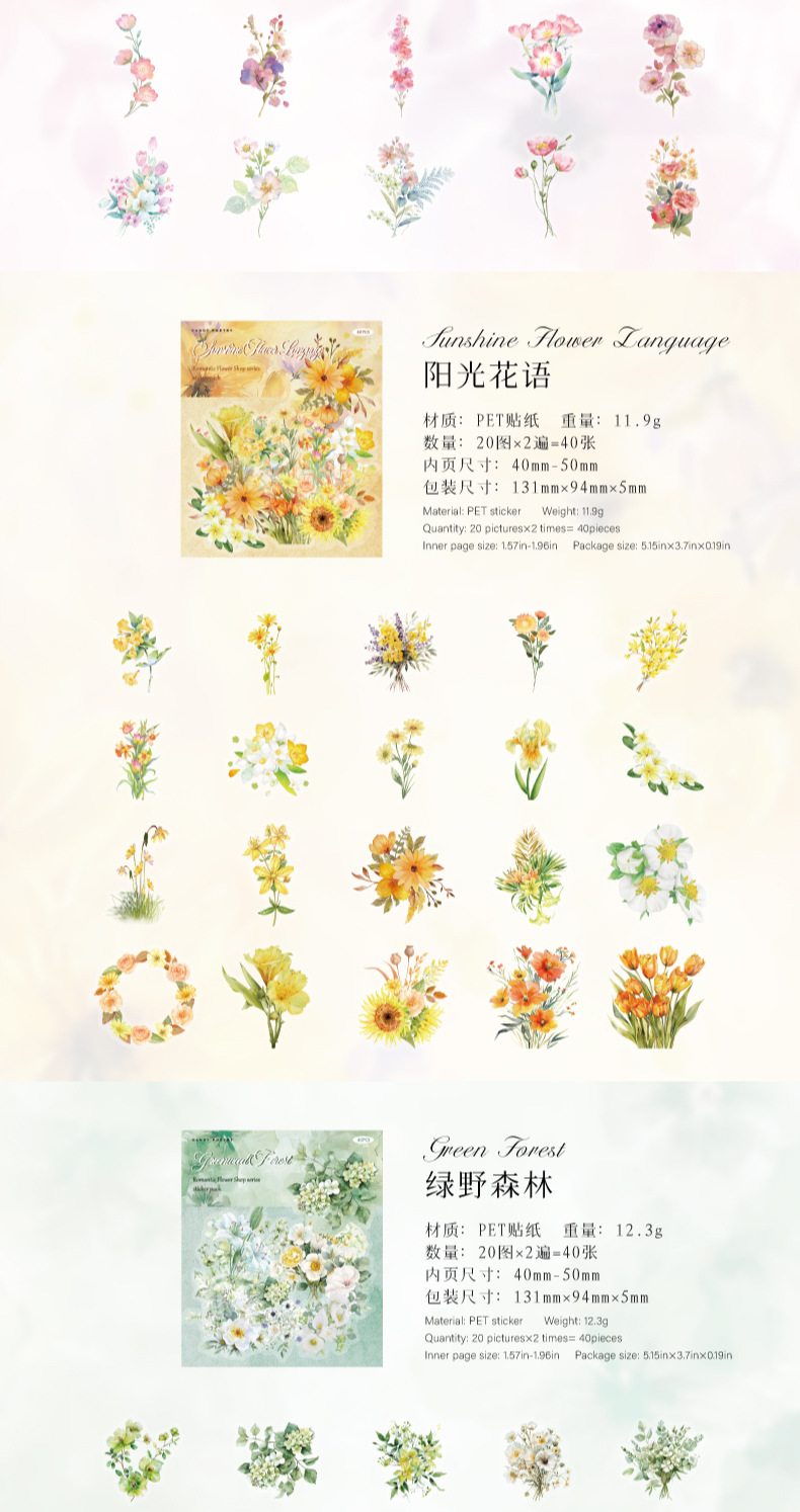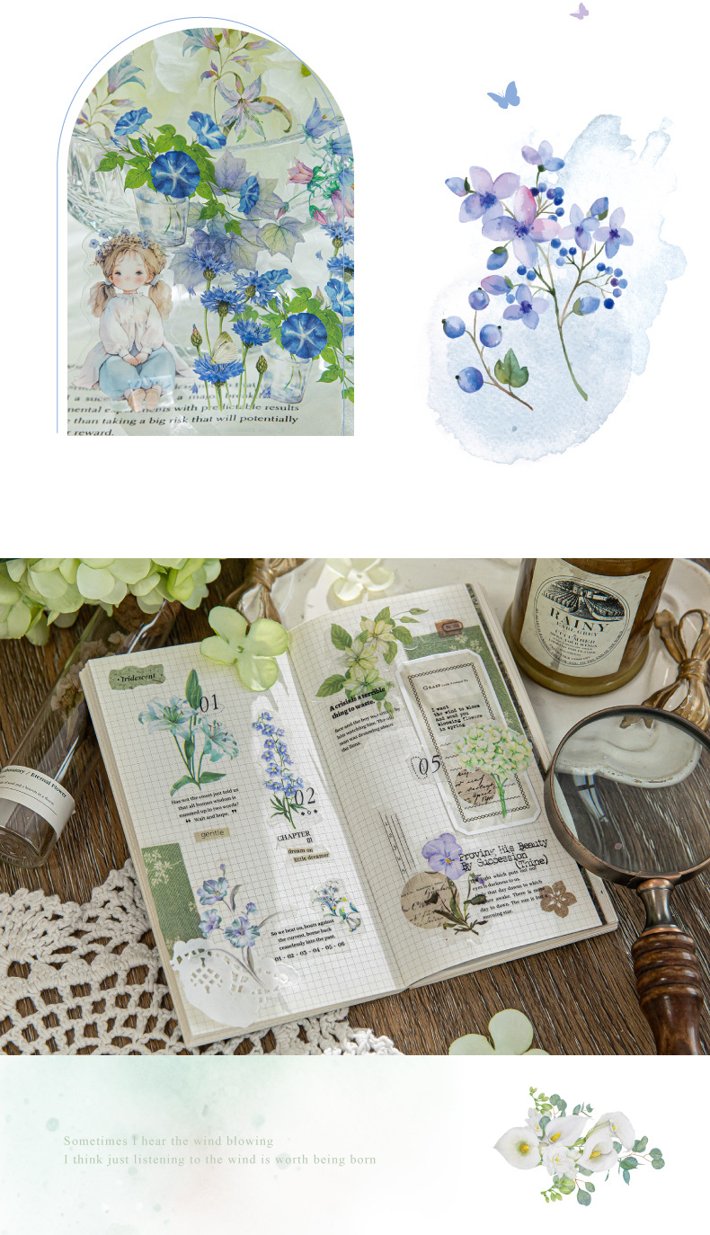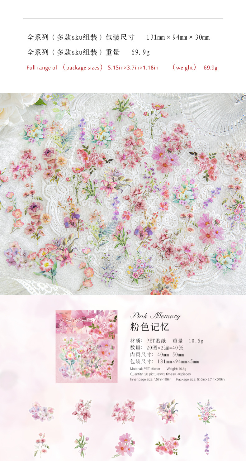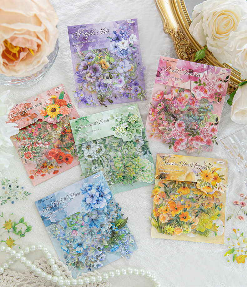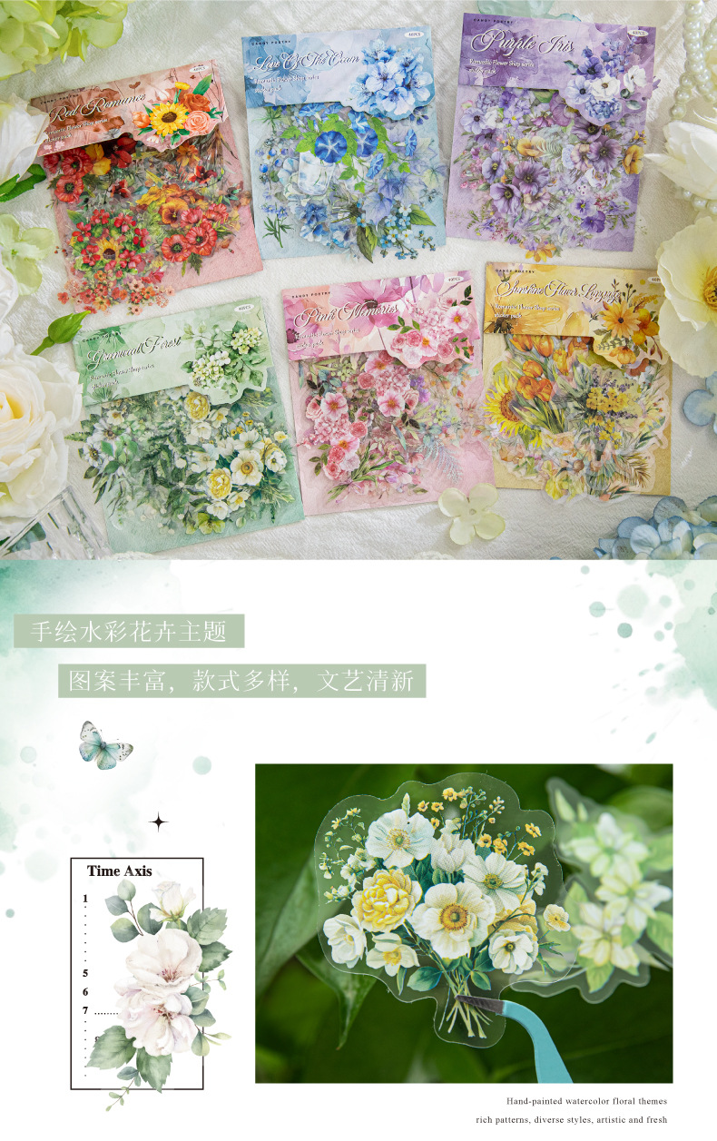 Sugar Poetry PET Bolsa de pegatinas de tinta blanca Florería romántica Fresh ins Girl Hand cuenta material de decoración de bricolaje pegatinas de paisajismo