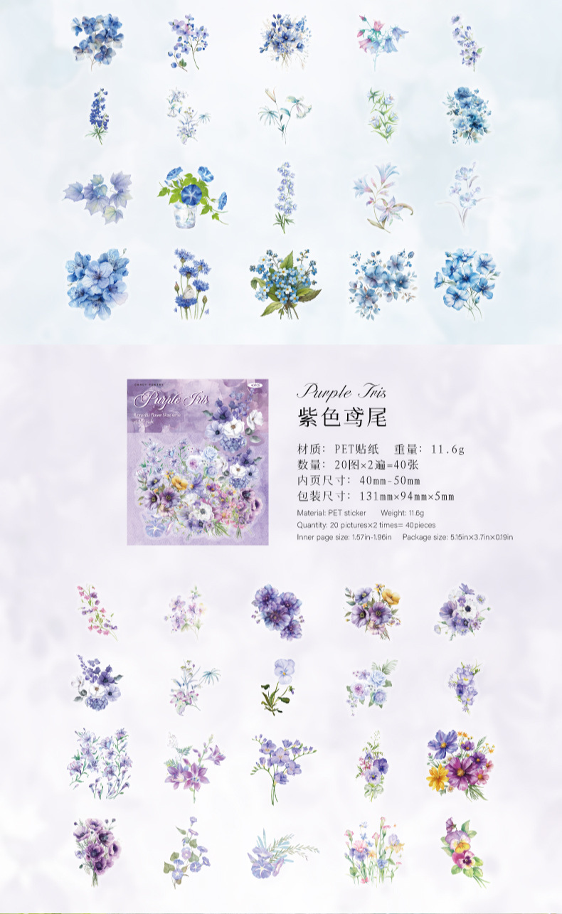| Colores | Iris morado,Memoria rosa,Amor del océano,Bosque verde,Lenguaje de flores de sol,Romance rojo |