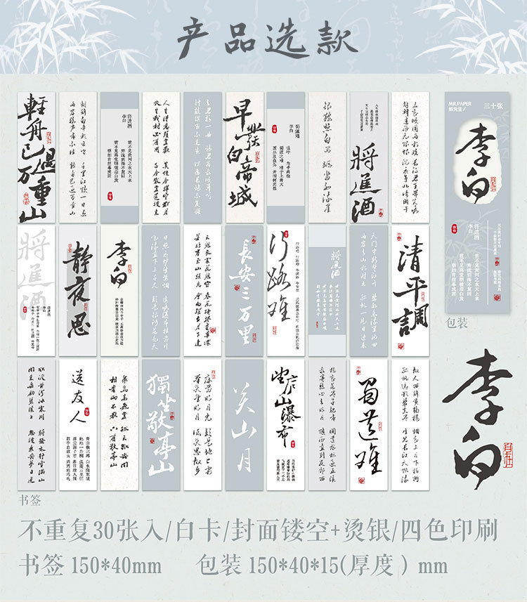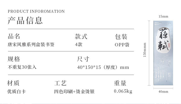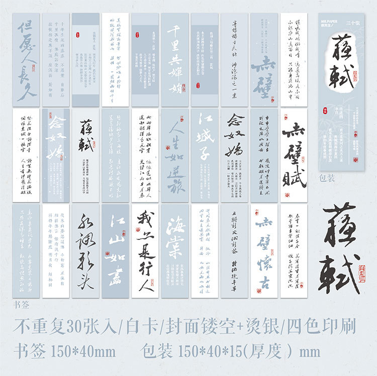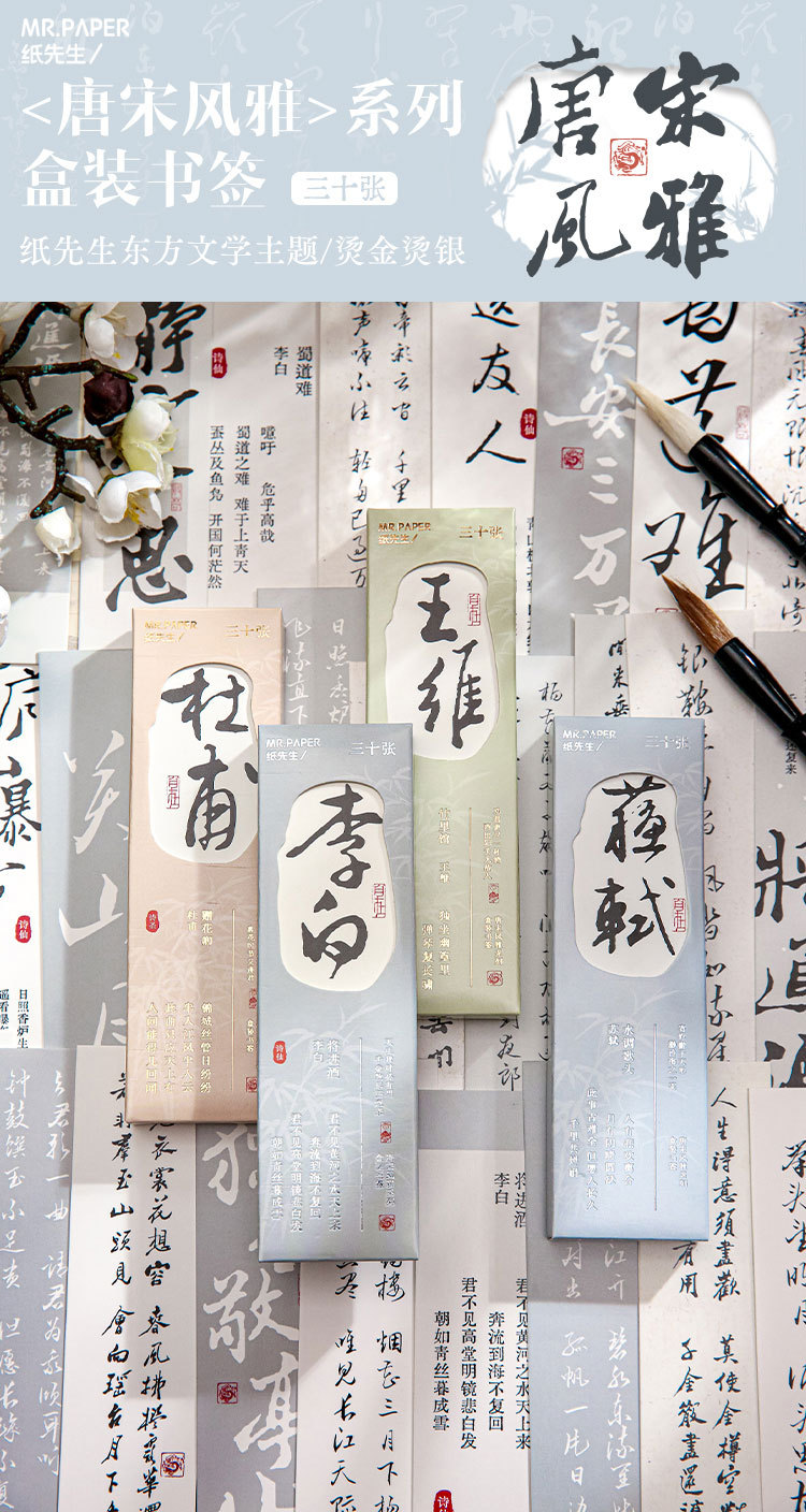 Mr. Paper estampado en caliente marcador en caja de oro y plata Tang y Song estilo elegante serie chino estilo antiguo temporada escolar papelería libro de lectura titular