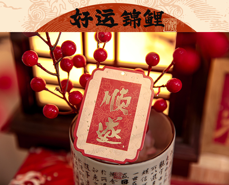 | Color | Bendición celestial, alegría y paz, buena suerte koi, alegría constante en las cuatro estaciones, alabanza oportuna, buena suerte, todo se puede esperar |