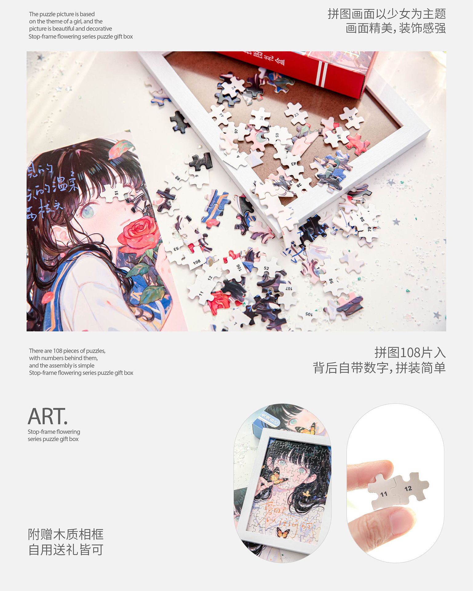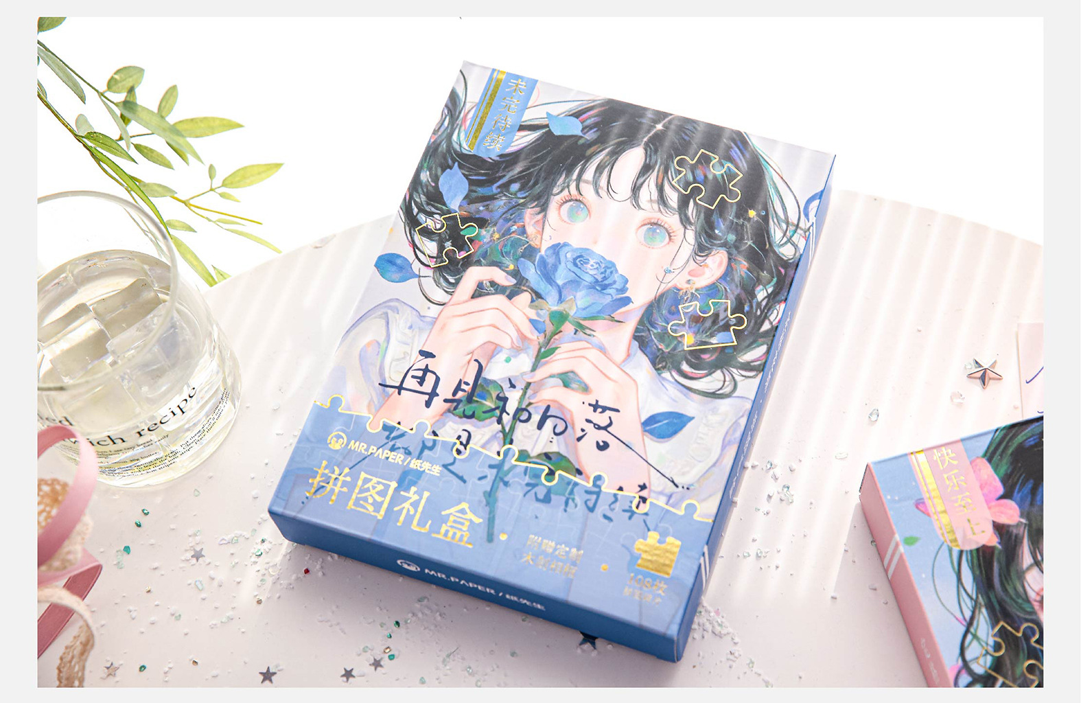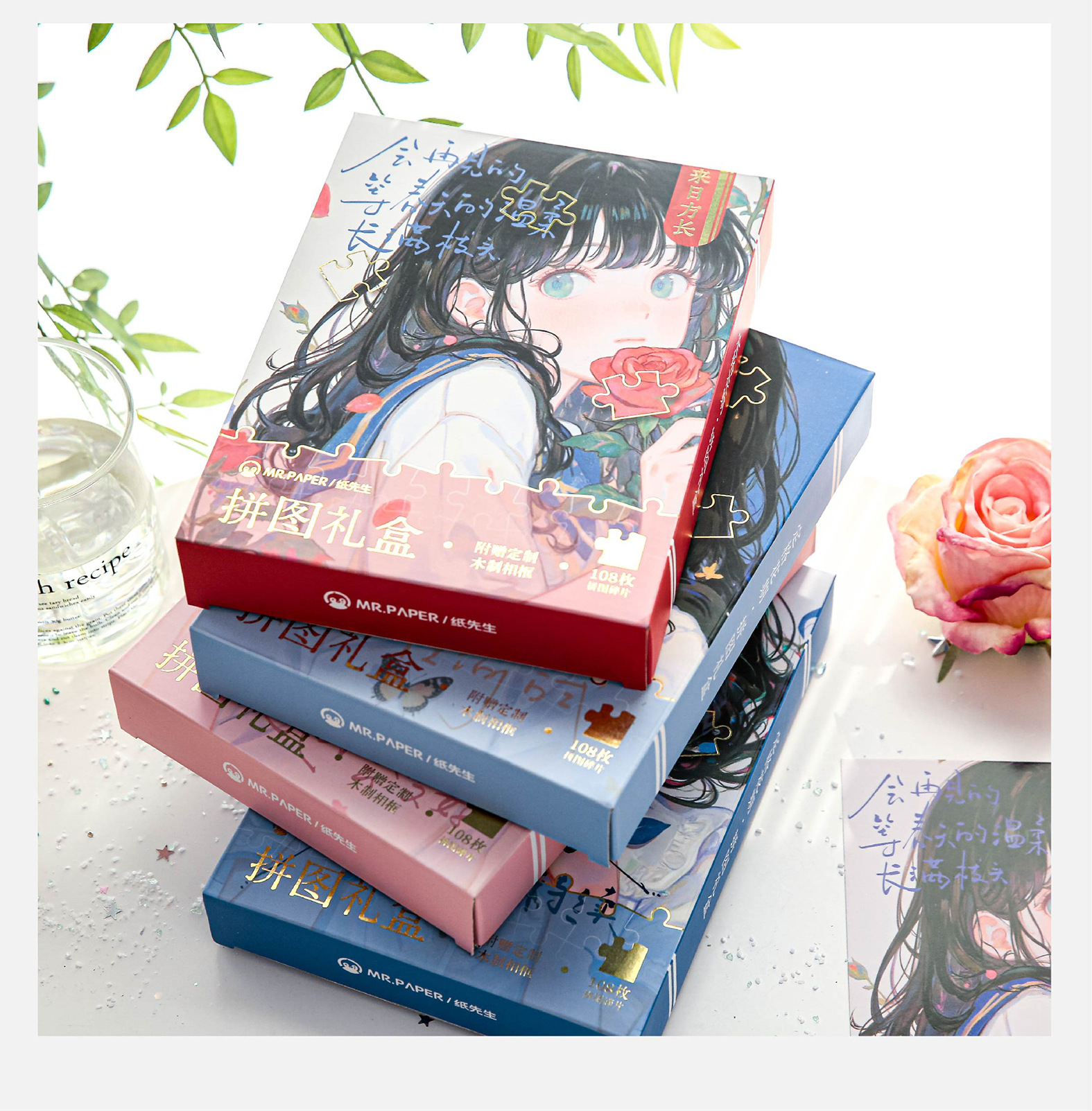 Mr. Paper Puzzle Caja de regalo Serie de período de floración de cuadros fijos Anime Girl Romance de alto valor Estudiante romántico Diy Desktop Fight