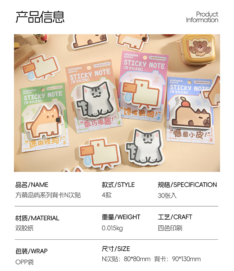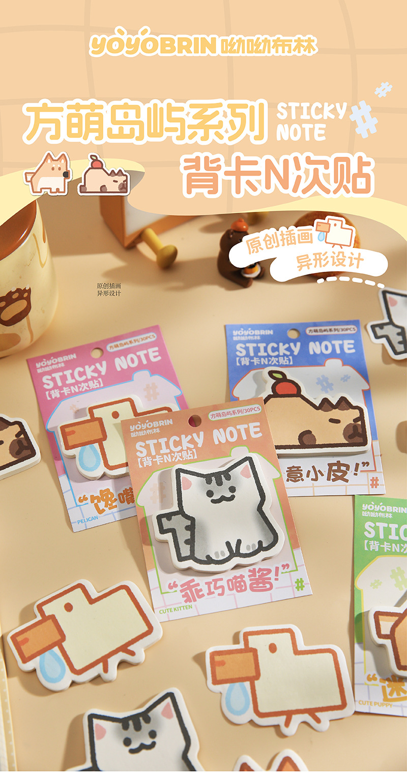 Youyou Brin tarjeta trasera N pegatinas Fang Meng Island Cartoon Original ins estilo estudiante nota adhesiva nota de oficina