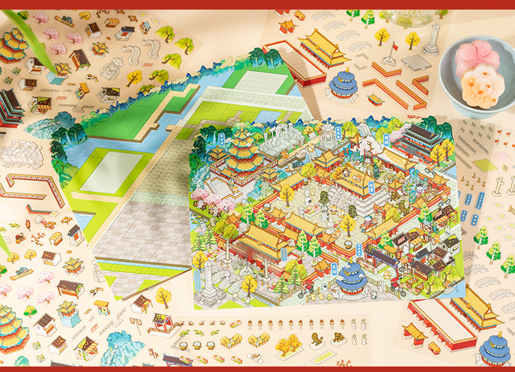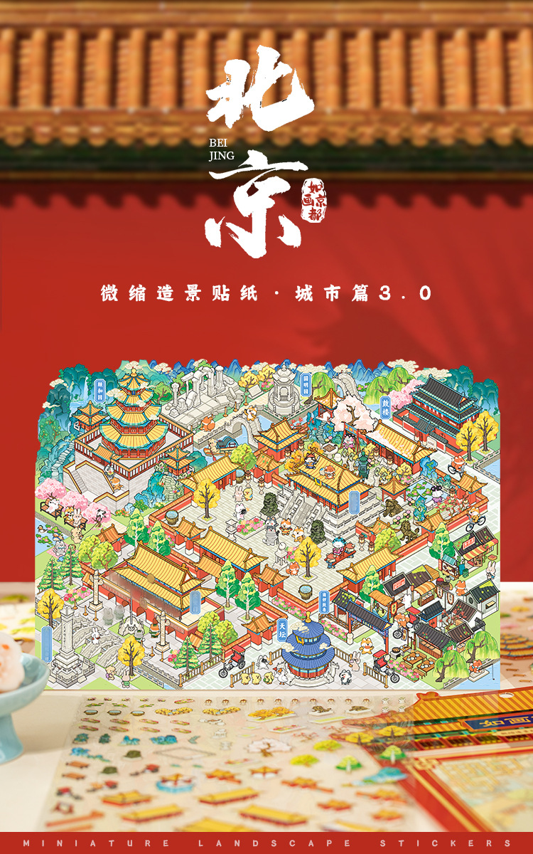 Pegatinas de paisajismo en miniatura de Yu Xian Pet City Capítulo 3.0 Beijing Diversión tridimensional Edición ampliada de pegatinas de paisajismo