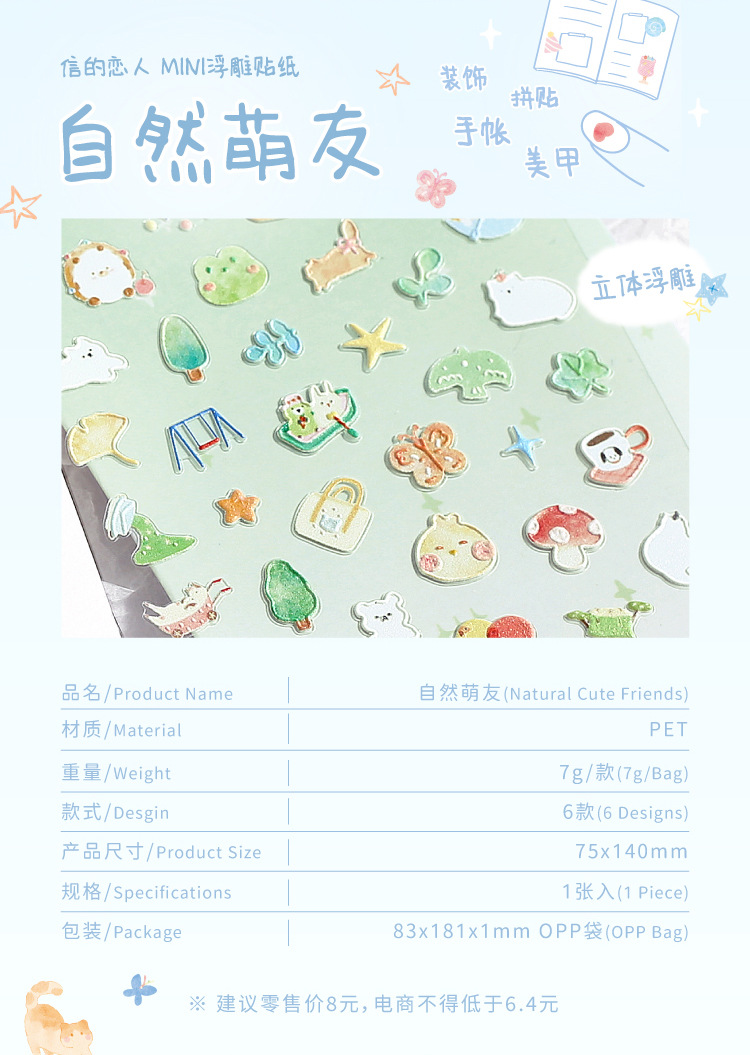 Letter Lovers MINI Pegatinas en relieve Natural Mengyou Pet Material de decoración divertido Pegatinas de bricolaje Pegatinas de cuenta manual