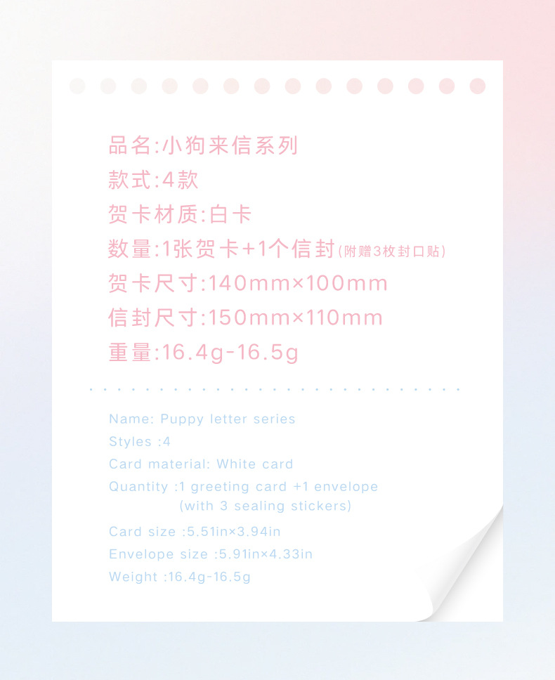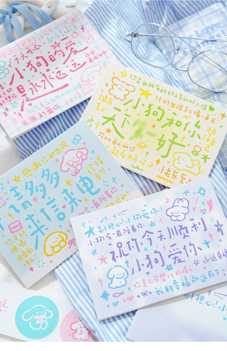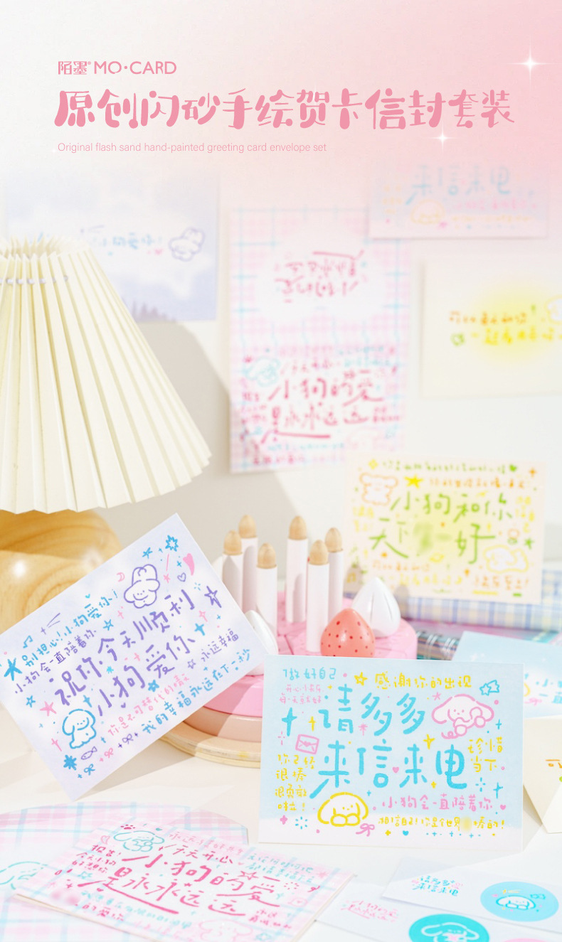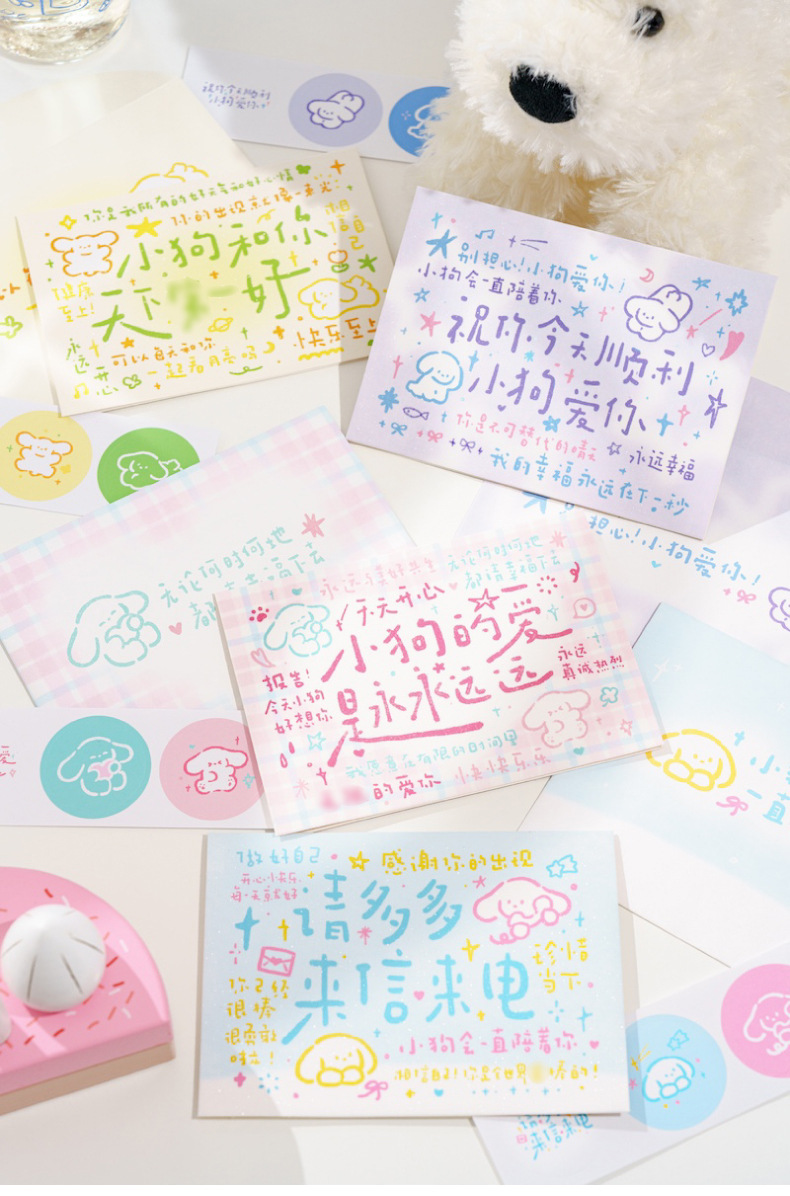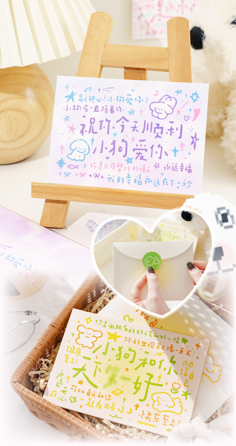 Tarjetas de felicitación y sobre de arena de tinta de tinta de moho serie de cartas de perros regalos de estudiantes sobre de tarjetas de felicitación