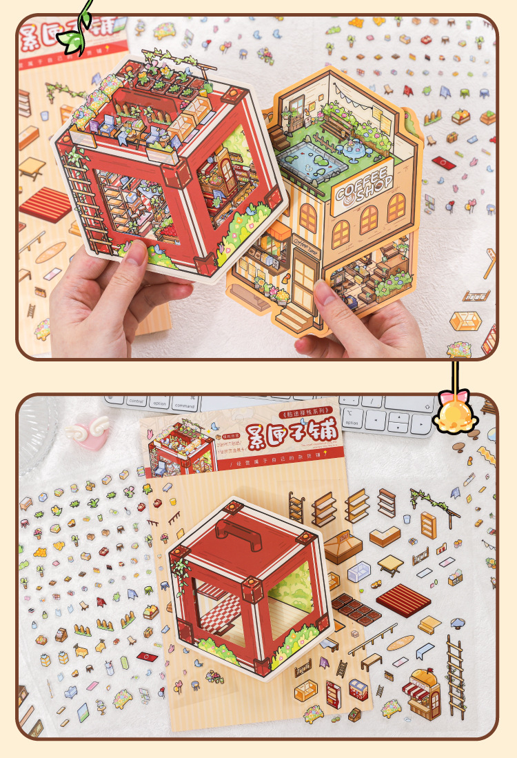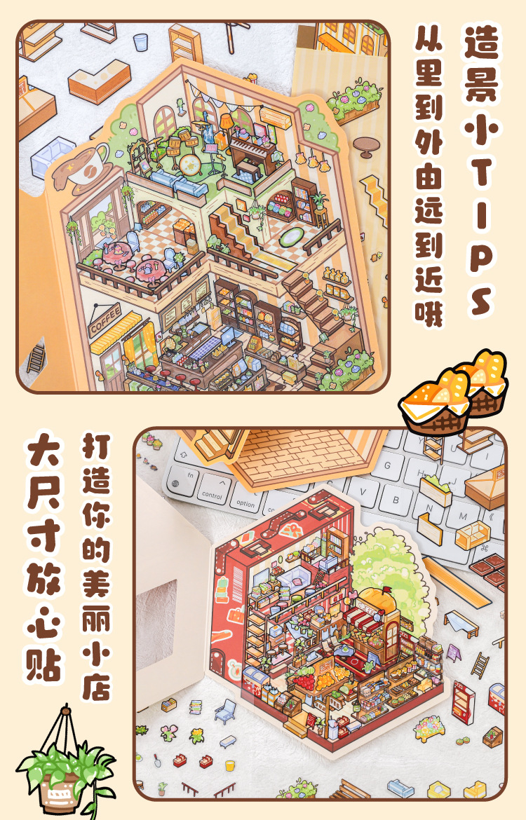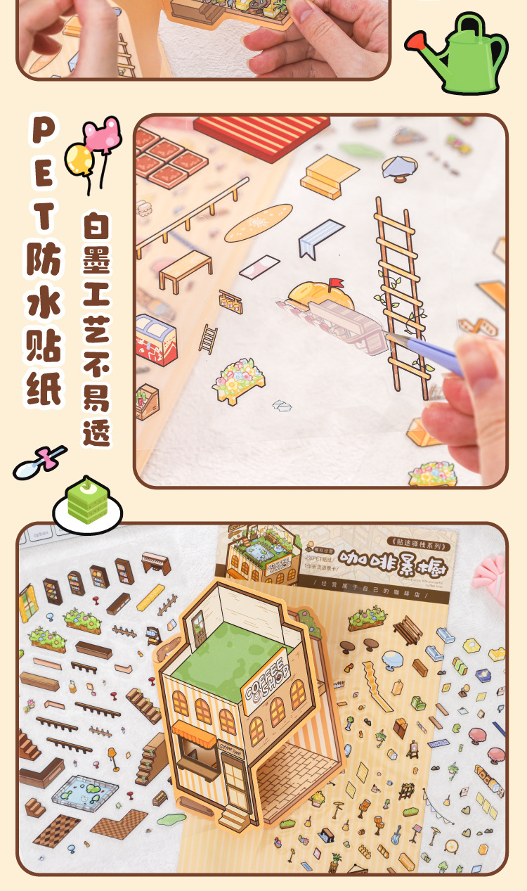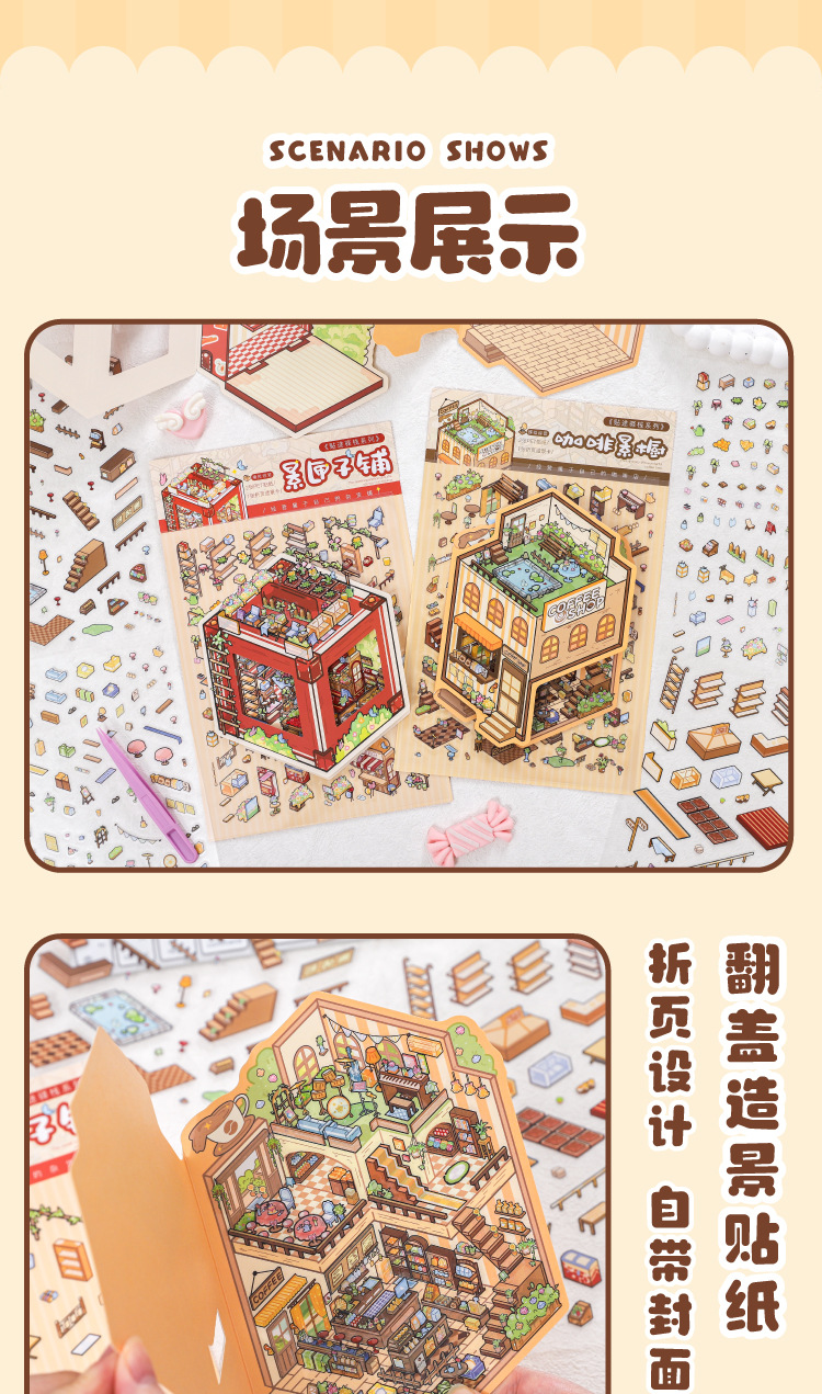 Pegatinas de paisajismo en miniatura de huellas de papel, pegatinas, series de postes, escenas de temas retro, pegatinas decorativas de material de cuenta manual