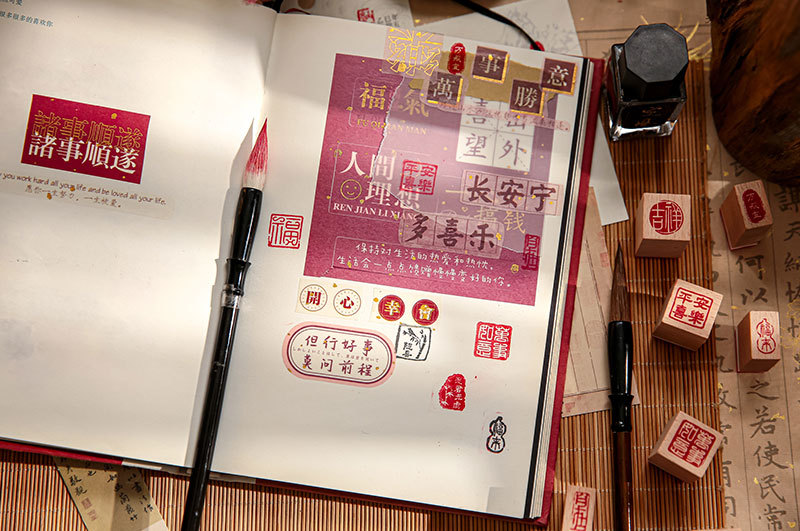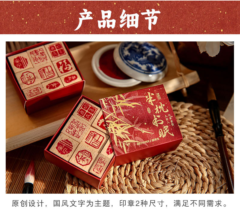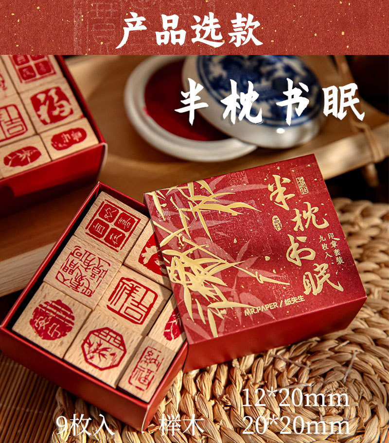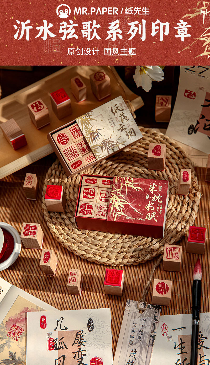 El Sr. Paper combina el sello de la serie de canciones de cuerda Yishui, escritura de bendición simple y creativa, material de cuentas de mano, sello básico
