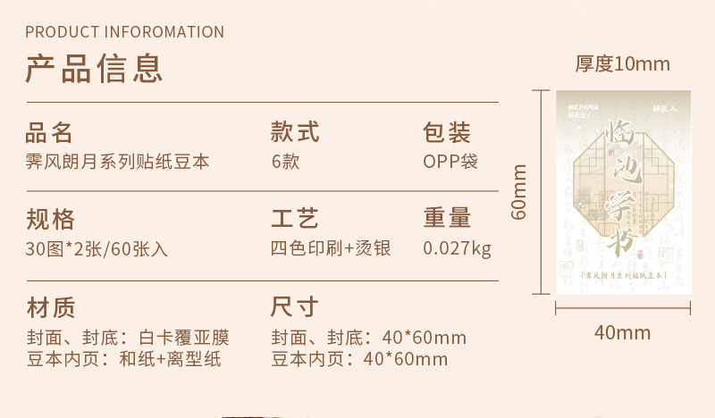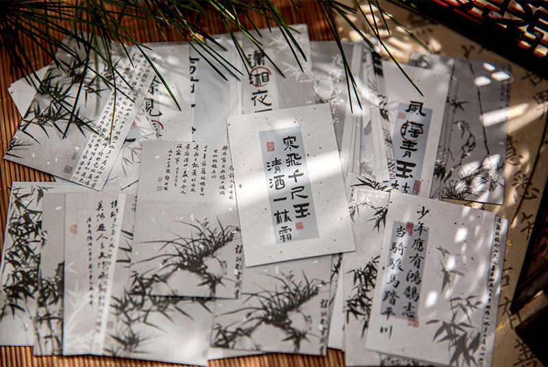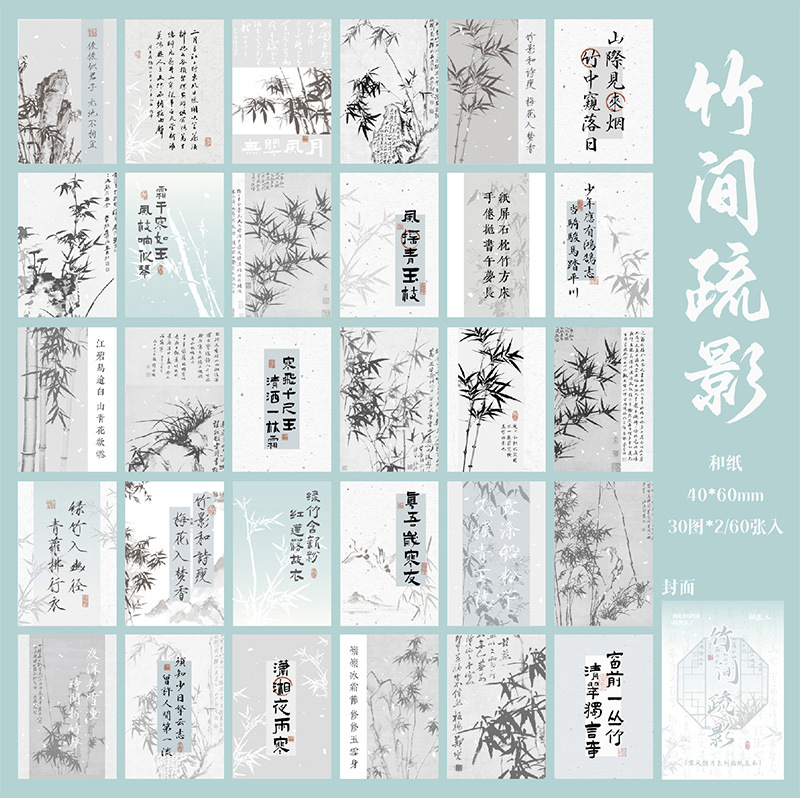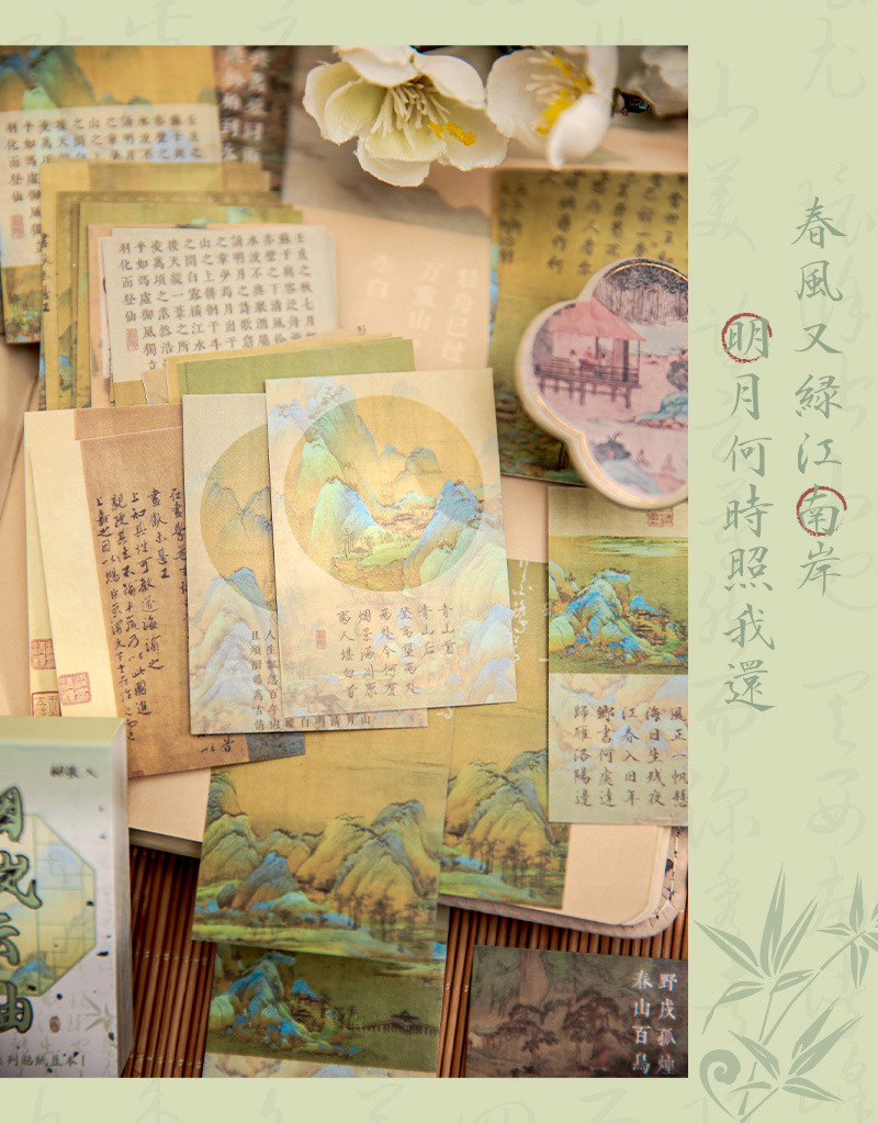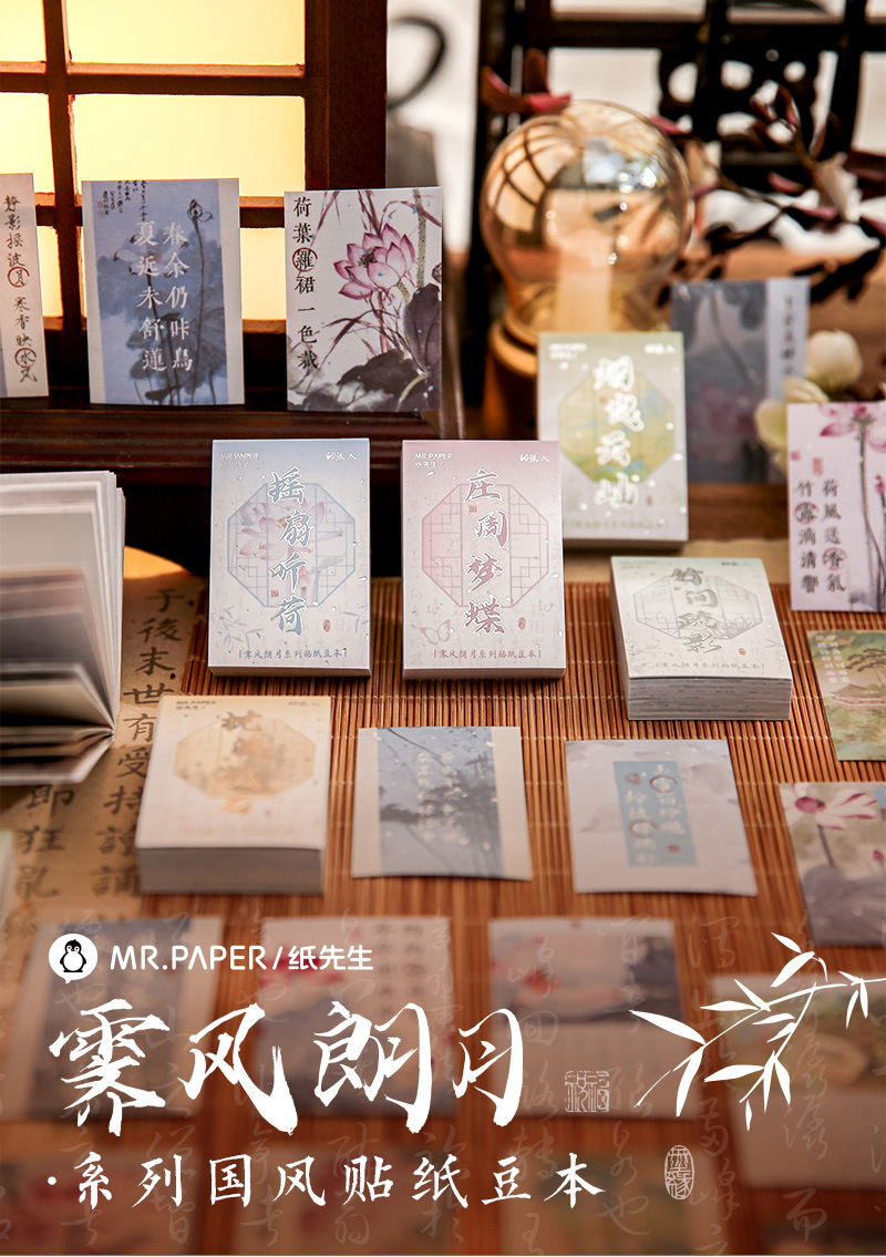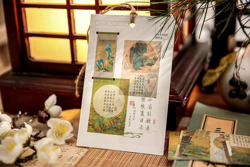 Mr. papel y papel pegatinas douben Feng Langyue serie estilo nacional caligrafía ilustración Diario paisaje material Collage