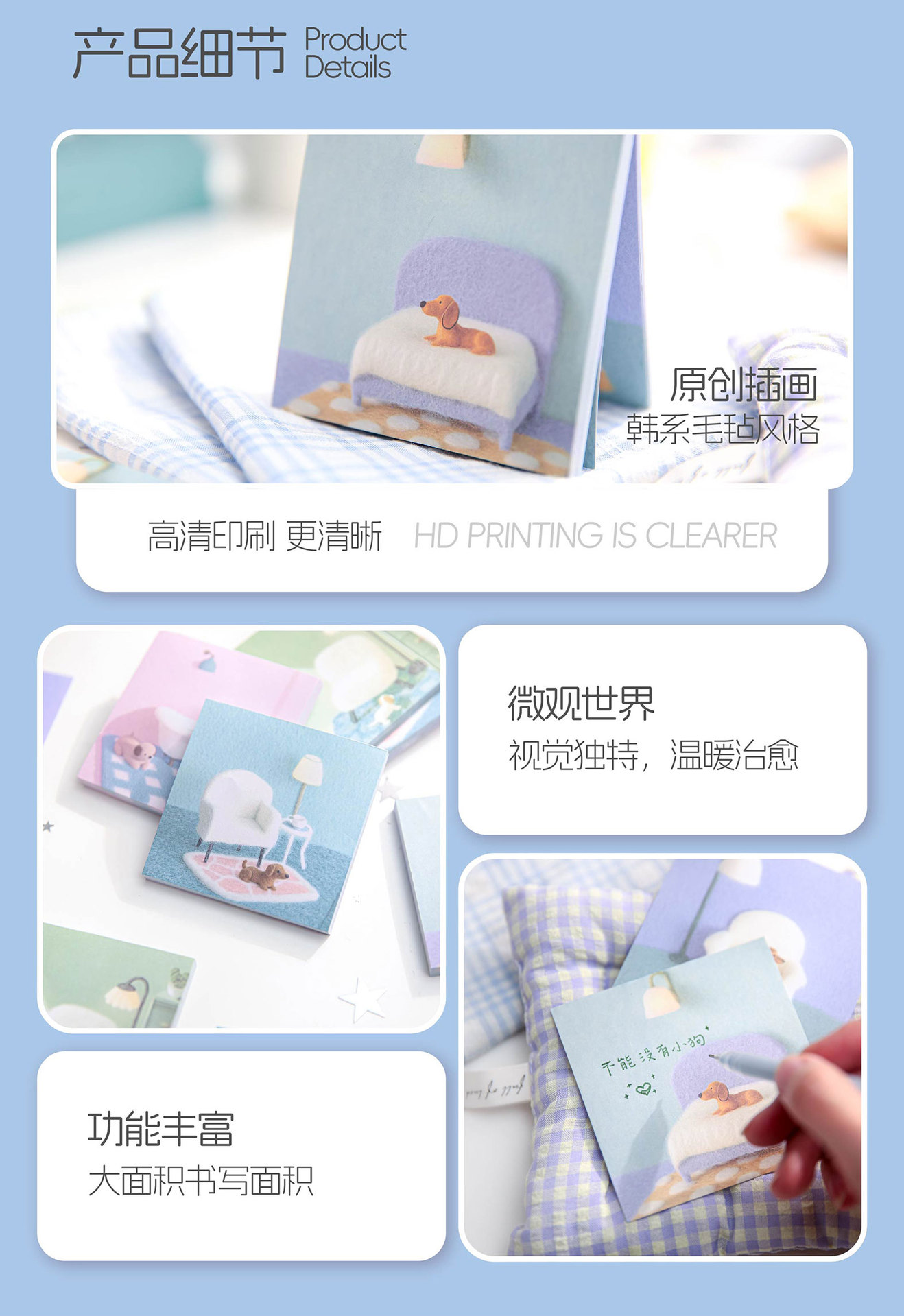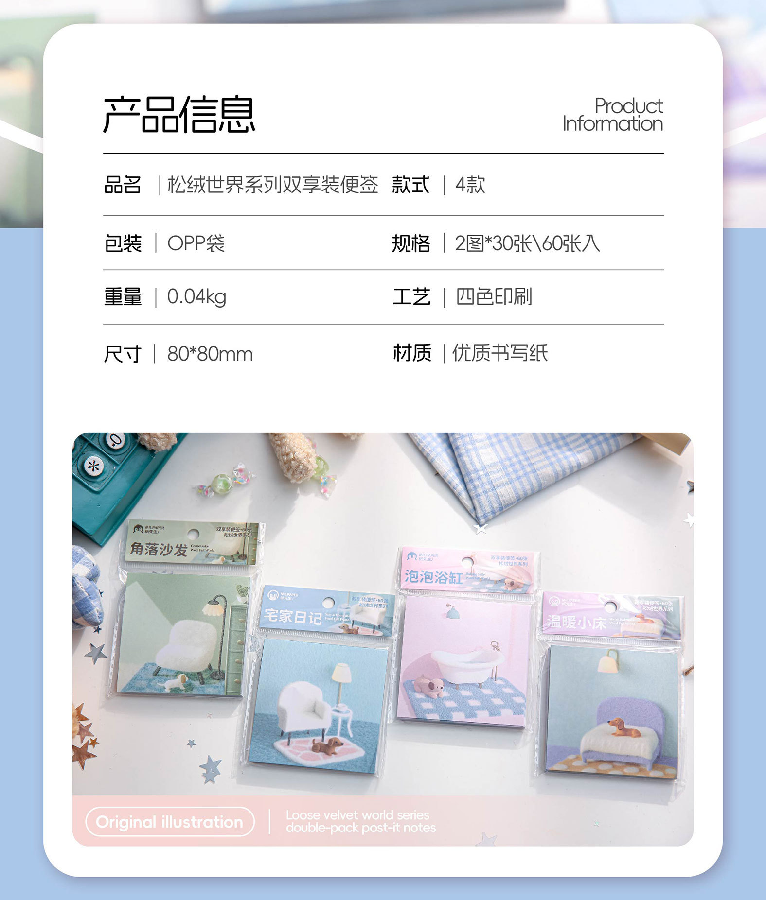 Mr. Paper Cartoon Double Enjoy Set Notas Notas creativas del mundo de terciopelo suelto Libro de notas de mano Base de notas de mensaje de estudiante Papel