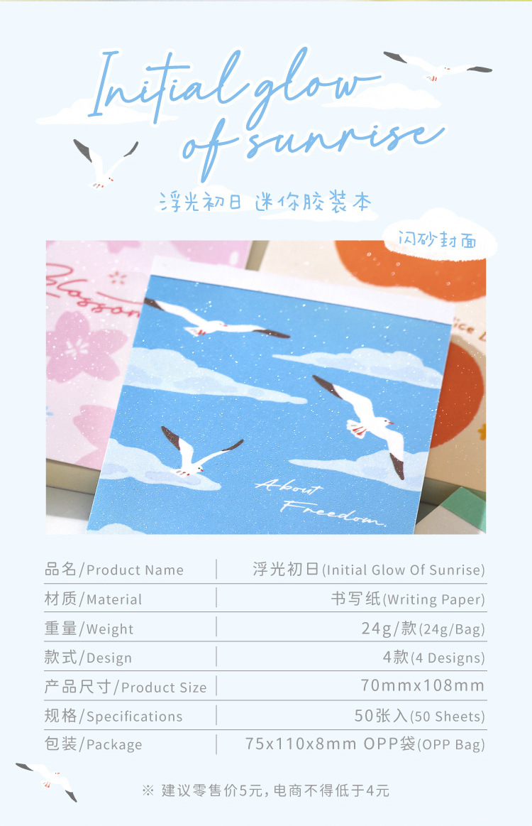 NOTE FOR Mini empaquetado en plástico Floating Light First Day Series Cuaderno de mano lindo coreano Cuaderno de mensaje de estudiante