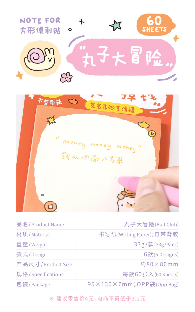 NOTEFOR Post-it Maruko Adventure Lovesome Student Office puede pegar notas Mensaje N veces