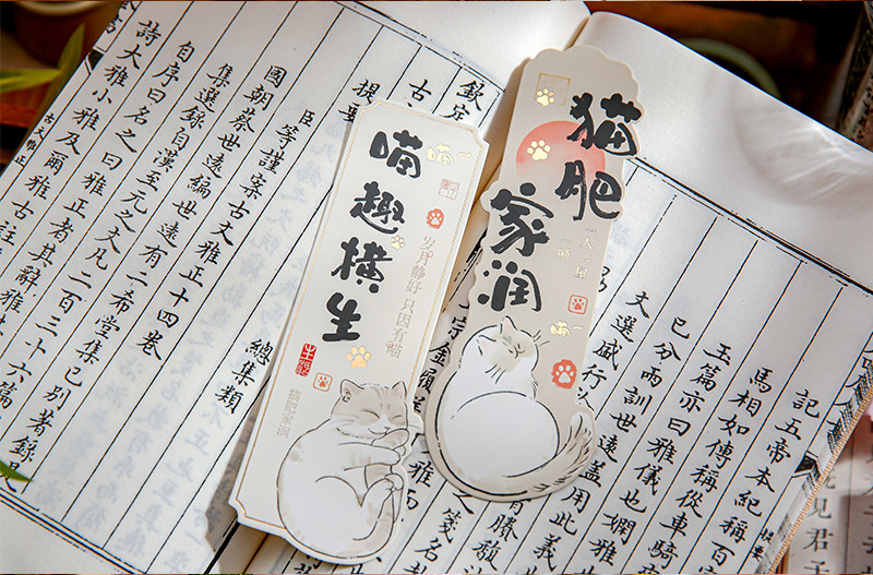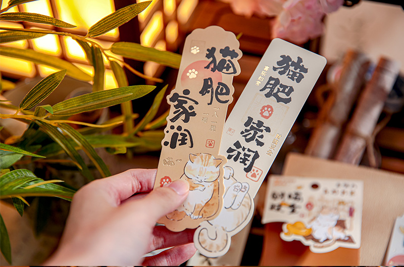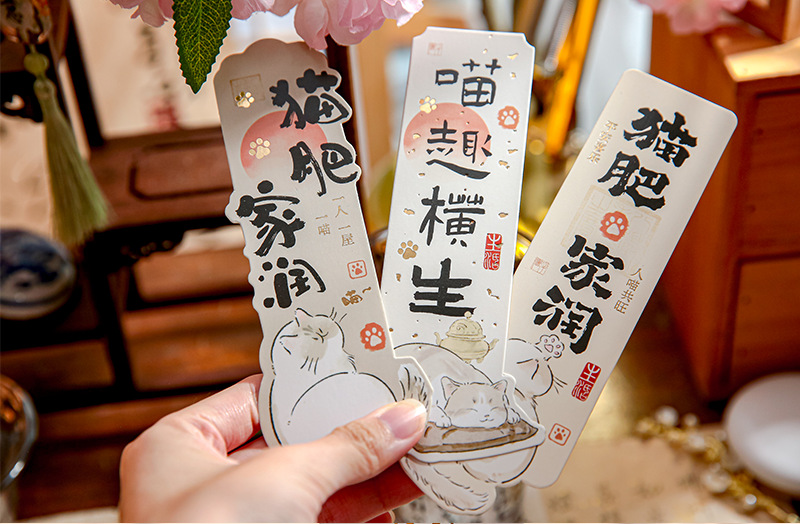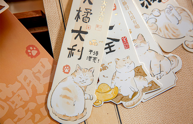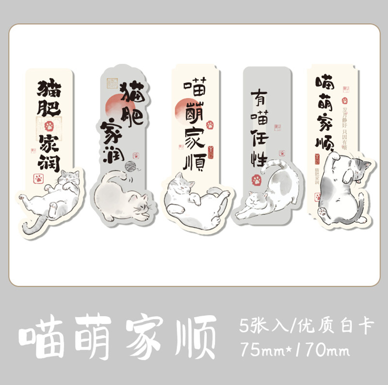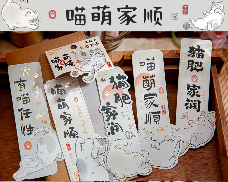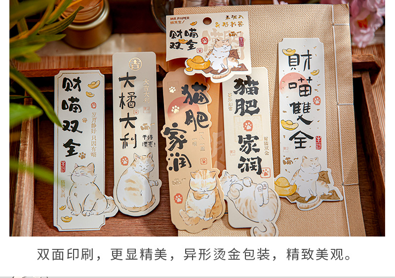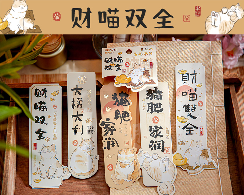 Mr. Paper nuevo estilo chino marcadores de forma extraña Miao Fei Jia Run serie de ilustraciones de gatos bendición texto de lectura marcadores