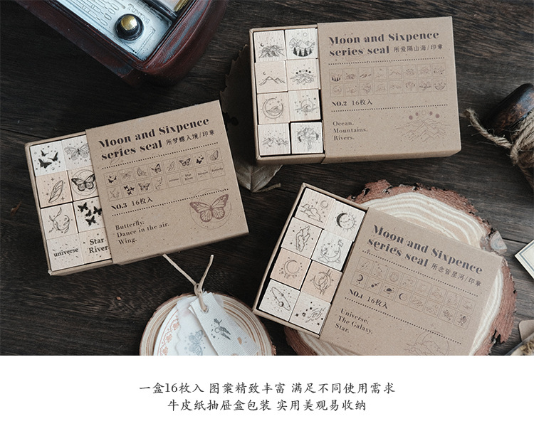 Mr. Paper sello de madera traje Luna y Sixpenny serie papelería Diario decoración DIY material impresión