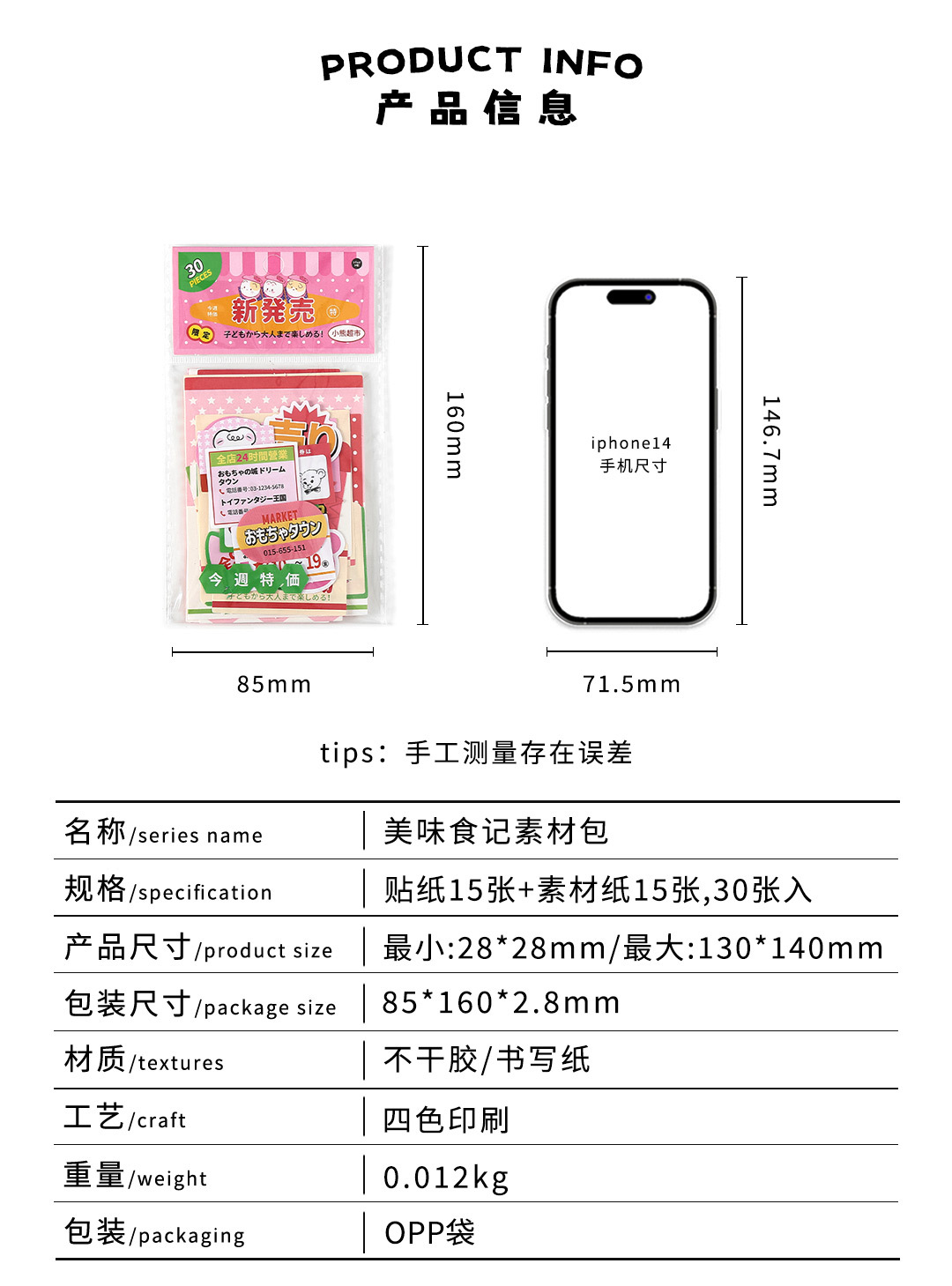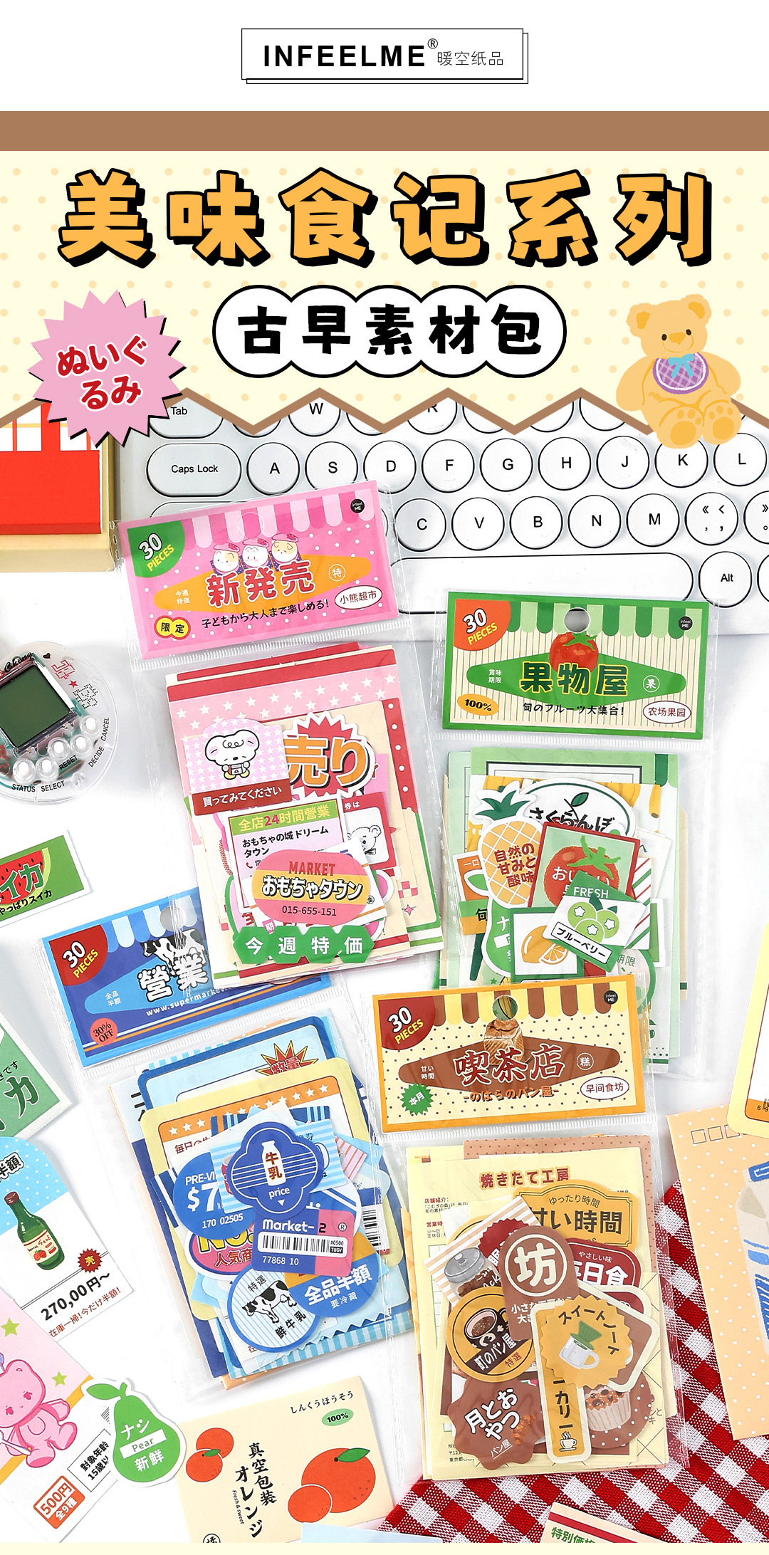 Paquete de material de papel de escritura Infeel.Me Delicious Food Theme Caja del teléfono móvil Decoración Cuenta de mano Material de bricolaje