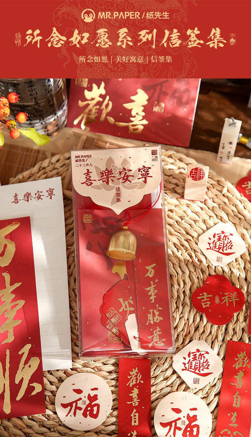 Mr. Paper Guofeng Bell Letter Signature Set de bendición creativa sobre de papel de carta de campana colgante