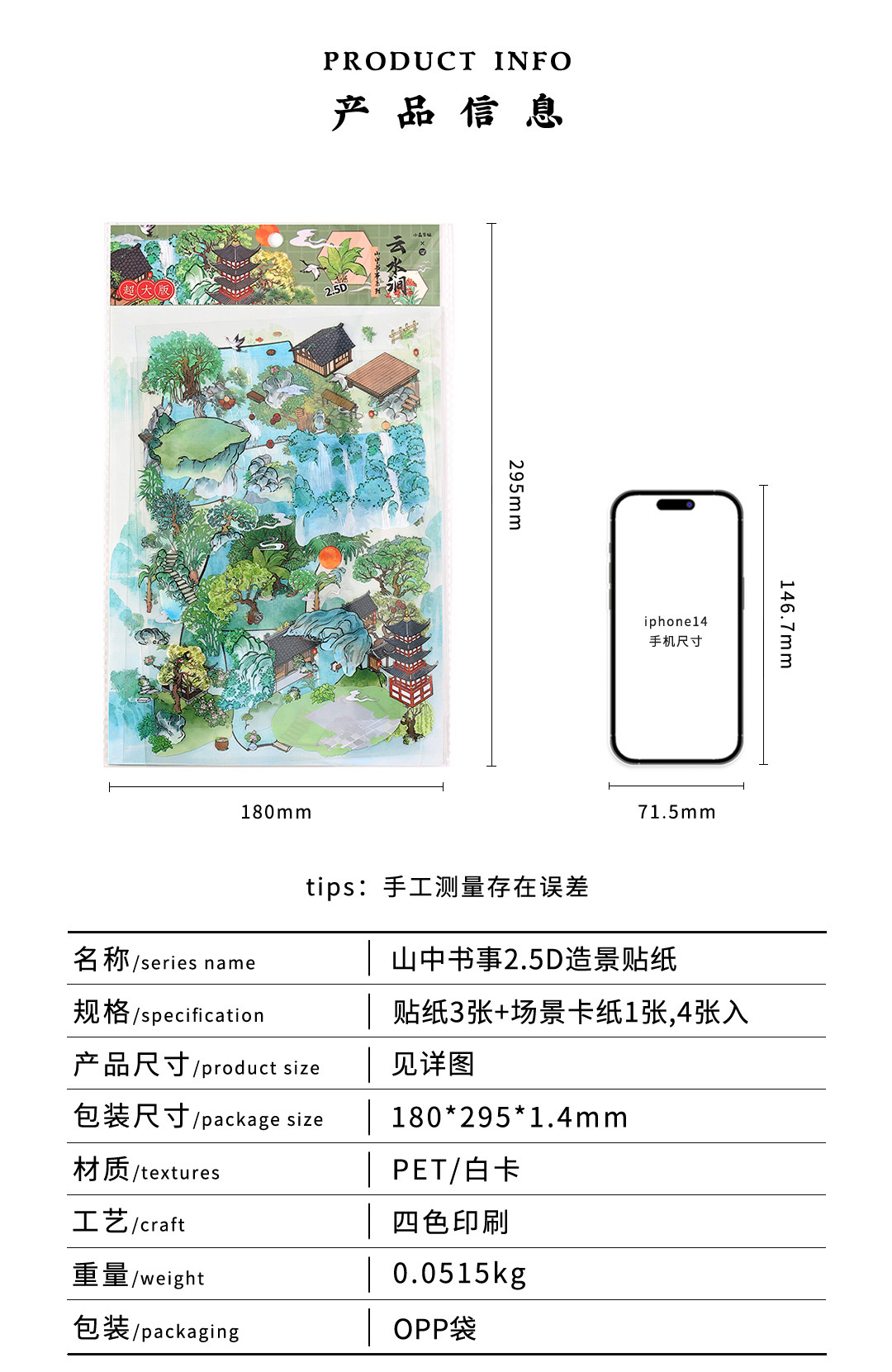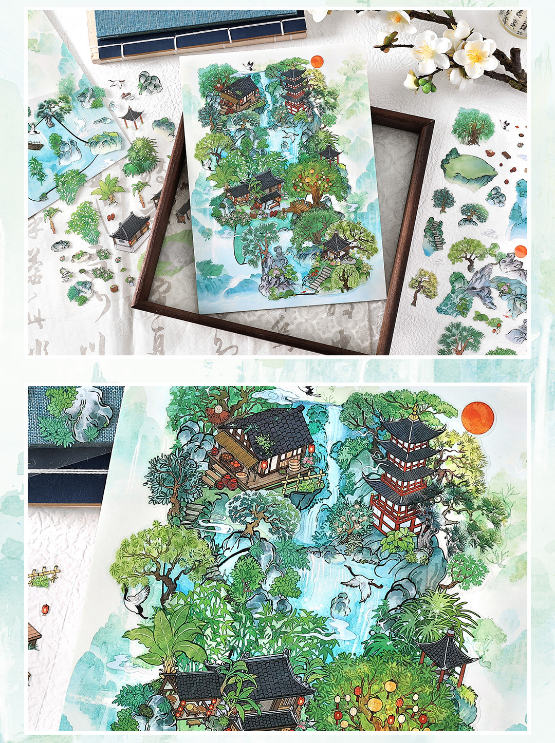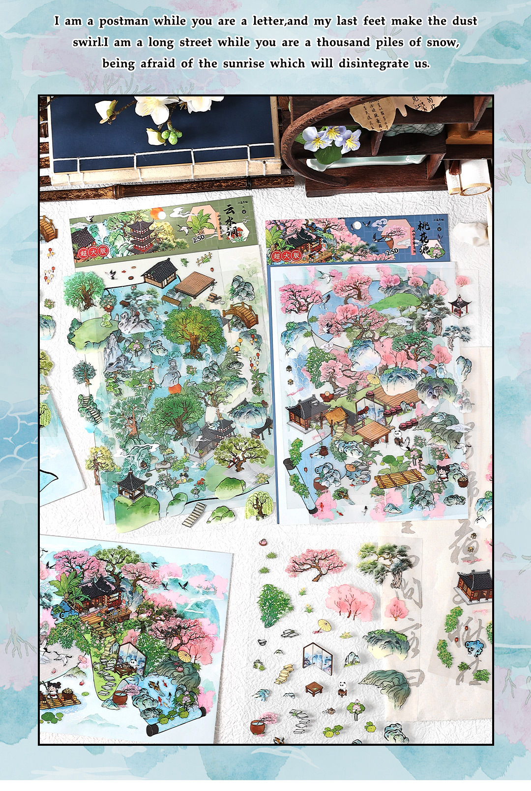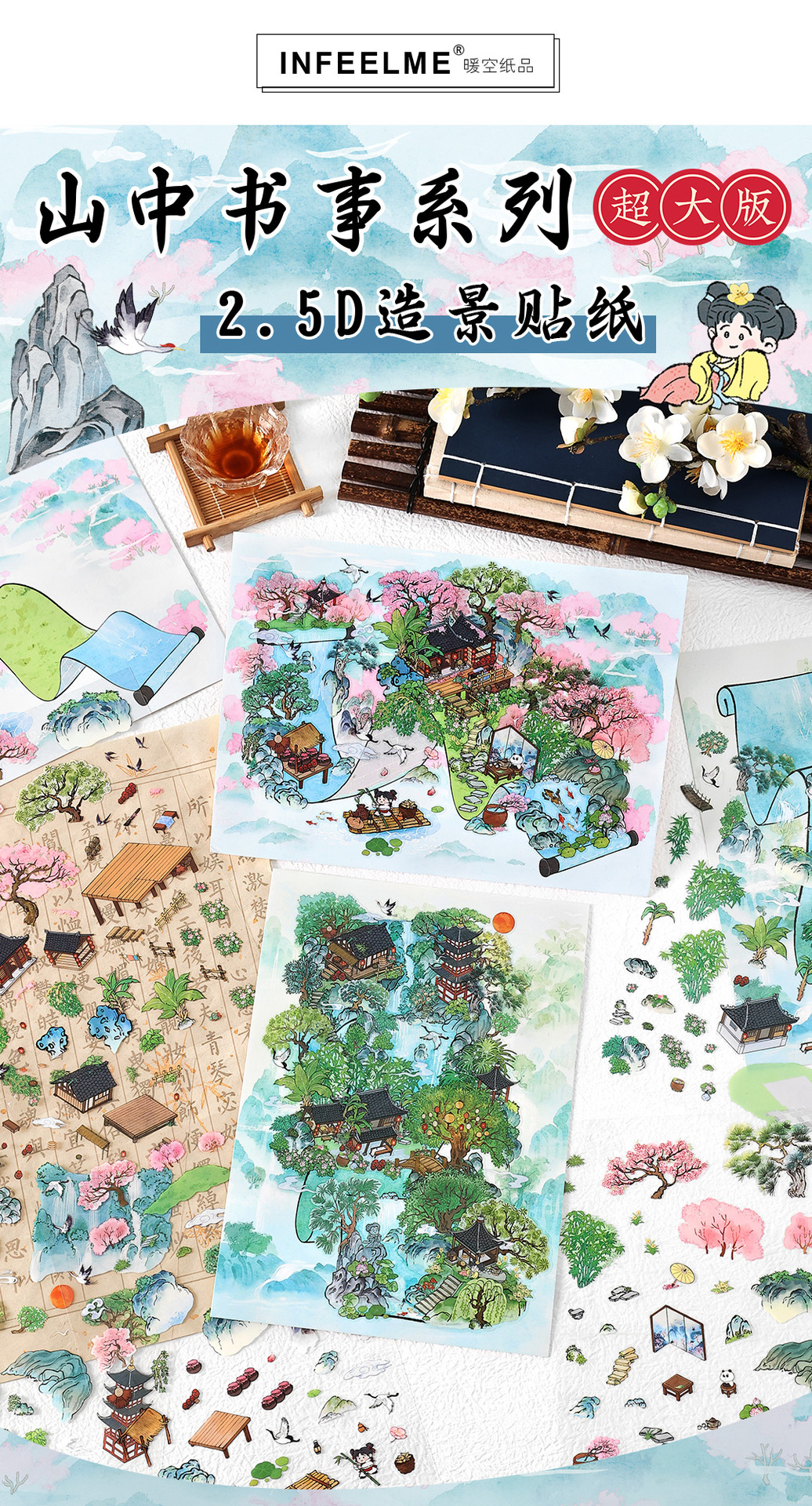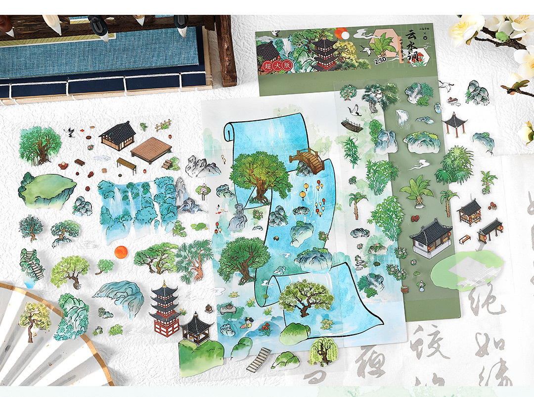 Moyaninfeelme pegatinas paisajísticas de tamaño super grande pegatinas decorativas tridimensionales DIY3D para estudiantes de escritura de montaña