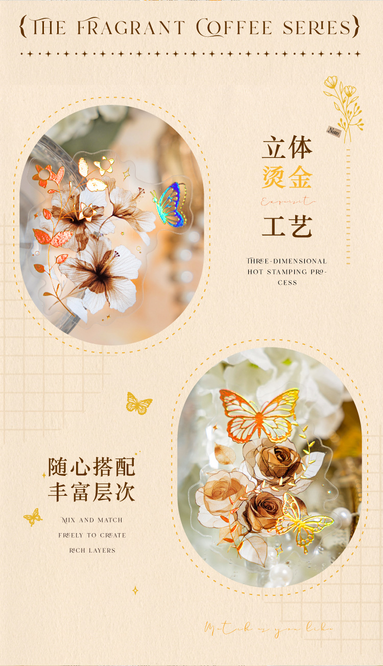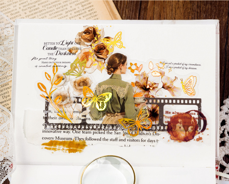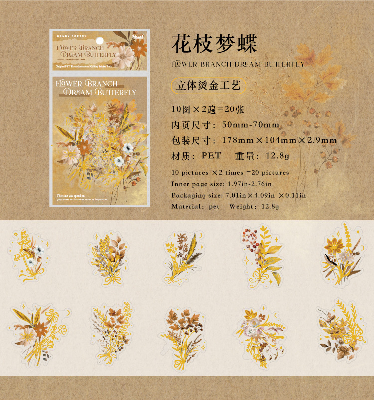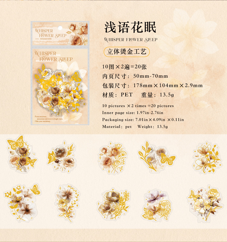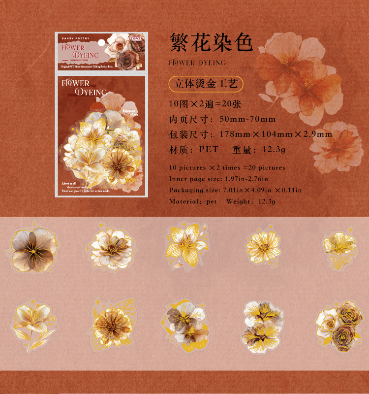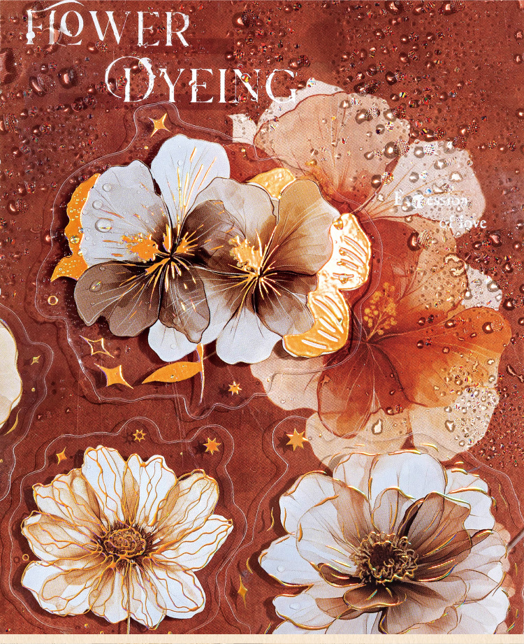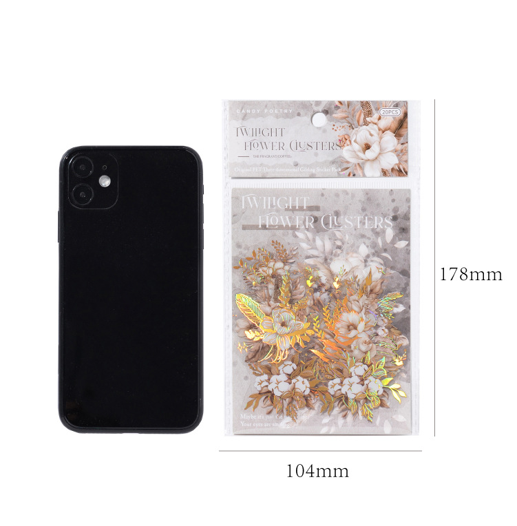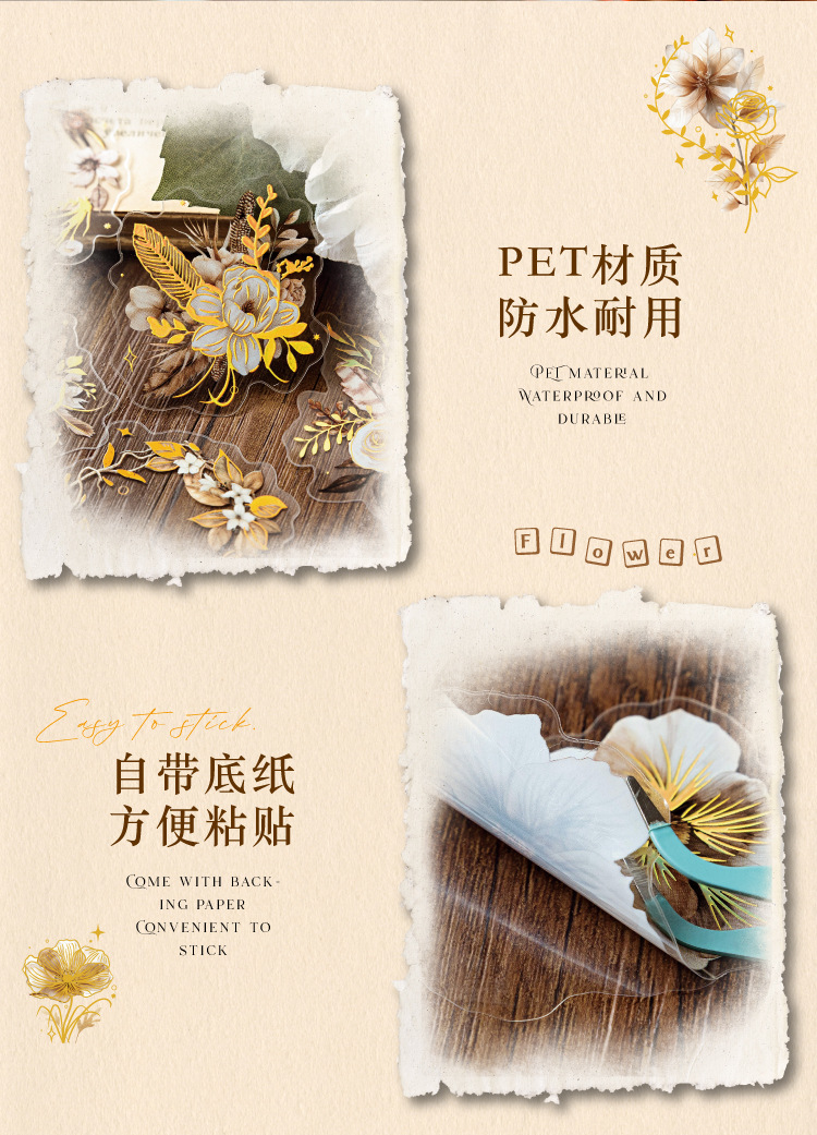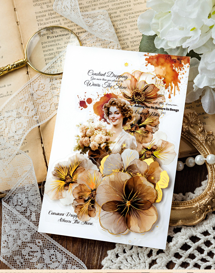 Sugar Poetry PET Stereo Bronceado Pegatinas de tinta blanca Paquete Ka Fragrant Series Retro Plant Flower Cart Pegatinas de cuentas manuales