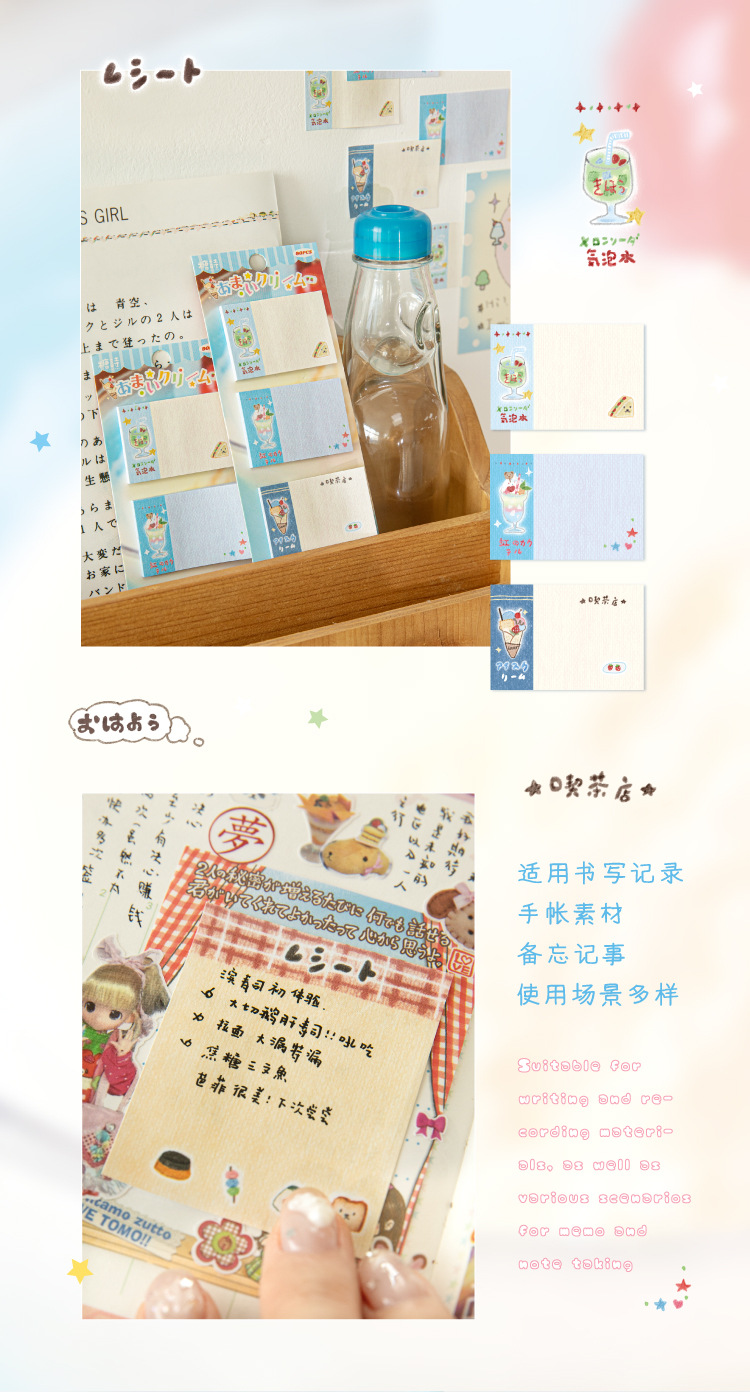 Sugar Poetry Multi-Version Post-it Ancient Early Food Fine Series Cute Ancient Early Wind Cart Adorno Post-it Mensaje