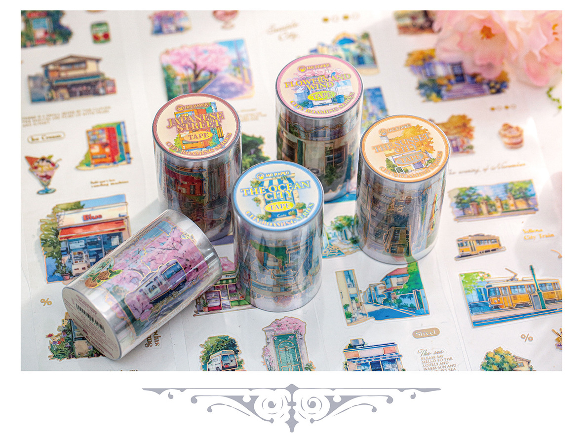 Sr. Paper Cinta de un solo rollo City Comic Tour Tema de la ciudad Cuenta manual Material de decoración de bricolaje Pegatinas decorativas