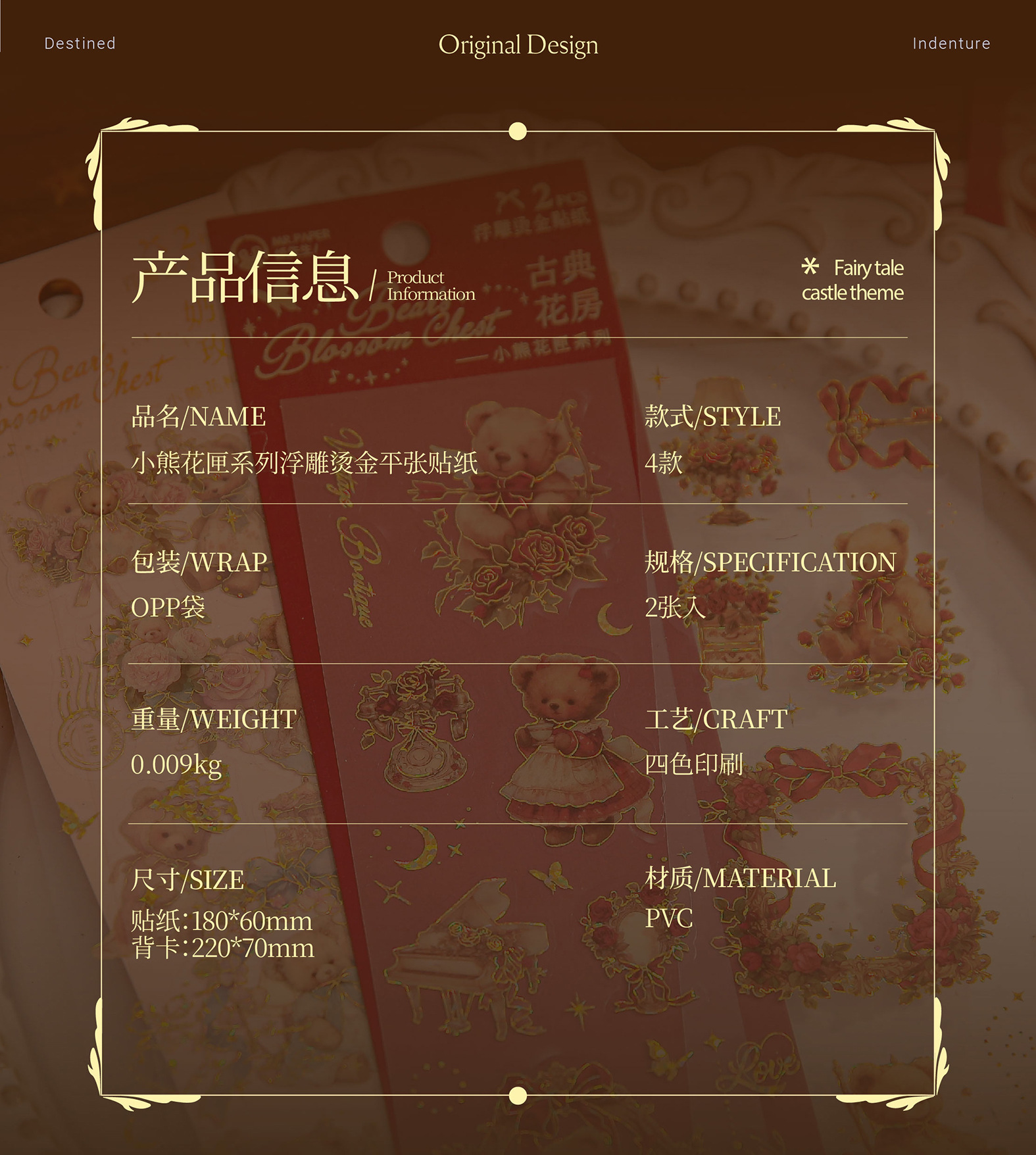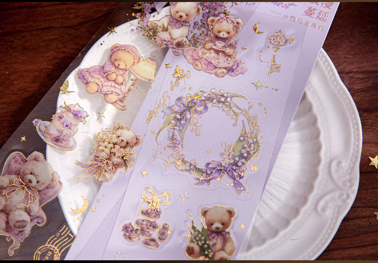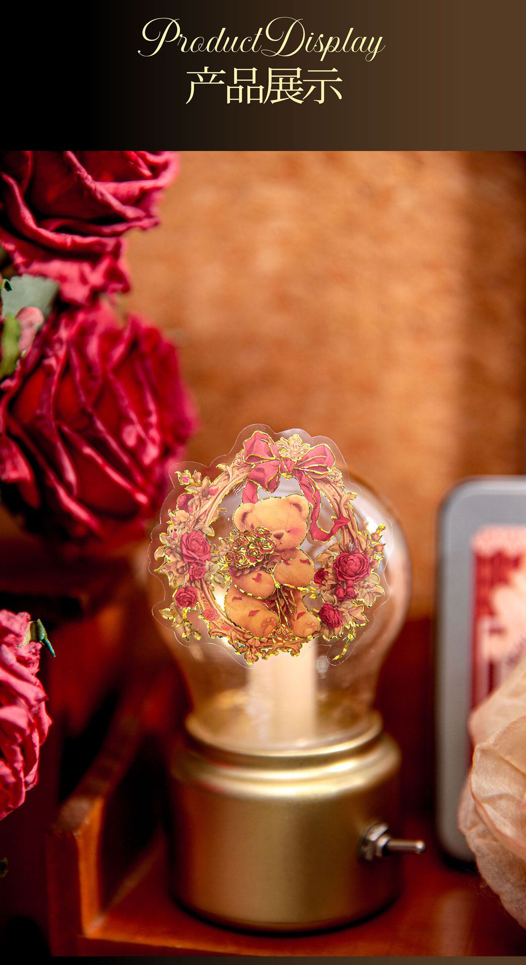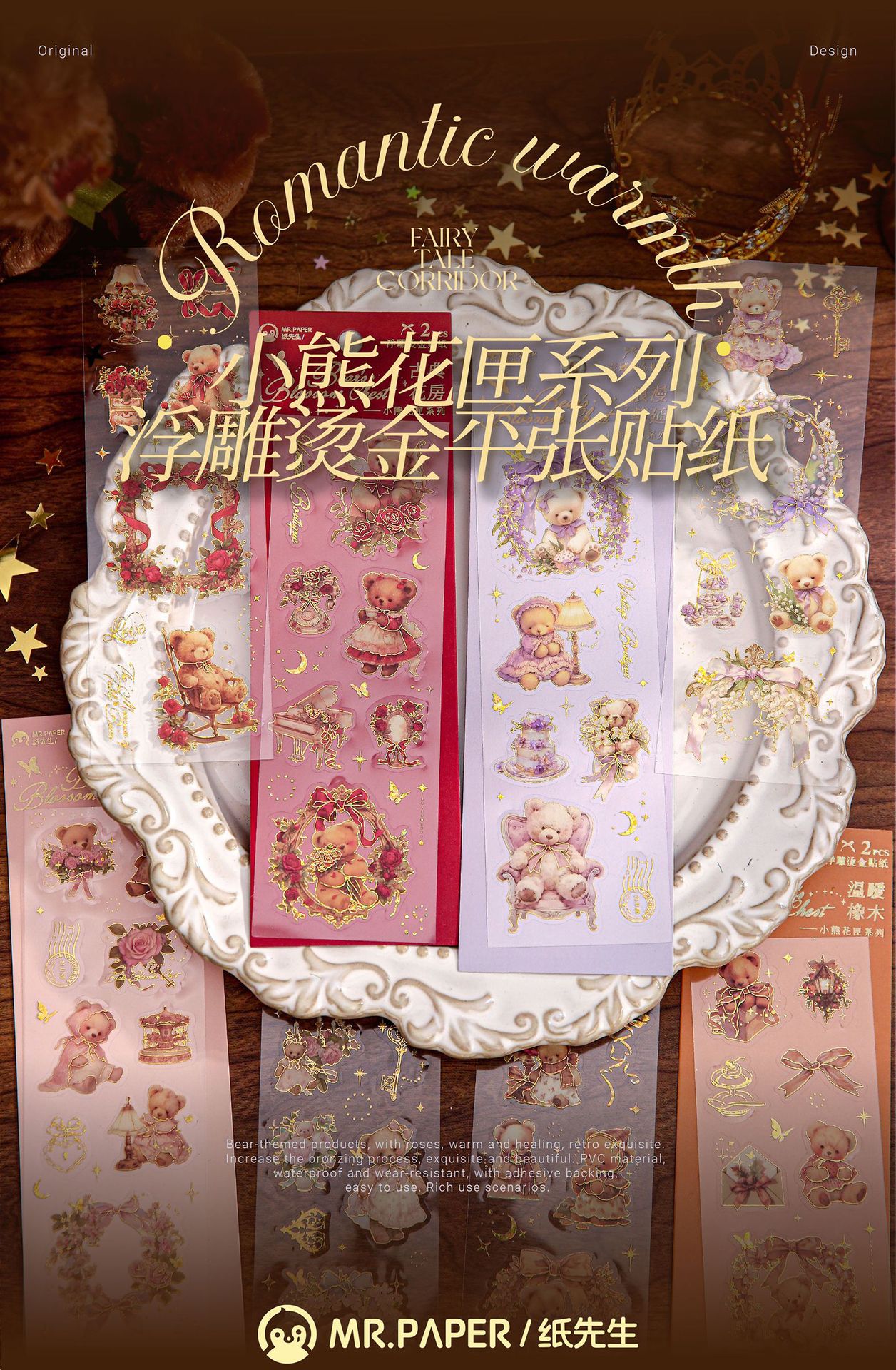 Sr. Paper, estampado en caliente en relieve, pegatina plana, caja de flores de oso, material de cuenta manual, película cortada, decoración de forma especial, pegatina de bricolaje