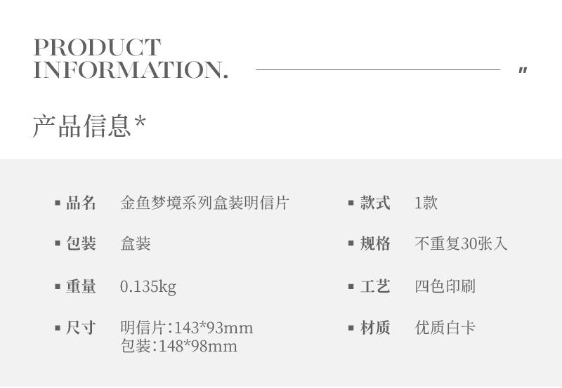 Mr. Paper Dream Box Postal Goldfish Dream Series Original ins Style Student Tarjeta de lectura de alto valor