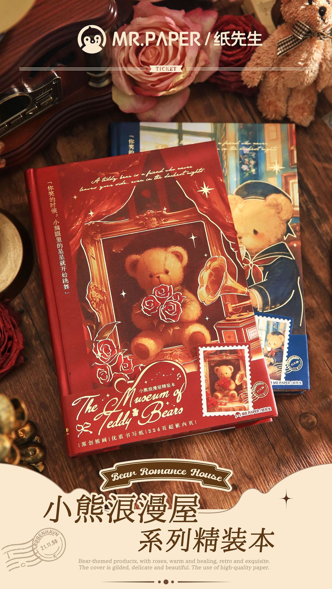 Mr. Paper Tapón dura Bear Romantic House Series Libro de cuentas para estudiantes Bloc de notas boutique Cuaderno de alto valor
