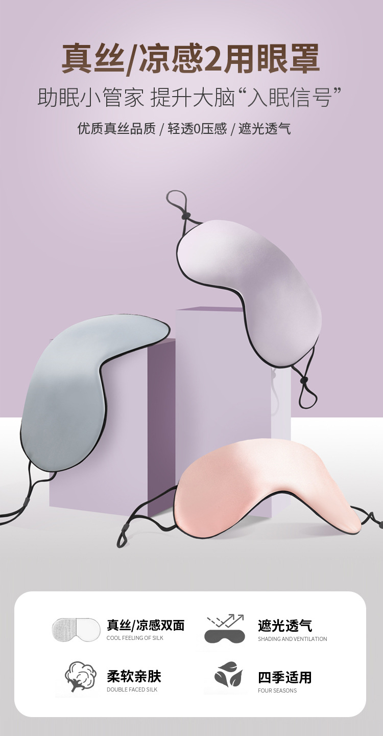Fabricante directo de moda simple para dormir máscara de ojos de seda ligera y transpirable no presionar los ojos puede ajustar la siesta del almuerzo