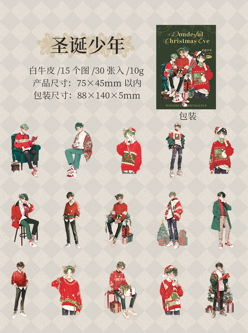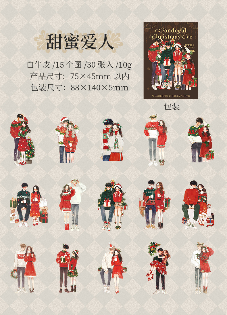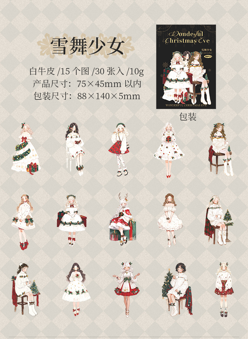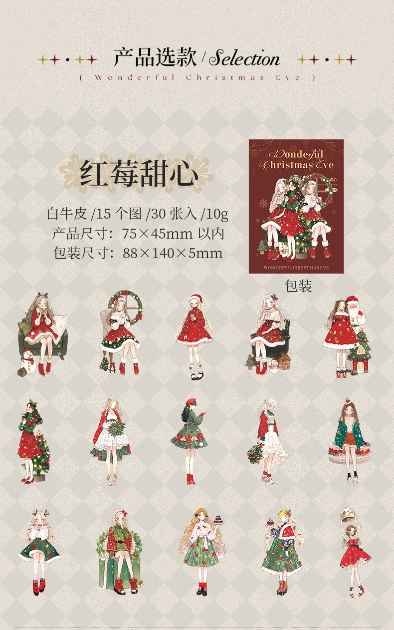 Ketchup Girl Christmas Theme Personajes sin pegatinas de borde blanco Maravillosa Nochebuena Transfronteriza Hand Cardage Material de bricolaje