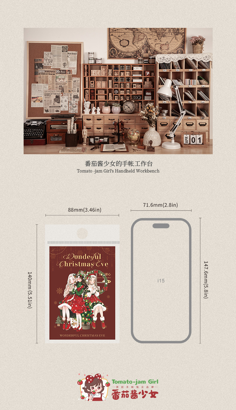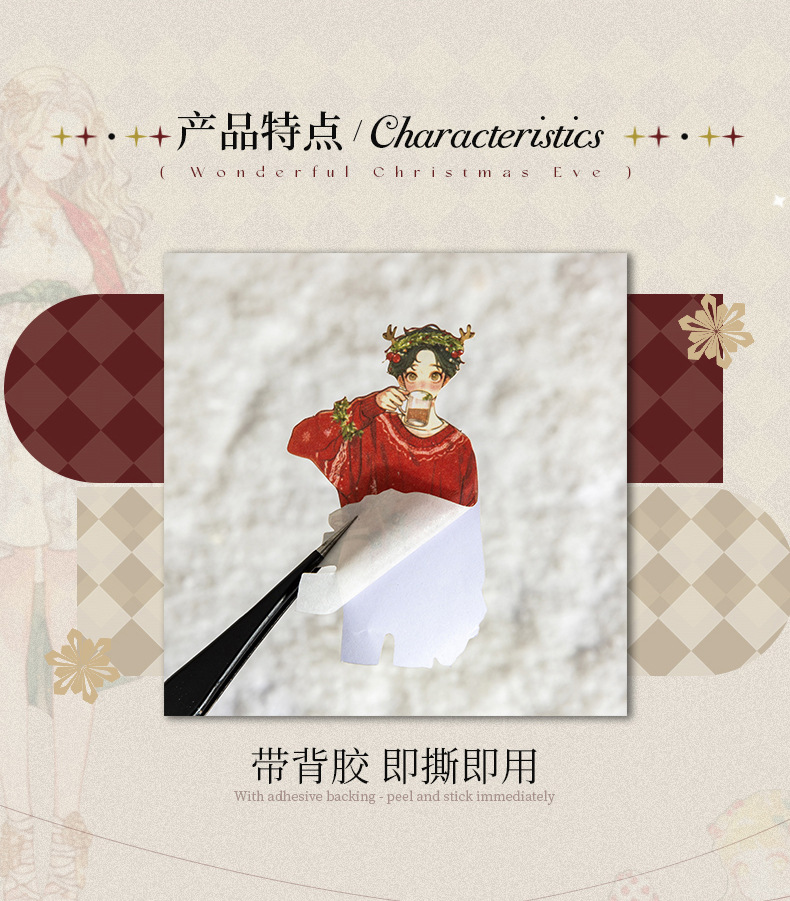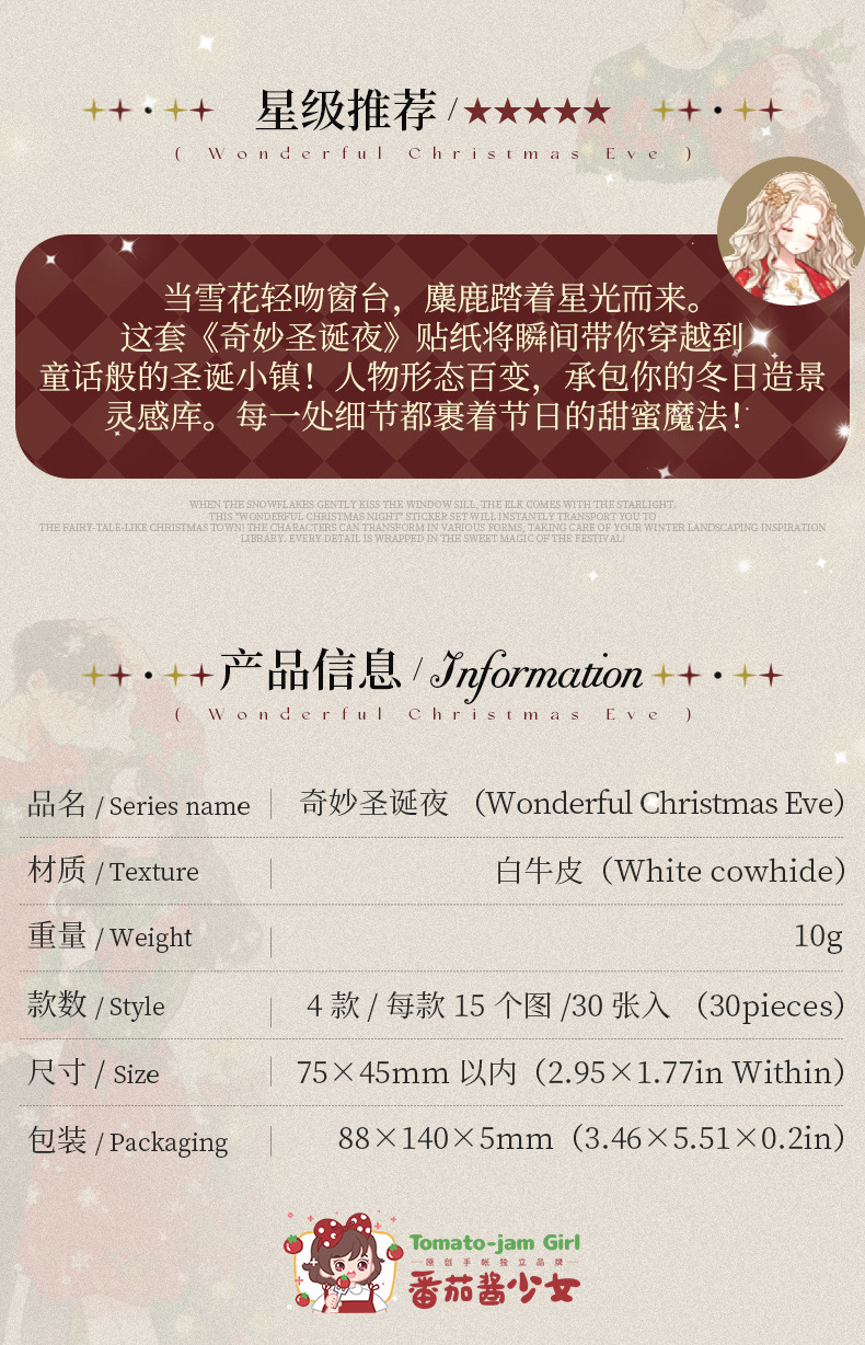 Ketchup Girl Christmas Theme Personajes sin pegatinas de borde blanco Maravillosa Nochebuena Transfronteriza Hand Cardage Material de bricolaje