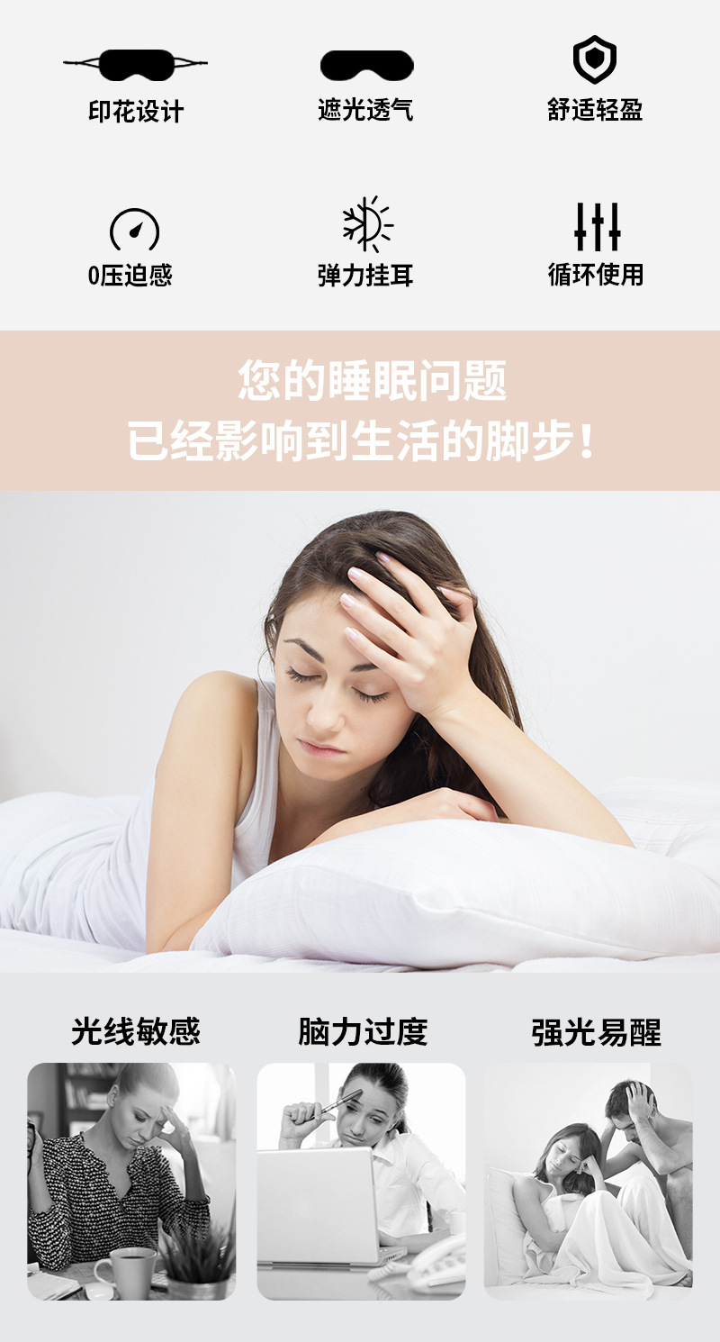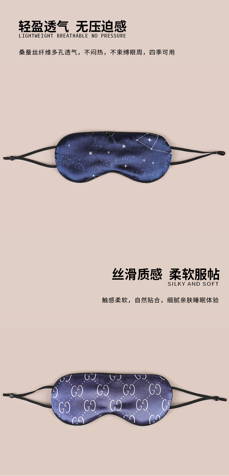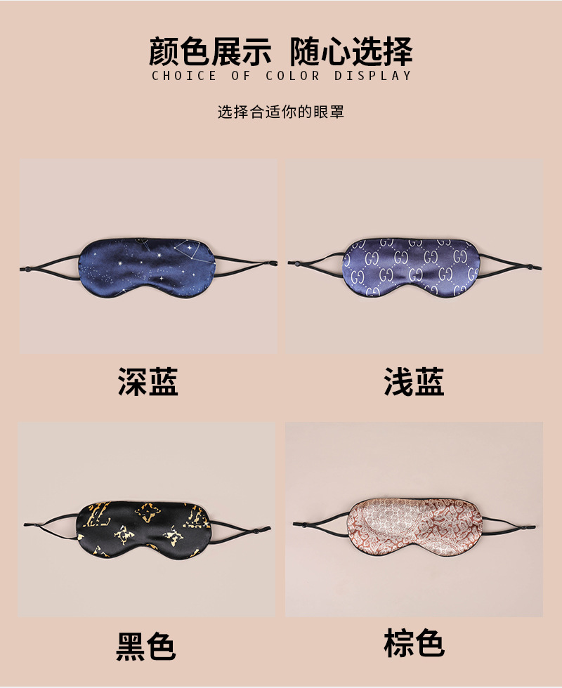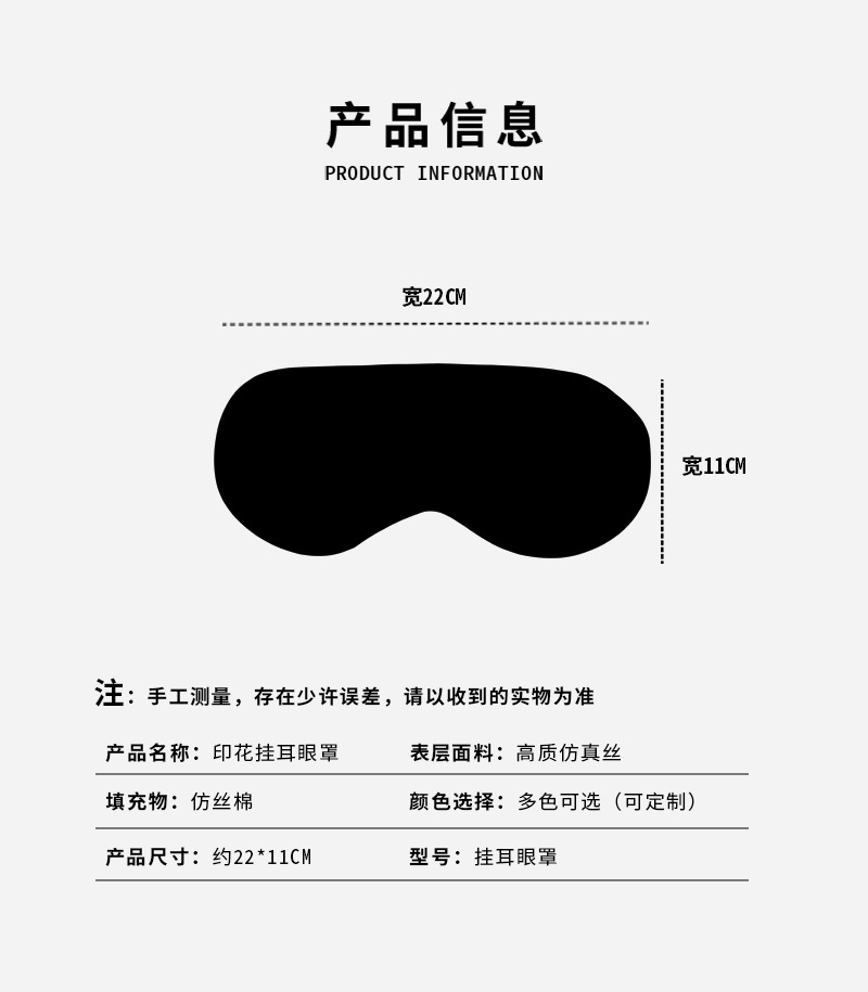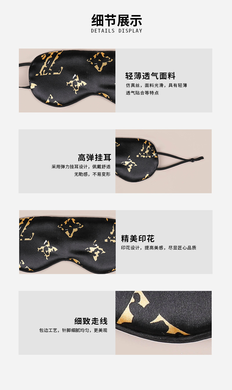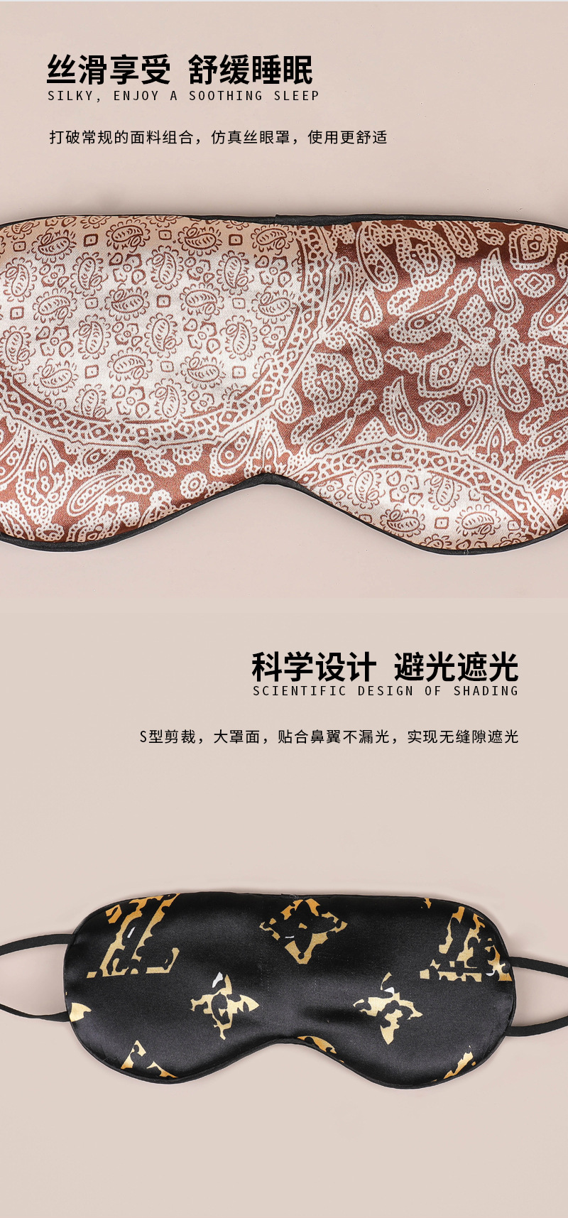 Impresión de seda artificial máscara de ojo colgante de oreja cubierta grande portátil transpirable cómoda máscara de ojo de seda para dormir máscara de ojo sombreado