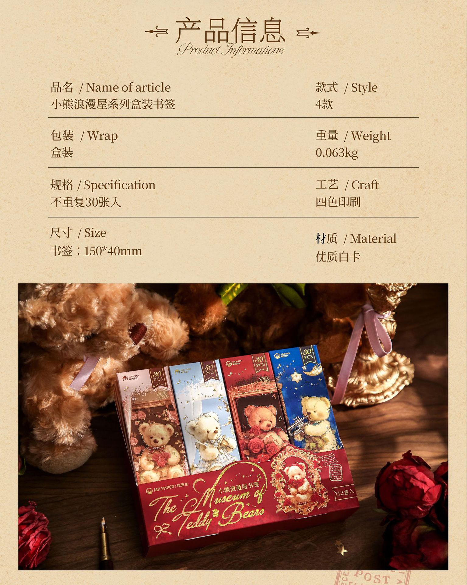 Mr. Paper Bookmark en caja Little Bear Romantic House Dream Theme Cálido Cura Redacciones Páginas Tarjeta pequeña Marcador