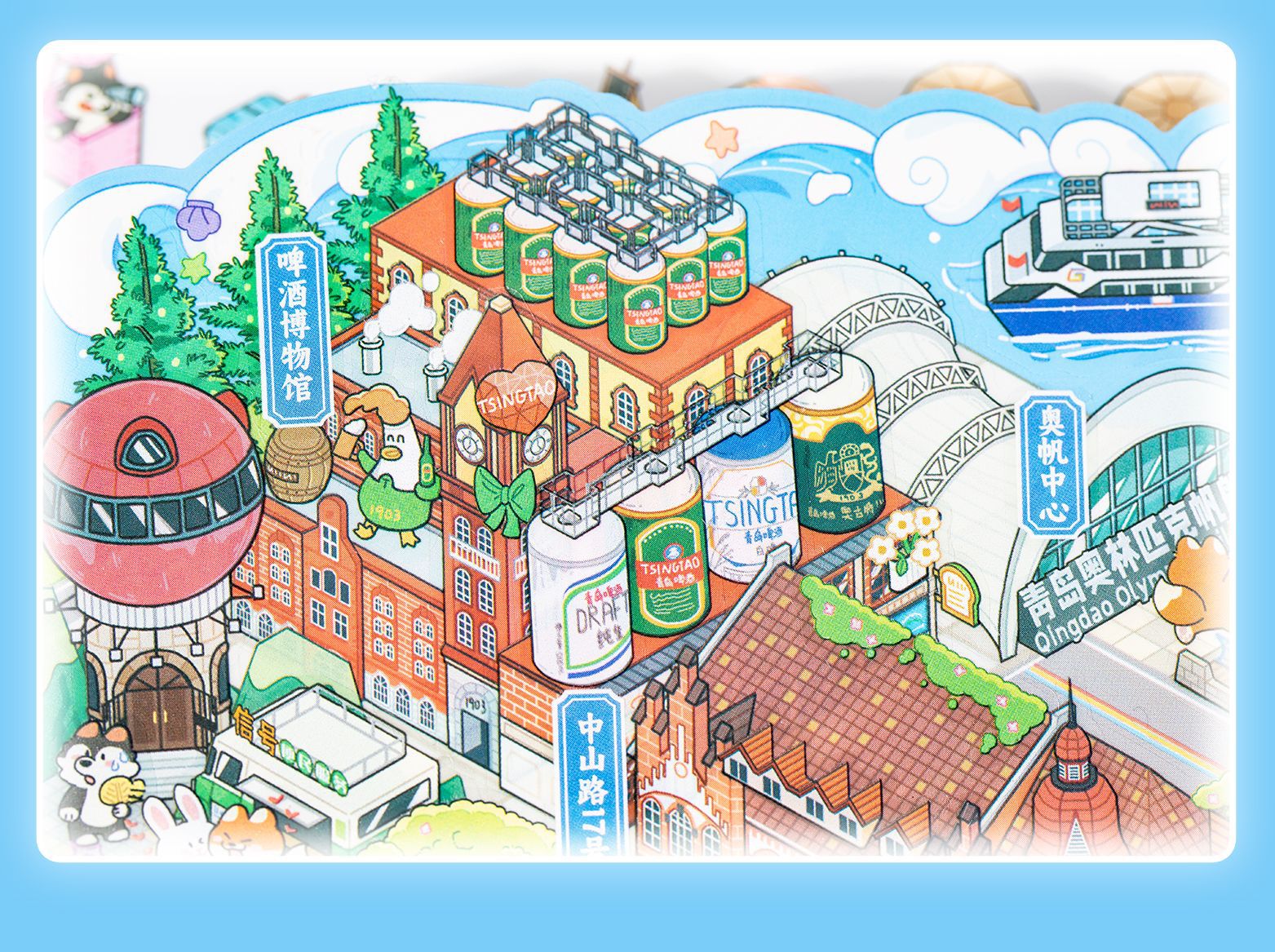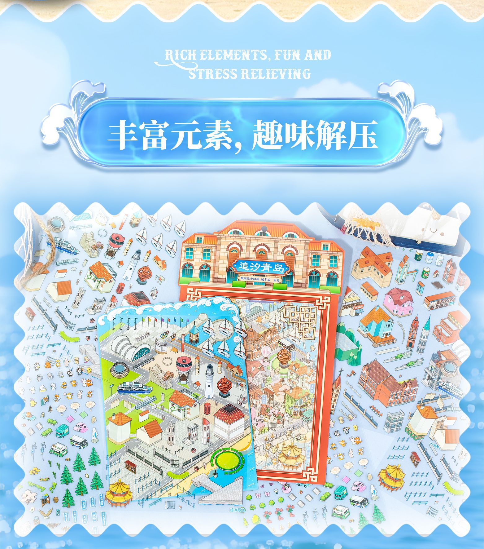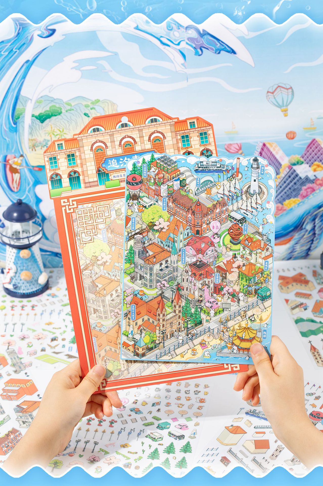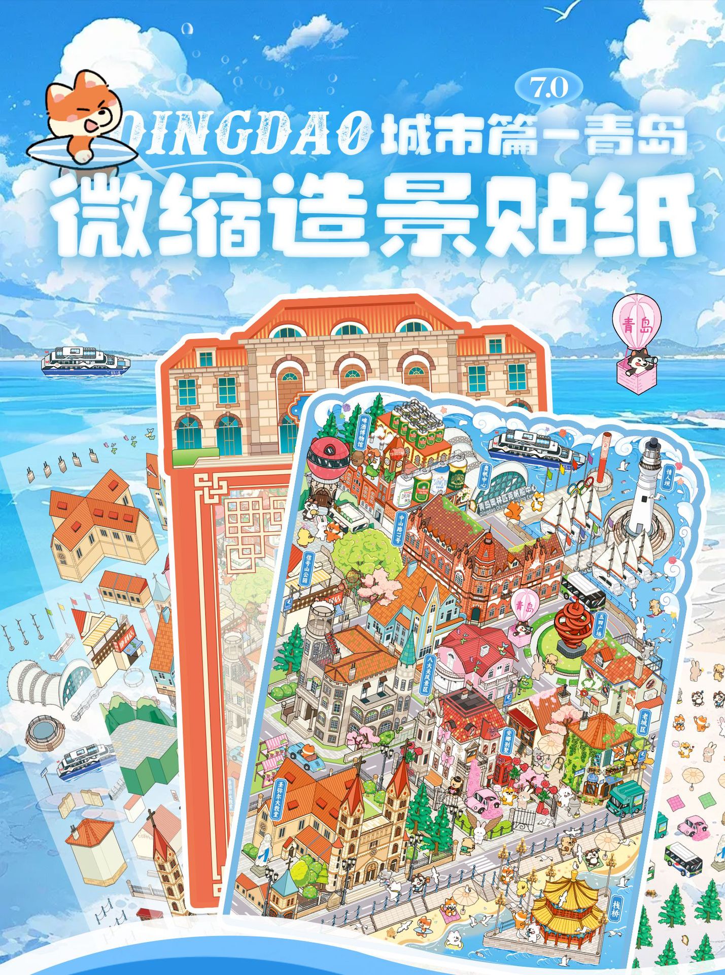 Etiqueta engomada de paisajismo grande en miniatura de Yuxian Capítulo de la ciudad 7.0 Qingdao 3D Cabaña tridimensional para niños Etiqueta engomada de la escena de la cuenta manual de bricolaje