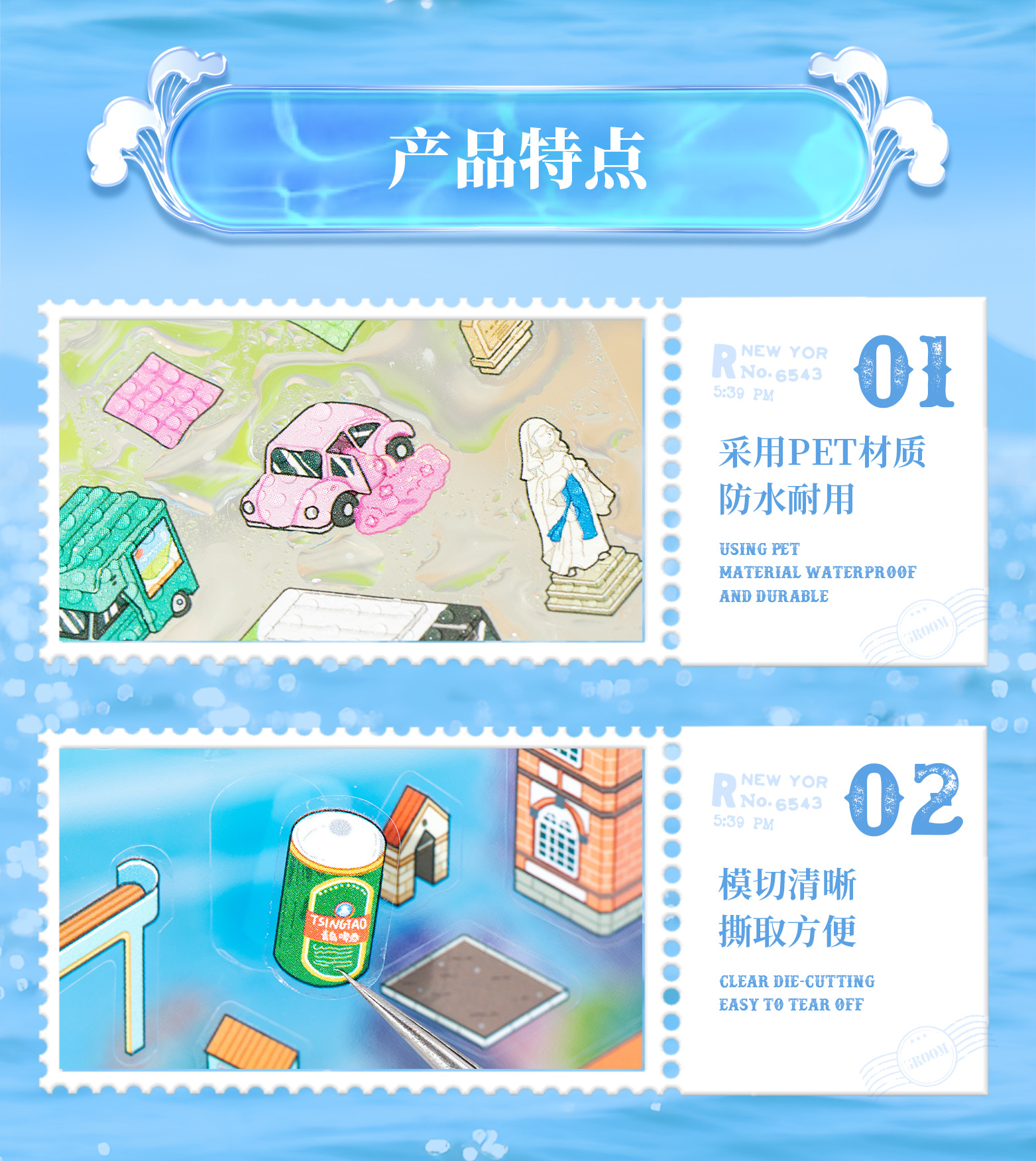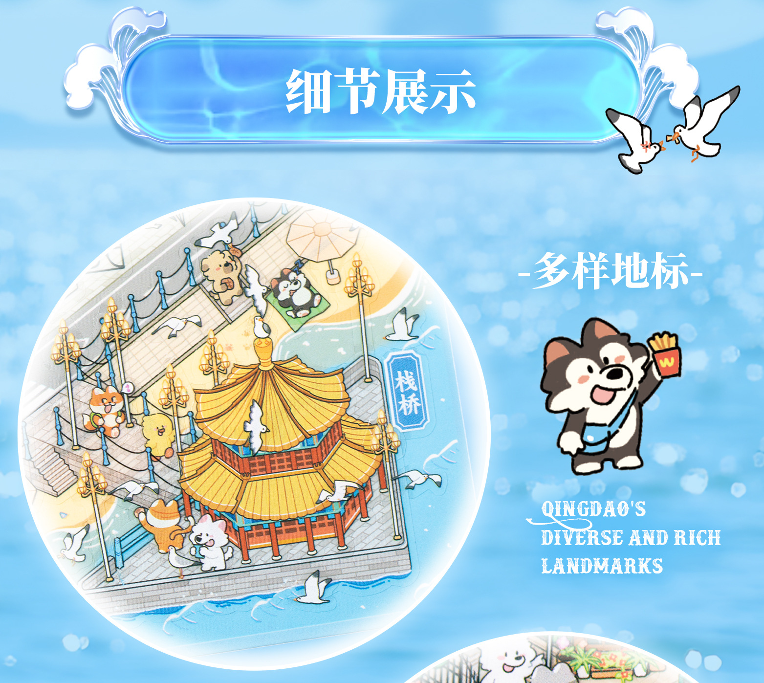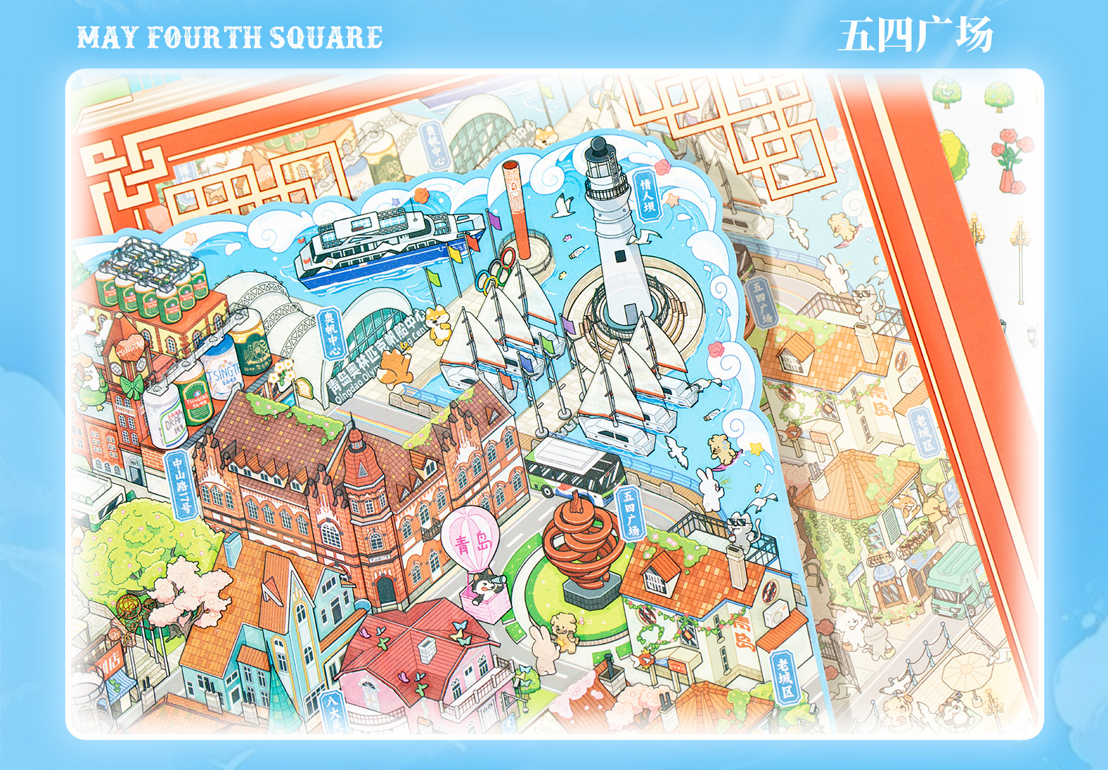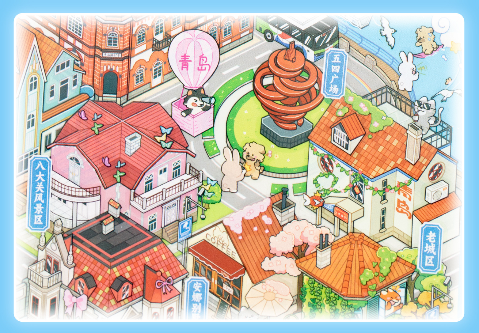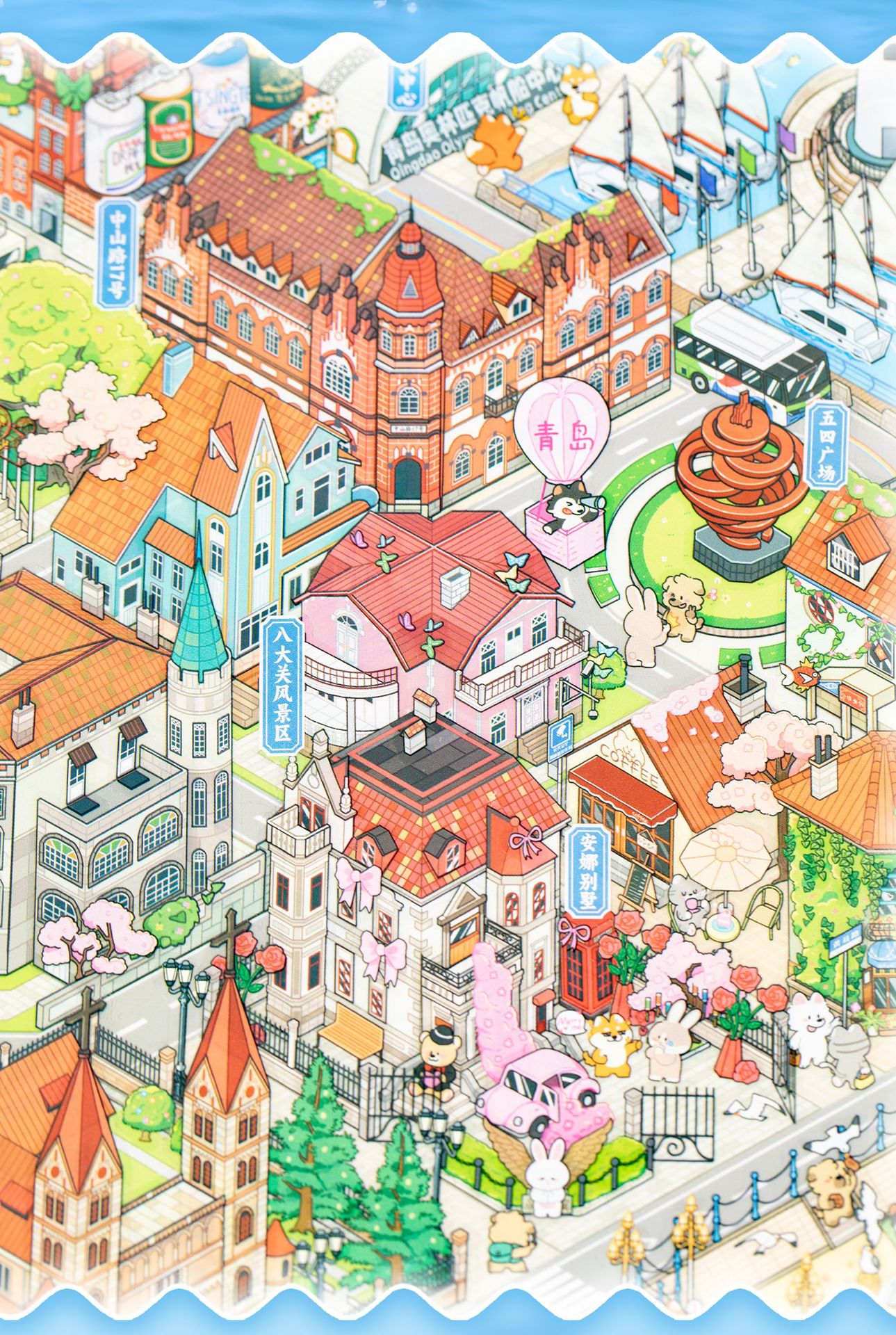 Etiqueta engomada de paisajismo grande en miniatura de Yuxian Capítulo de la ciudad 7.0 Qingdao 3D Cabaña tridimensional para niños Etiqueta engomada de la escena de la cuenta manual de bricolaje