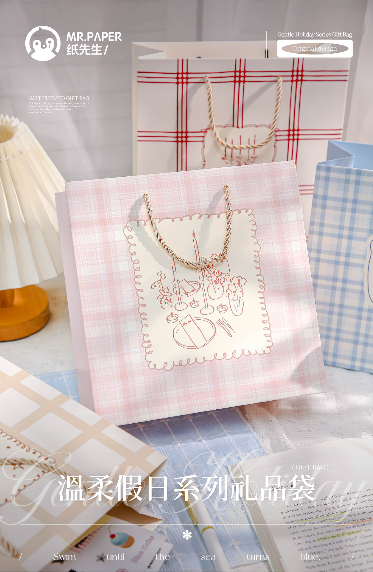 Bolsas de regalo de Mr. Paper Bolsas de regalo de cumpleaños de cuadros de dibujos animados de la serie de vacaciones suaves Bolsas de regalo de alto valor
