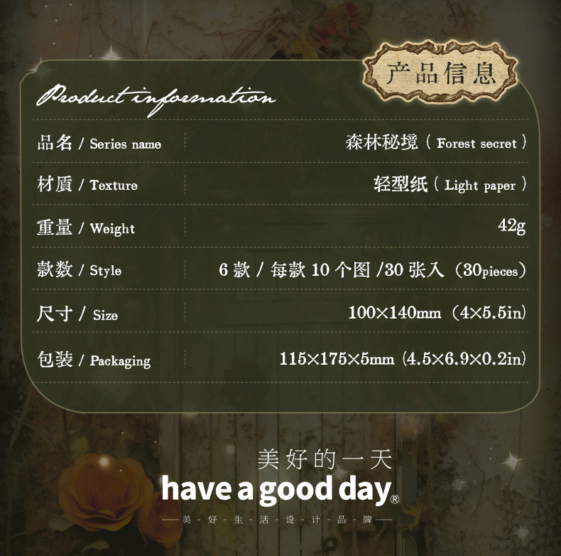 Hermoso día material libro bosque secreto serie retro bosque tema desgarrable diario decoración papel base