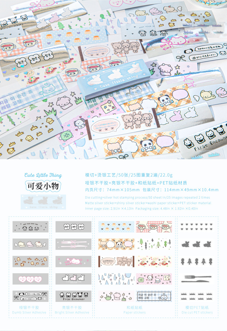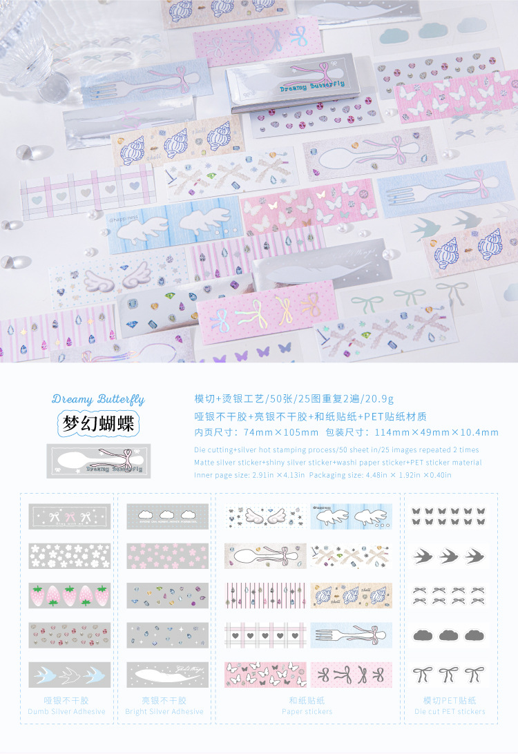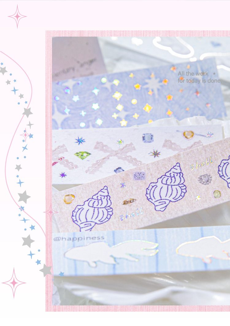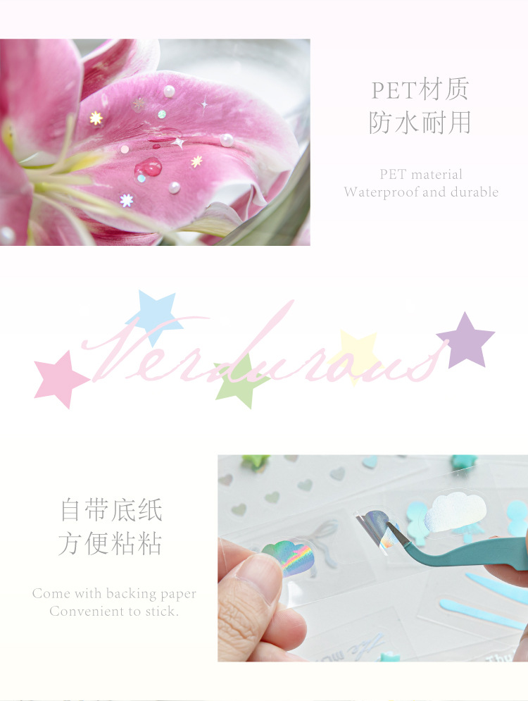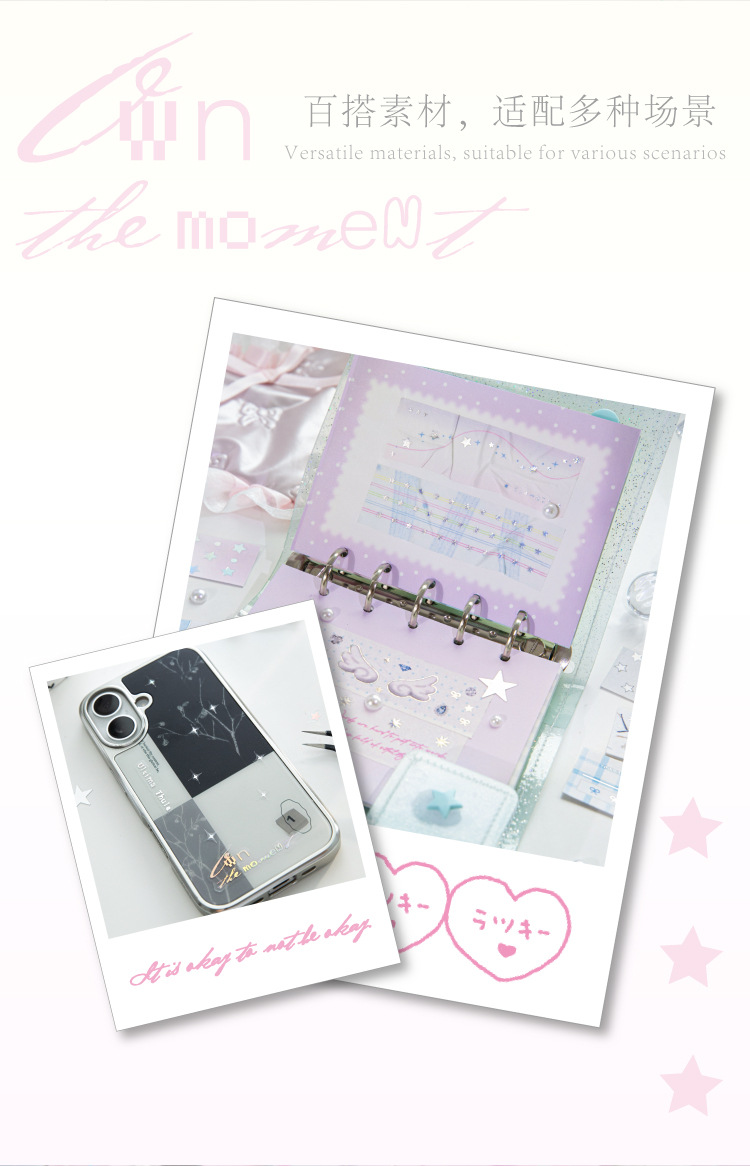 Sugar Poetry Material mixto Pegatinas plateadas en caliente Serie de confesiones plateadas Cute Korean Handscart Diy Pegatinas largas
