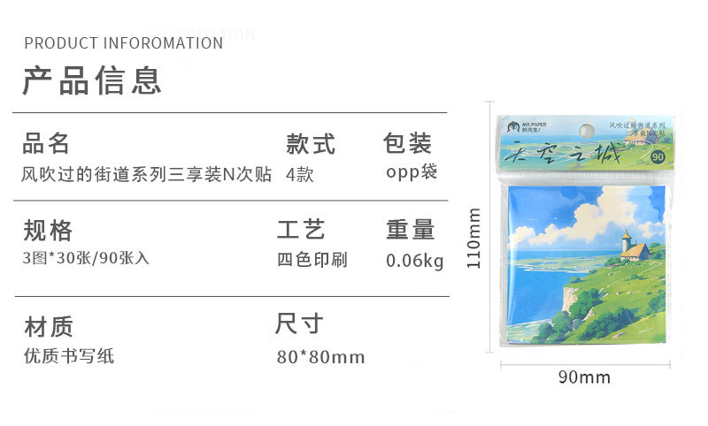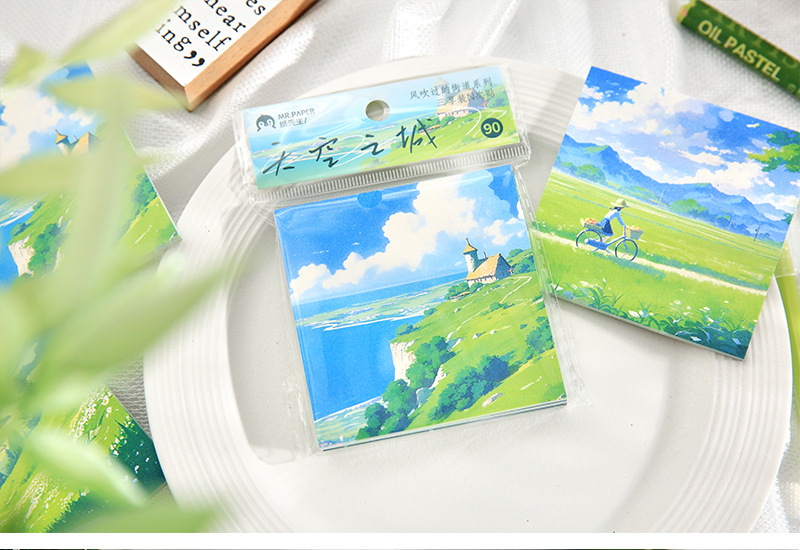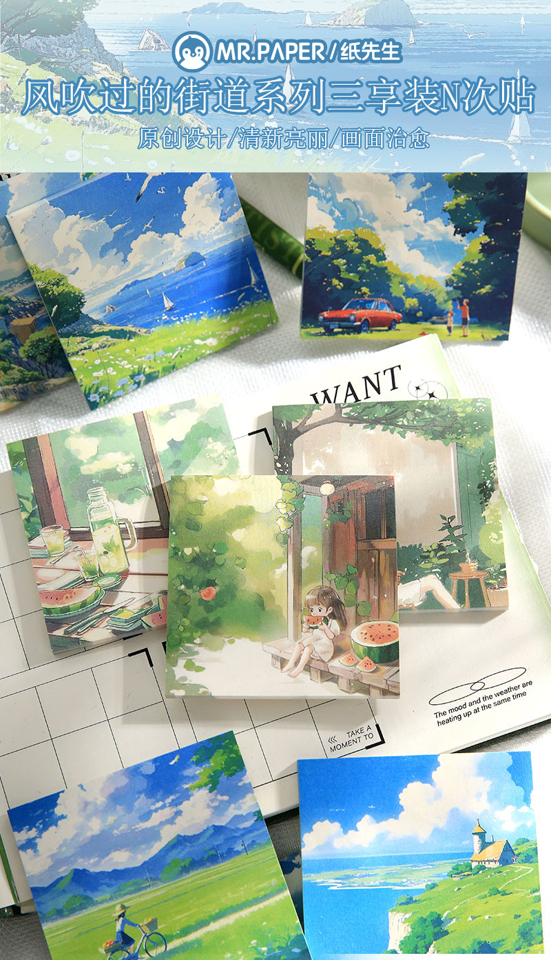 Mr. Paper Three Enjoy N pegatinas de la serie de calles sopladas por el viento, ilustraciones de paisajes, notas de oficina, mensajes, notas adhesivas