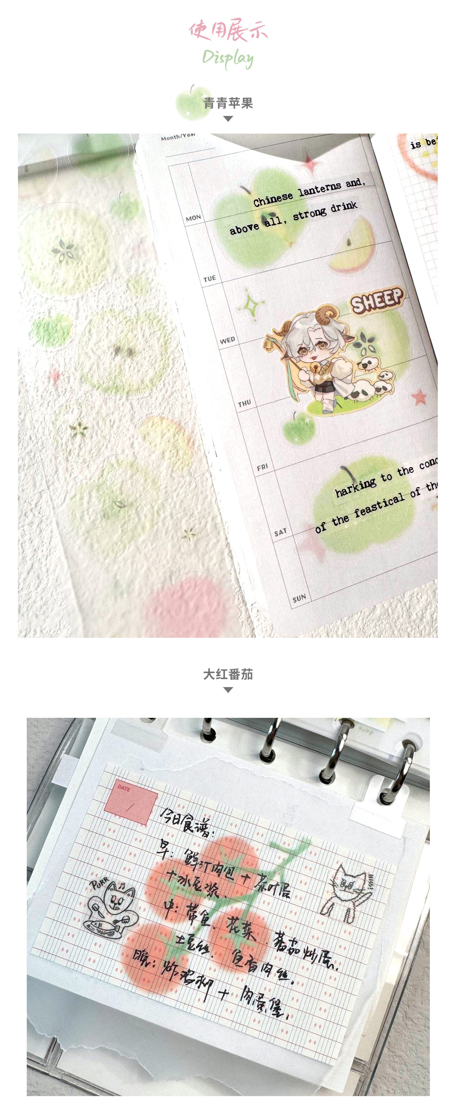 AGUGU niebla de cinta de mascotas series ligeramente dulces pegatinas de material de fruta simple cuentas de mano decoración cinta de corte de matriz