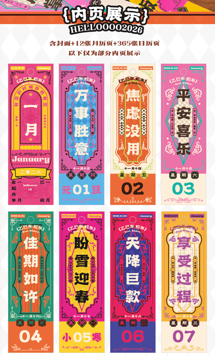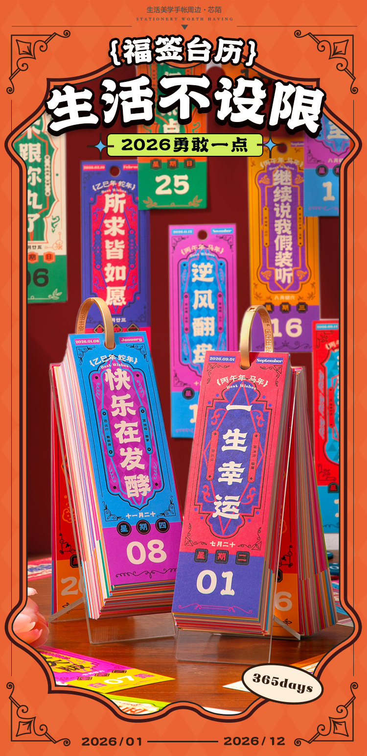 Xinmo 2026 Fu Signatario único calendario vida ilimitado decoración de escritorio plan multifuncional calendario calendario simple