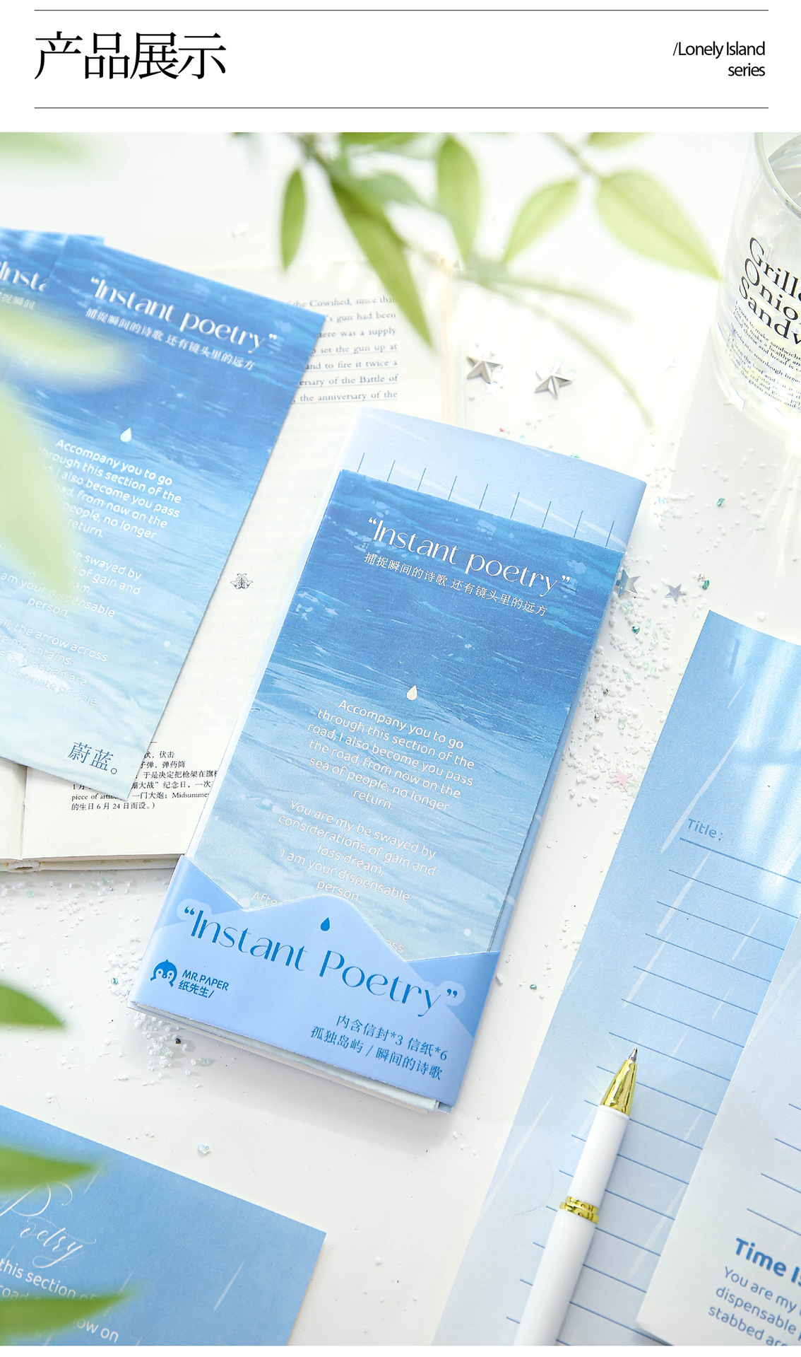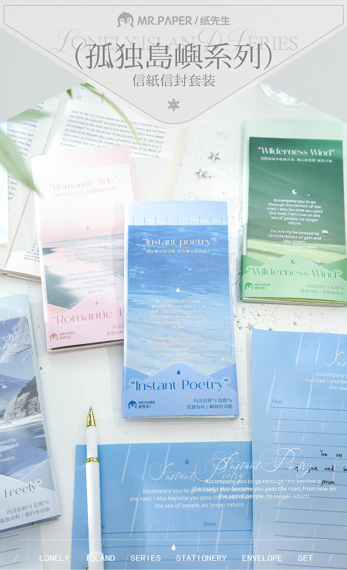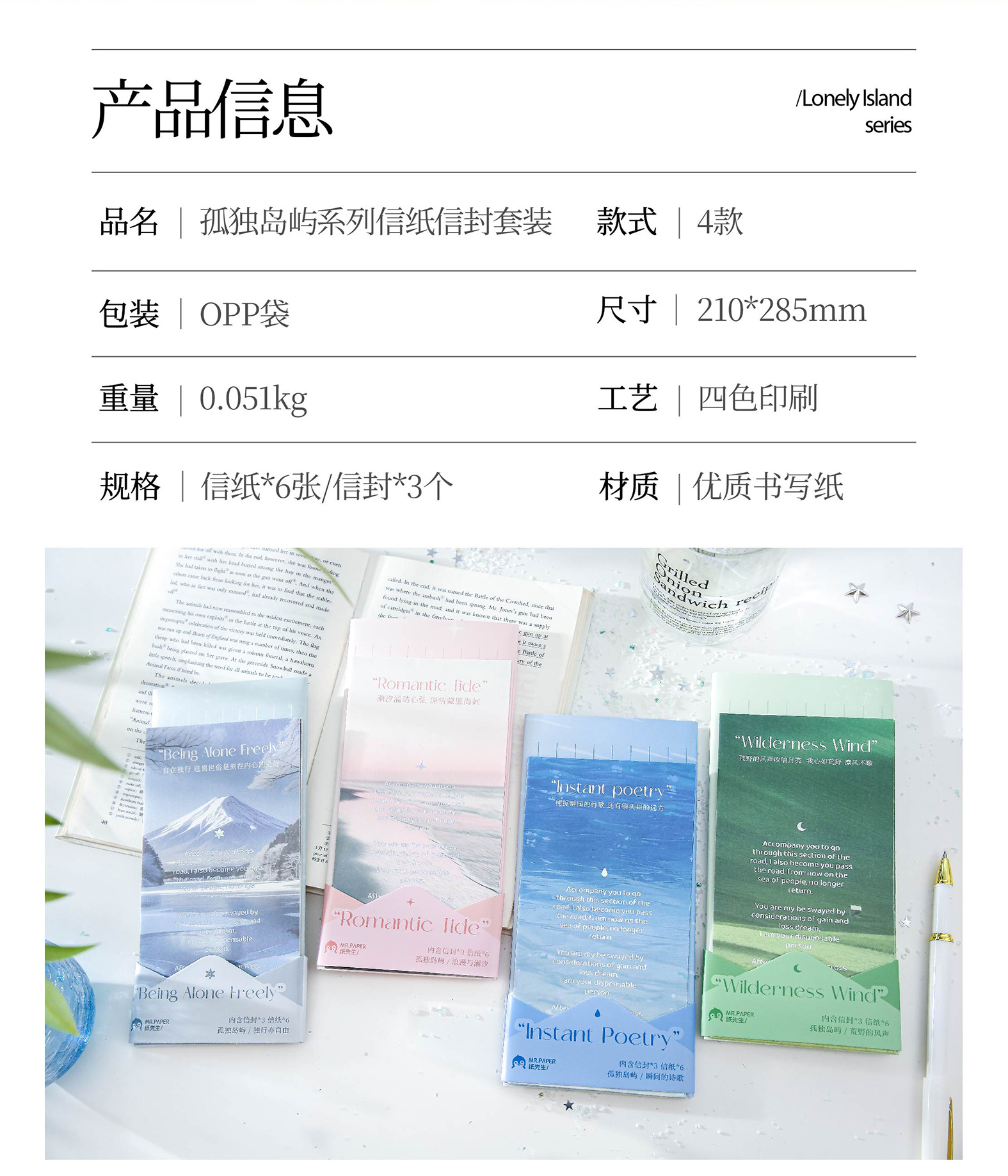 Carta de papel de primera vida juego de sobres de papel Lonely Island Series Ilustración de tema de paisaje Mensaje de estudiante sobre de papel de carta
