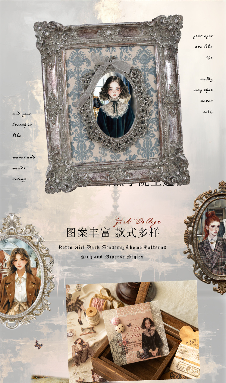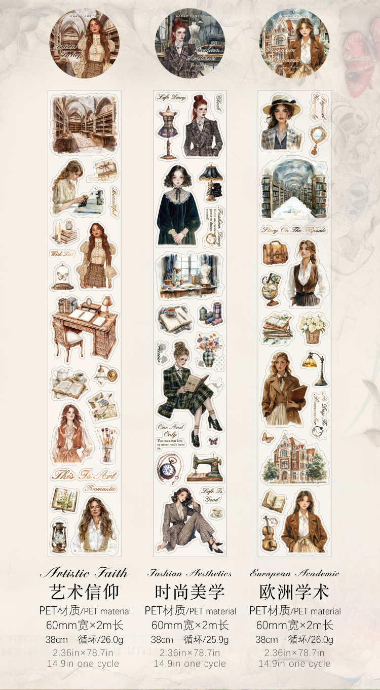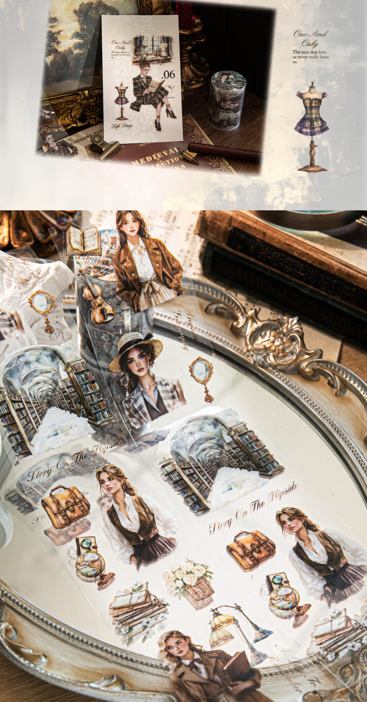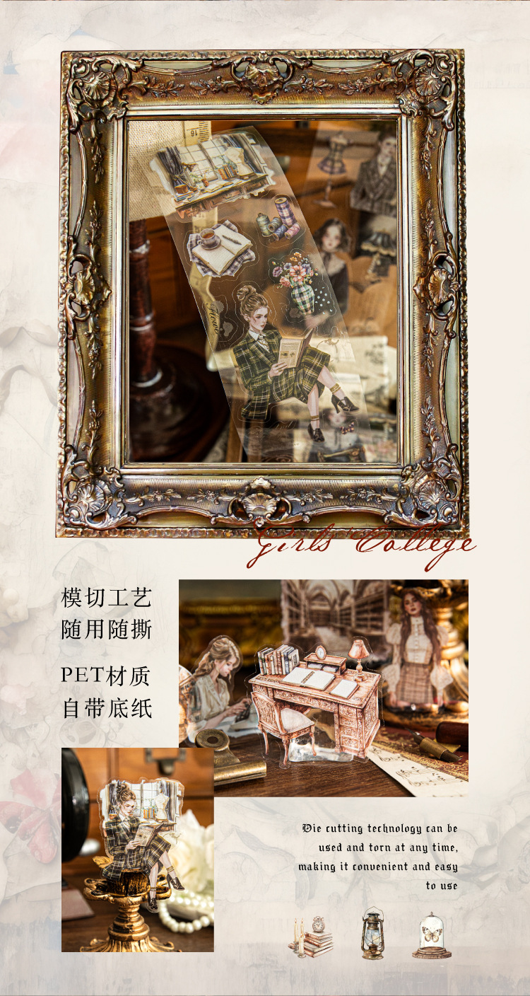 Sugar Poetry Retro Material de personaje Cinta troquelada PET Chicas Academy Series Cuenta manual Cinta decorativa de paisaje de bricolaje