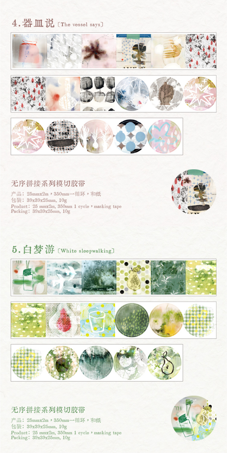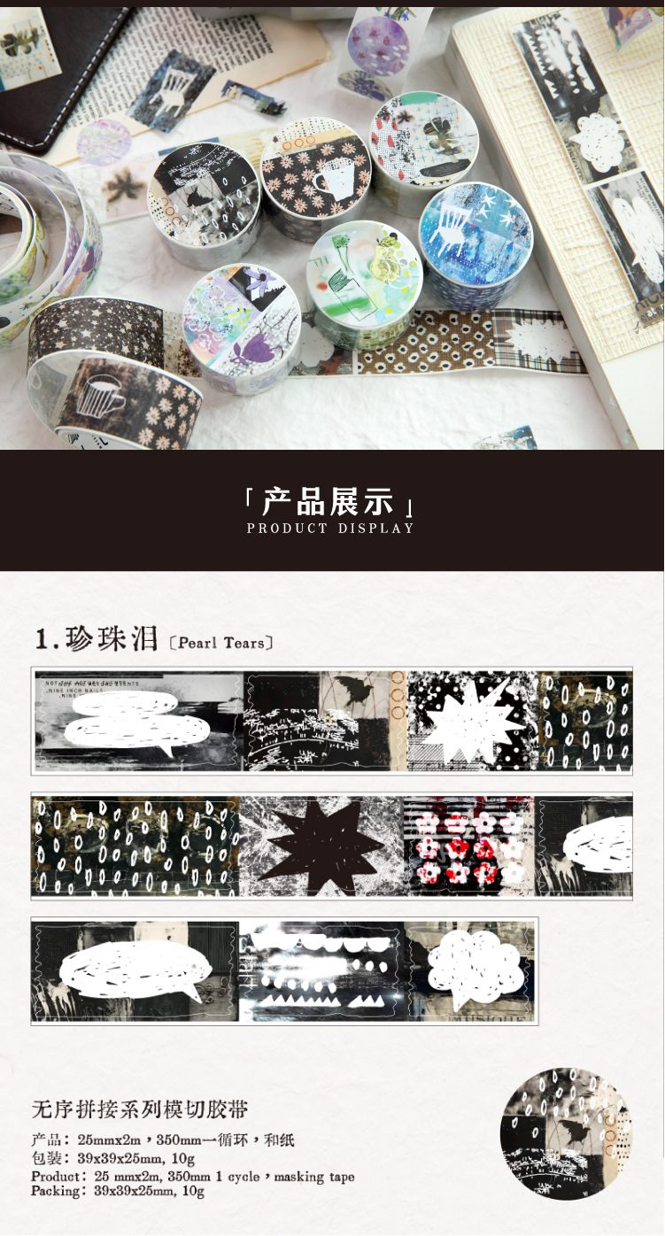 Yanji y cinta troquelada de papel serie de empalme desordenada multiestilo cuka material decorativo cinta adhesiva