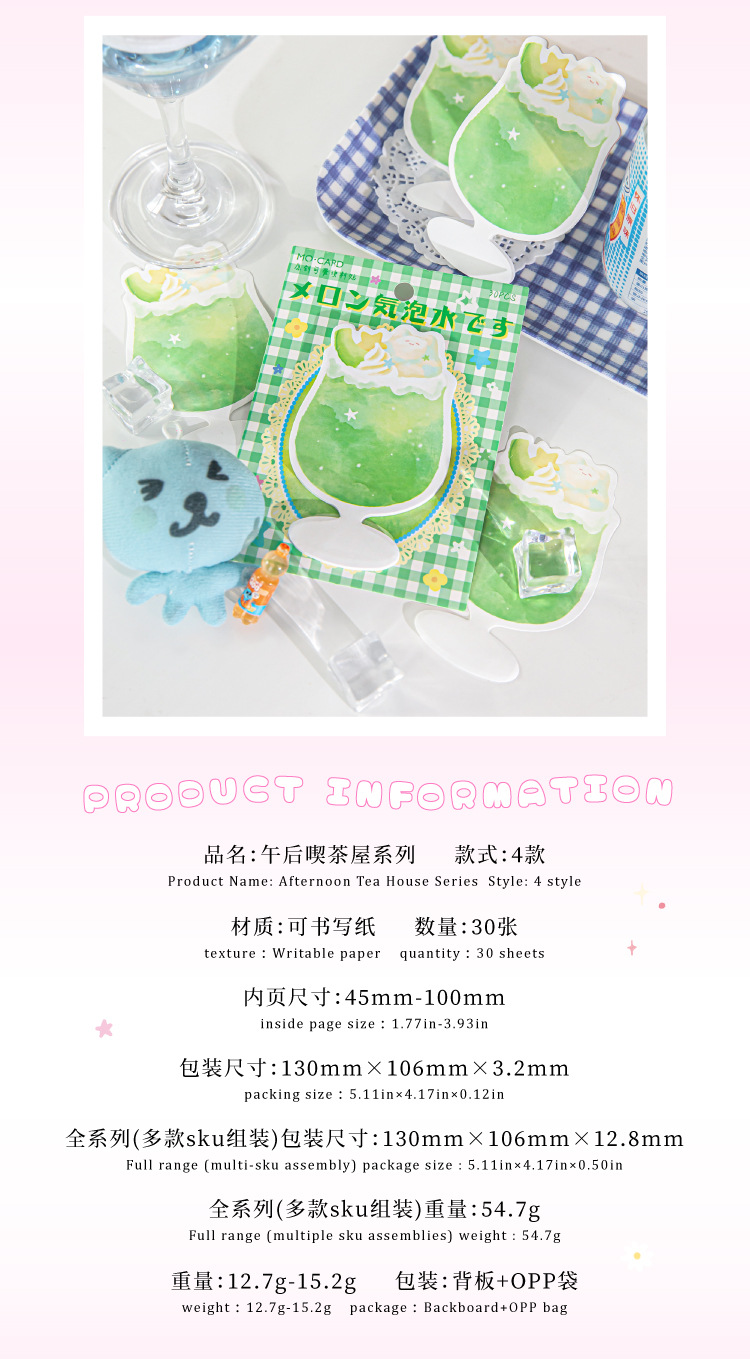 Notas adhesivas de papel kraft blanco Mo, tardes, casa de té, tema de ocio, notas de mensajes, notas, notas adhesivas de bricolaje