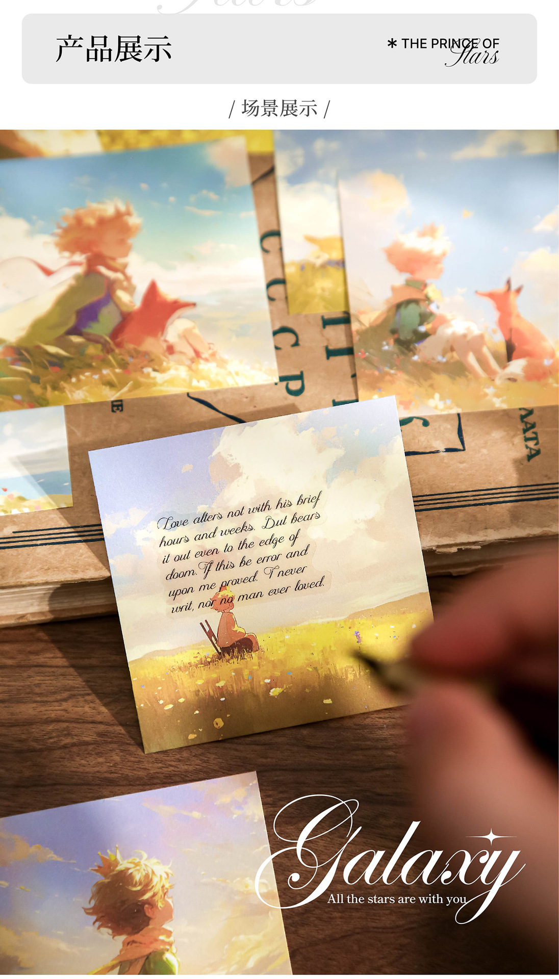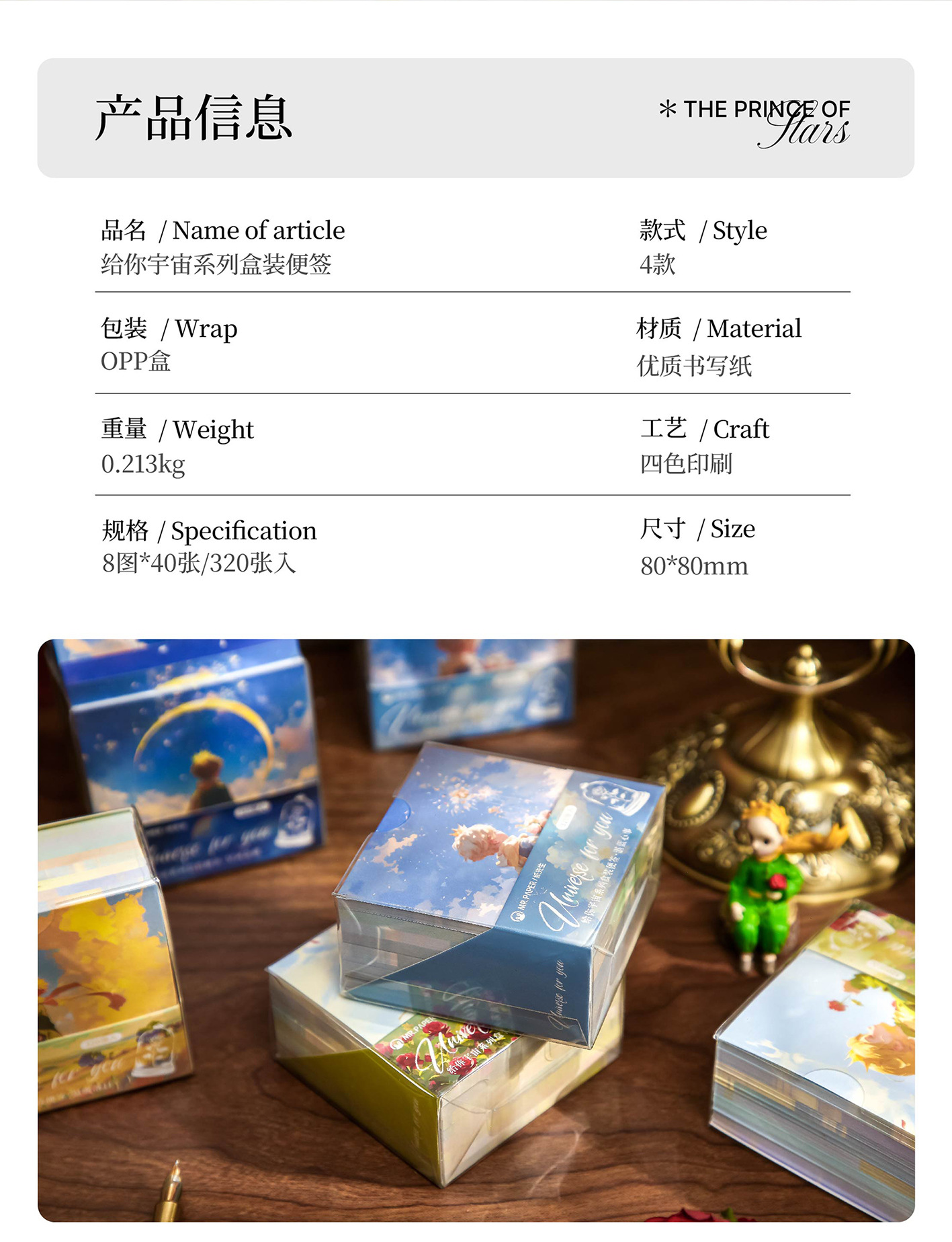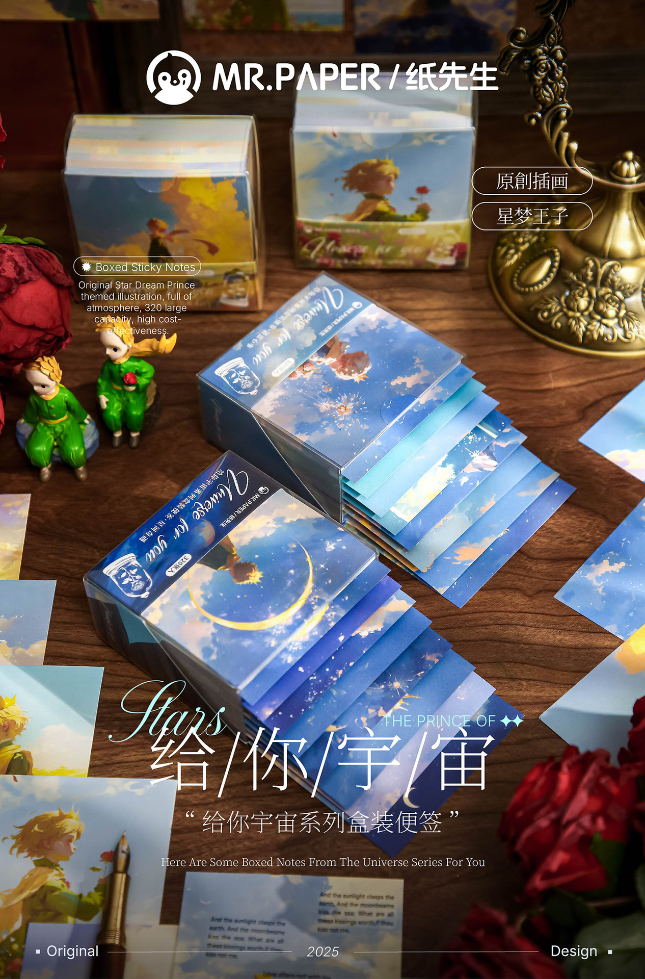 Mr. Paper Notes en caja para usted Serie del universo Tema de ilustración del principito Notas de estudiantes de gran capacidad