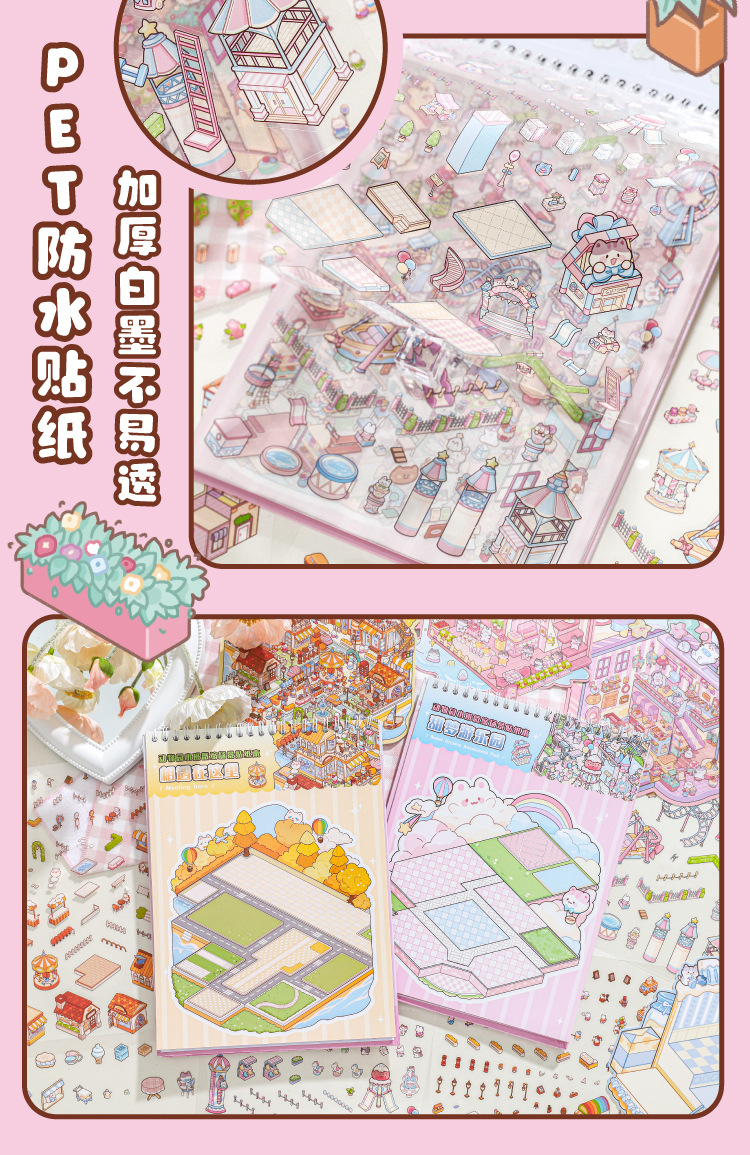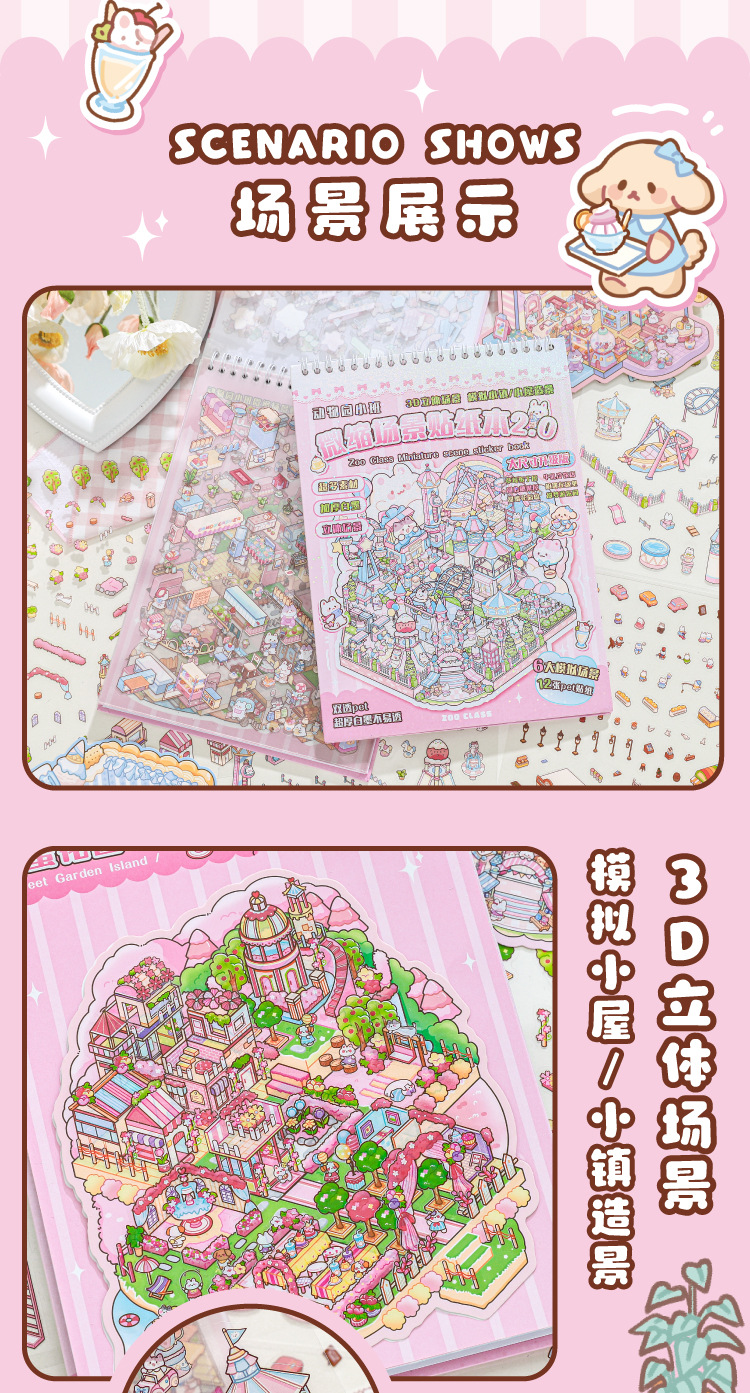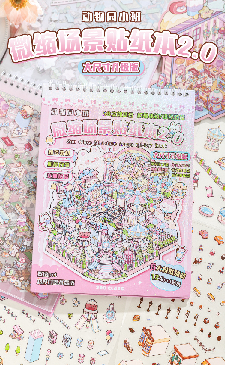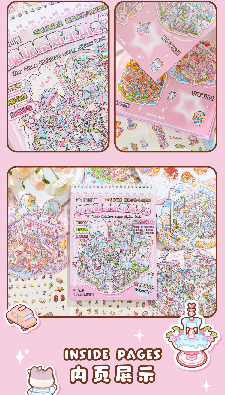 Escena en miniatura de rastro de papel 2.0 libro de pegatinas zoológico clase pequeña 3d casa tridimensional libro de pegatinas de decoración de paisaje de bricolaje